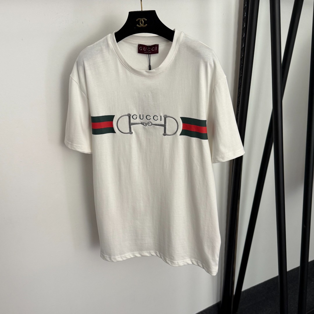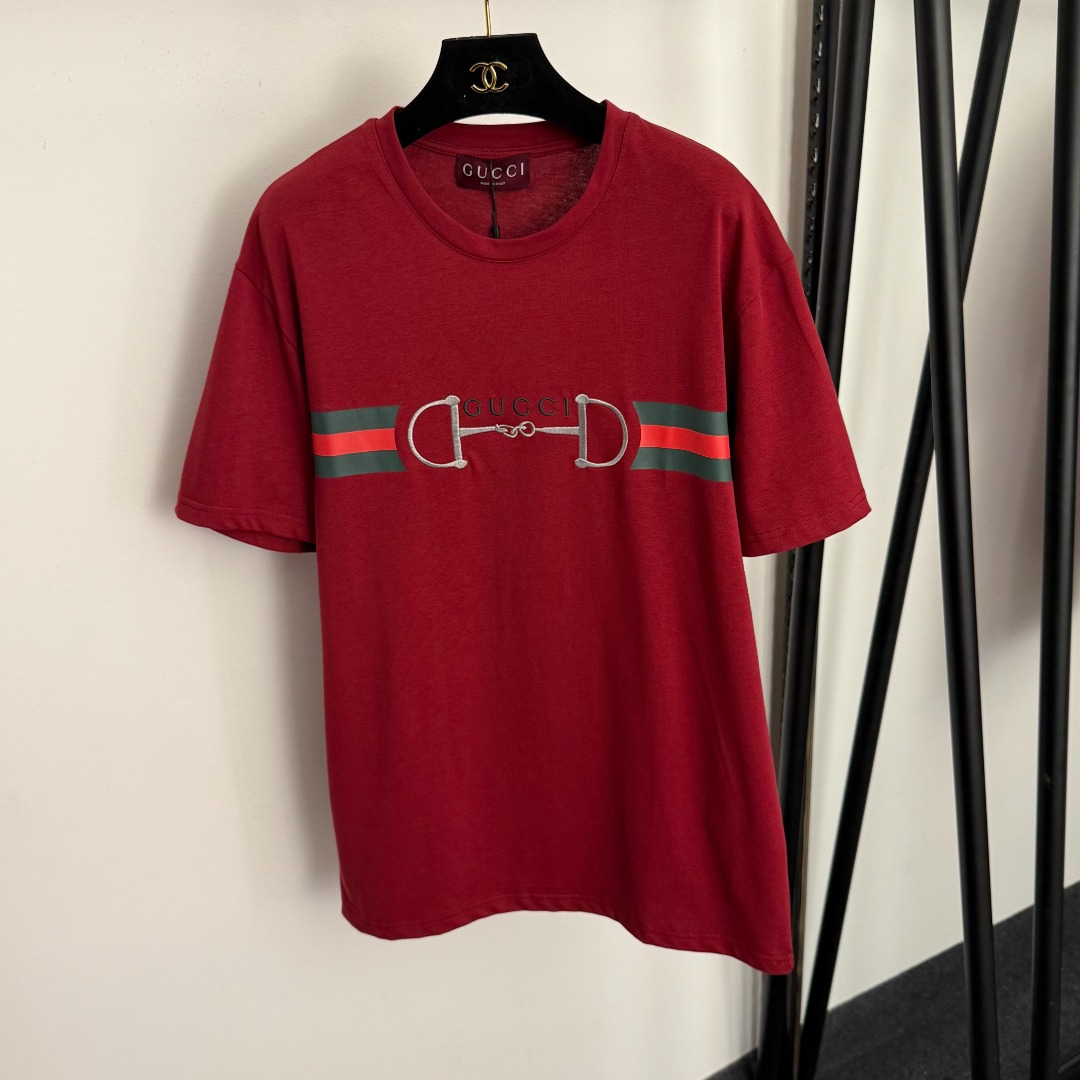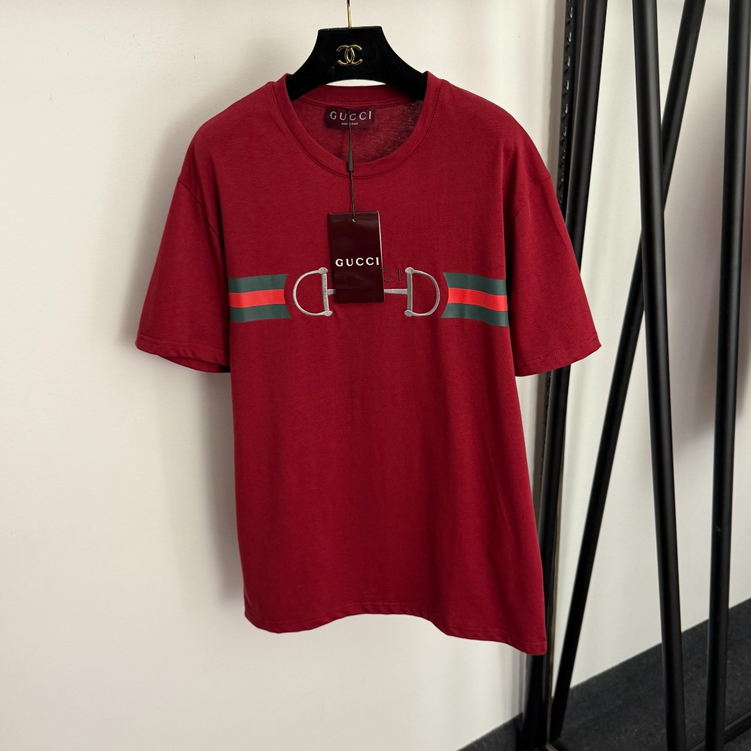 Details: New casual short-sleeved T-shirt with equestrian buckle logo, available in white and red, sizes S, M, L. High-end custom with fine workmanship