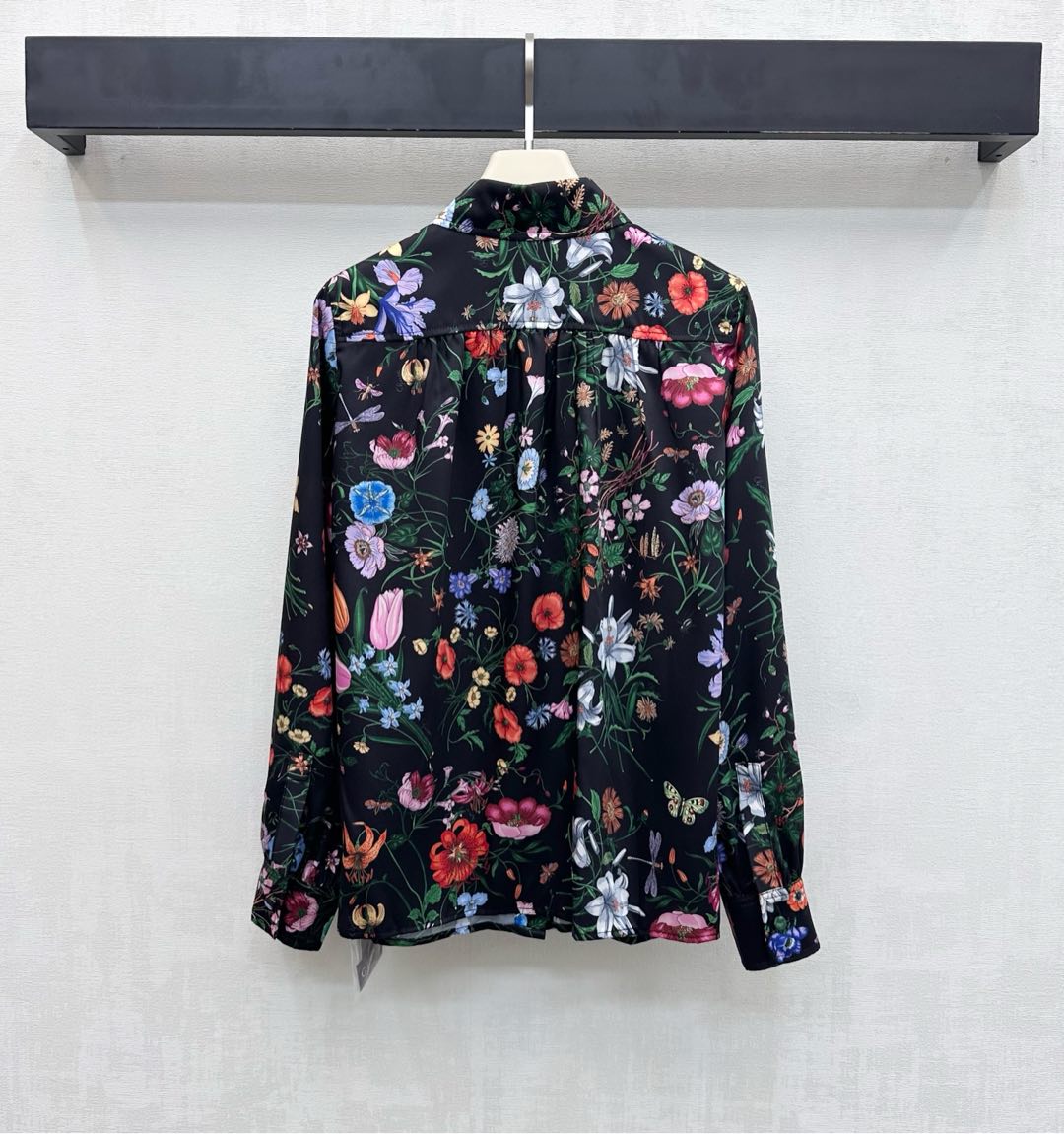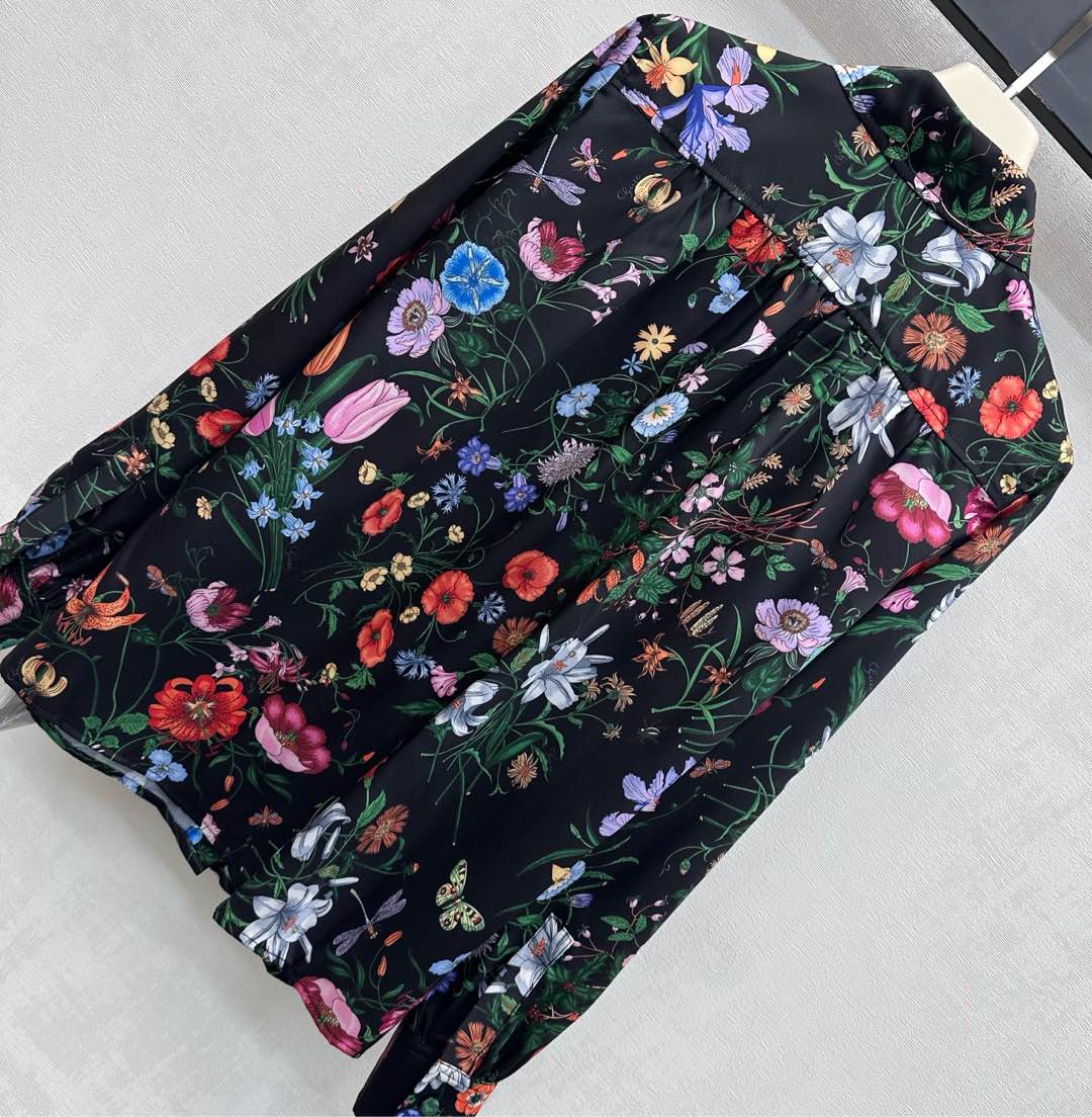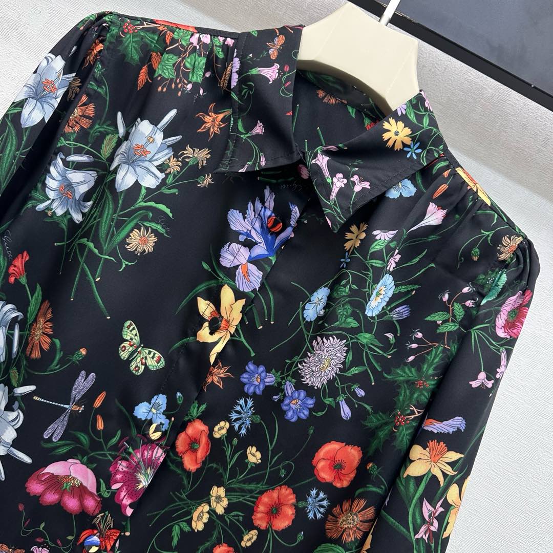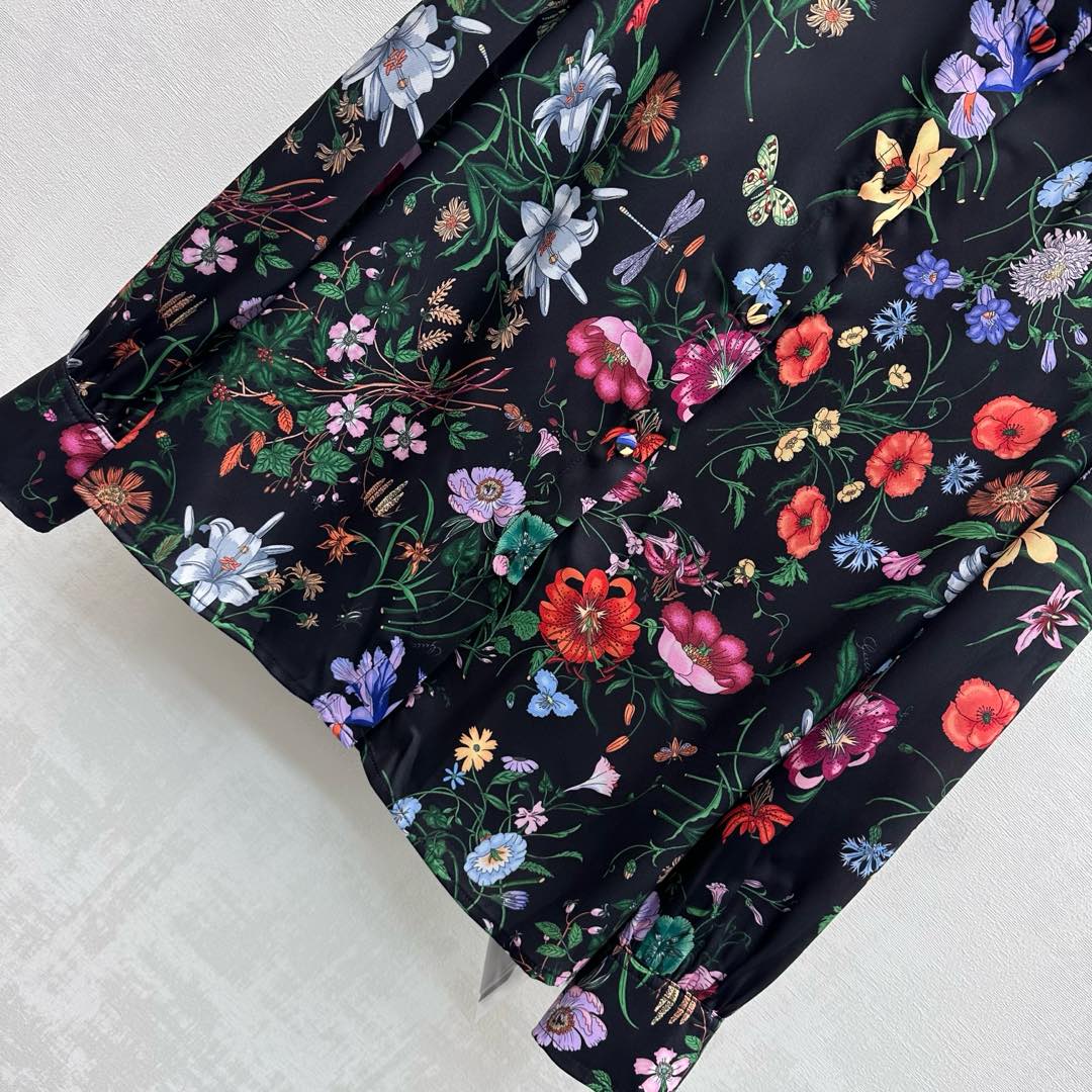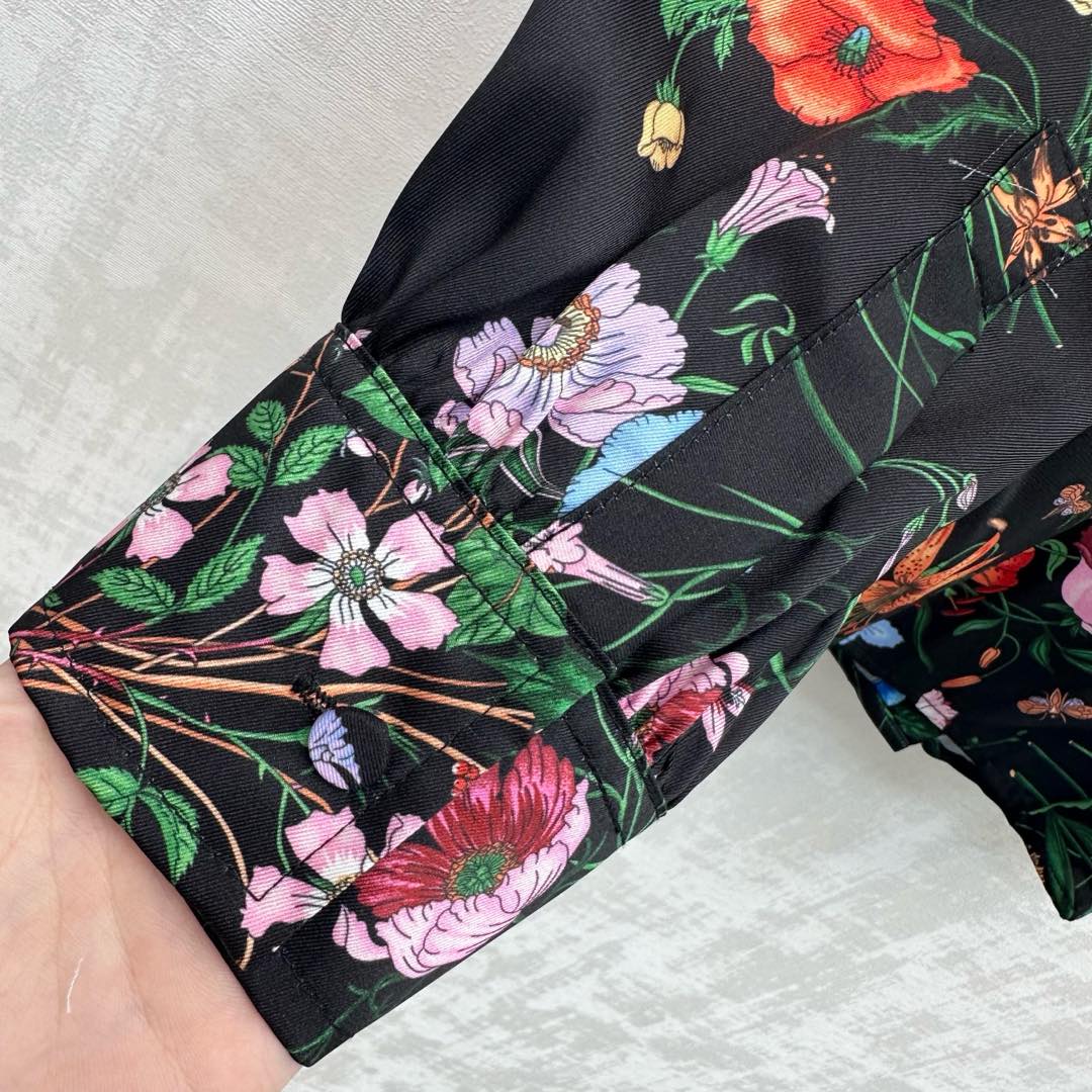 Details: Silk Printed Shirt with Floral Insect Patterns, High - end Craftsmanship