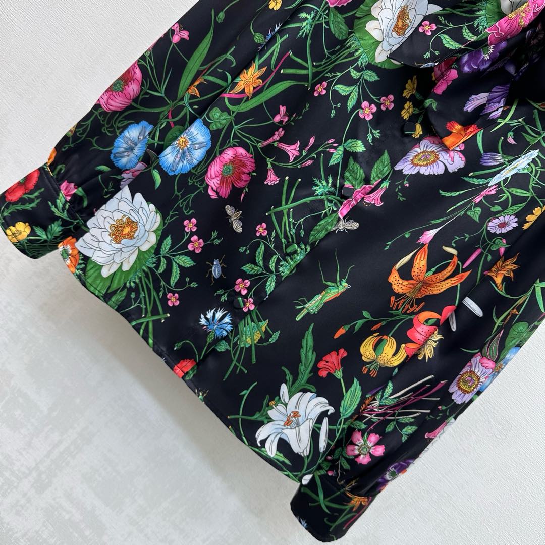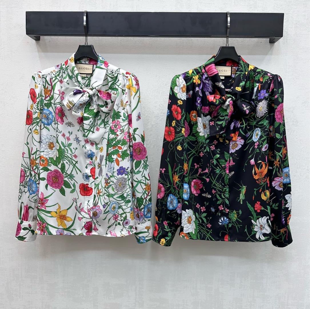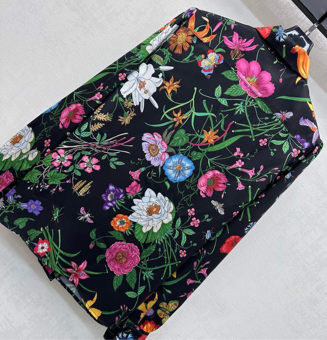 Details: Tie-printed shirt crafted from premium silk. It has a floral pattern and comes in 2 colors. High-end customization and fine workmanship
