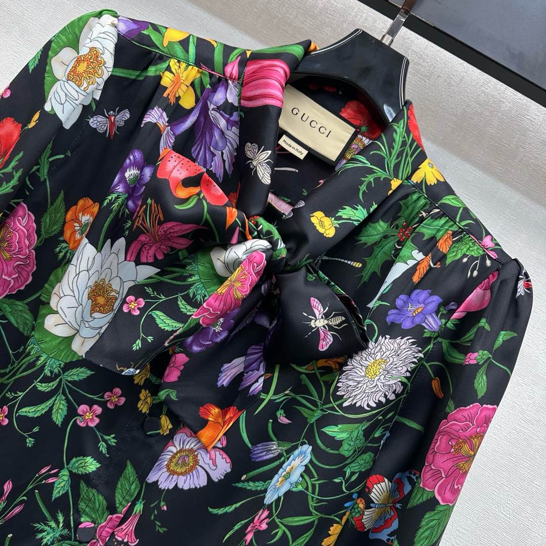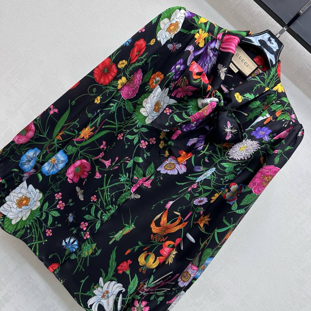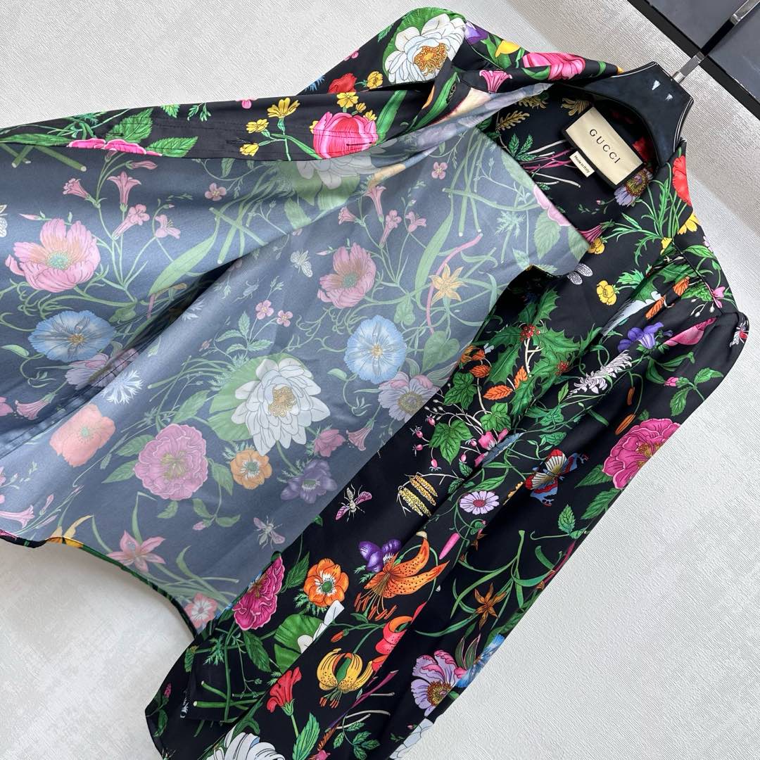 Details: Tie-printed shirt crafted from premium silk. It has a floral pattern and comes in 2 colors. High-end customization and fine workmanship