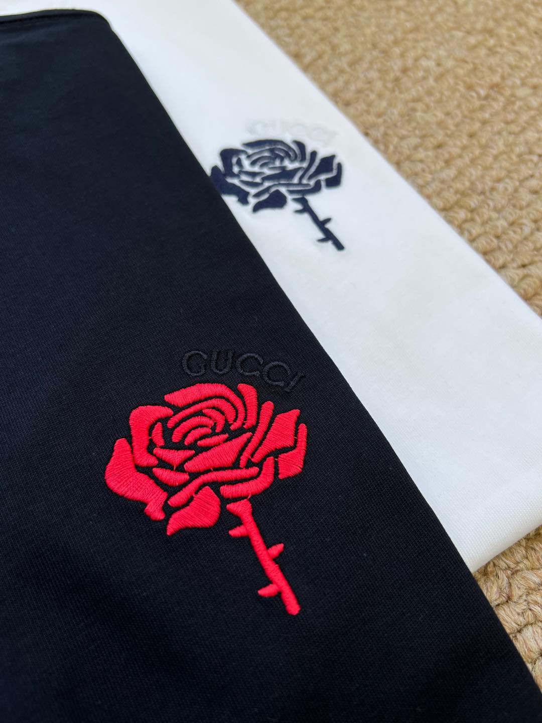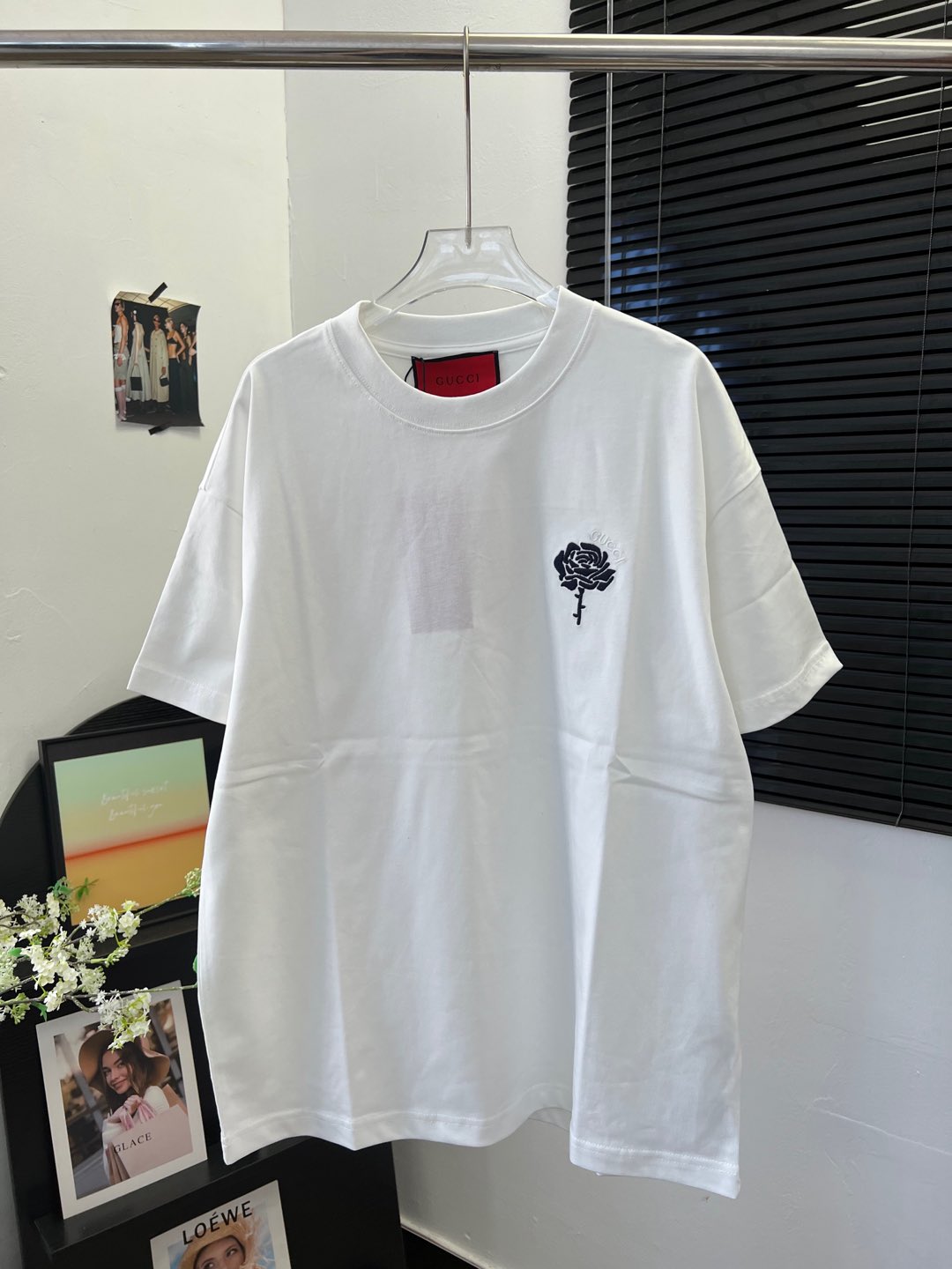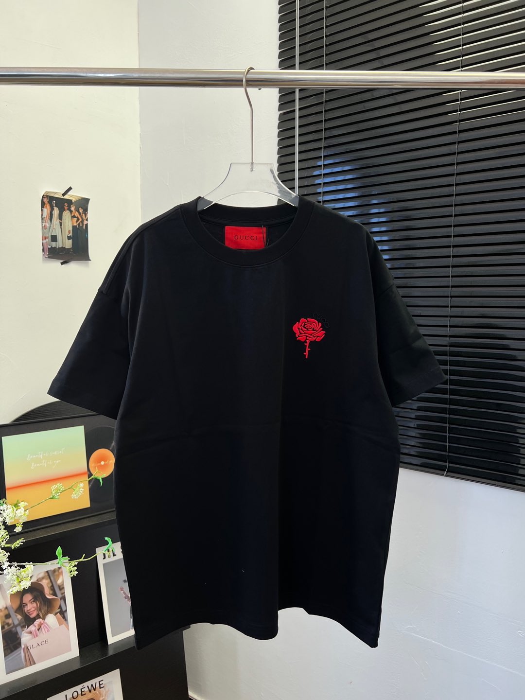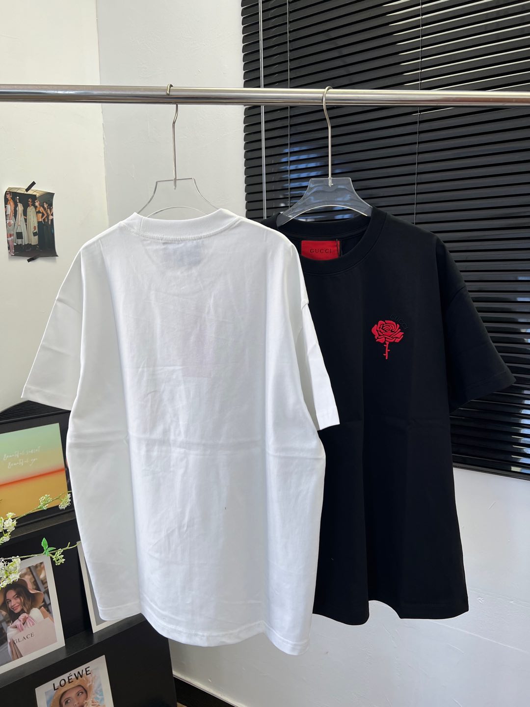 Details: New two - color rose embroidery loose short - sleeved T - shirt, made of cotton, shrink - resistant. High - end customization, fine workmanship