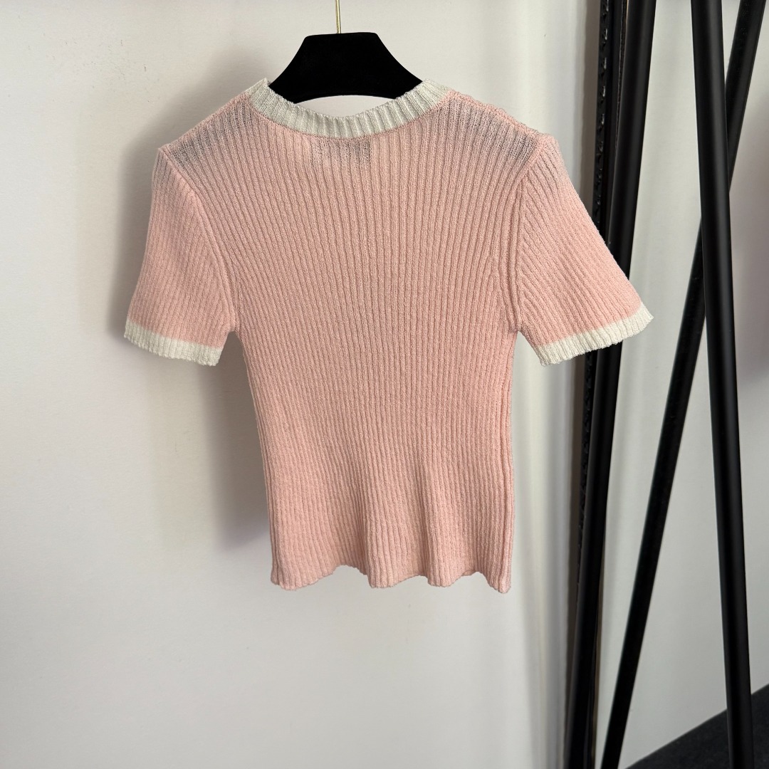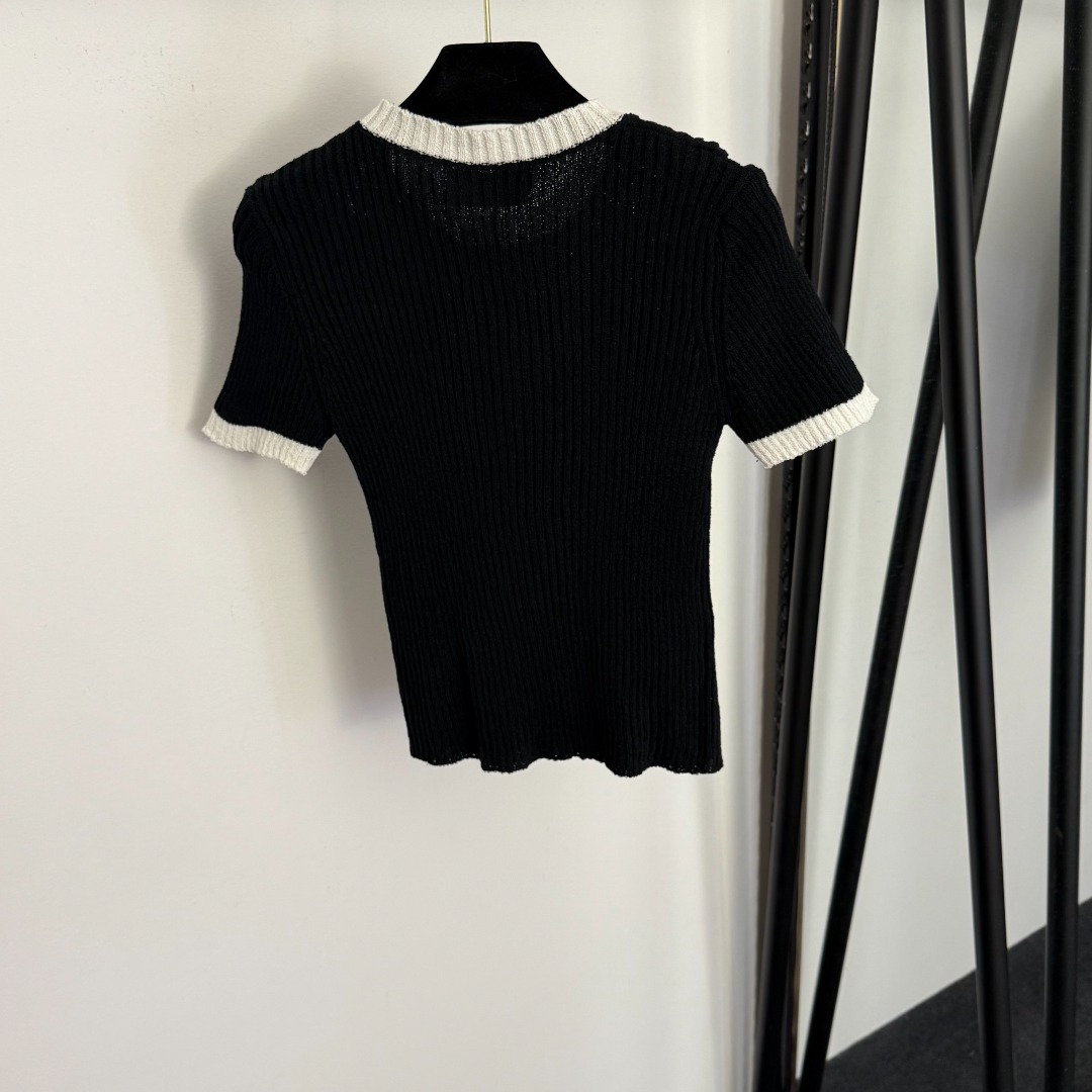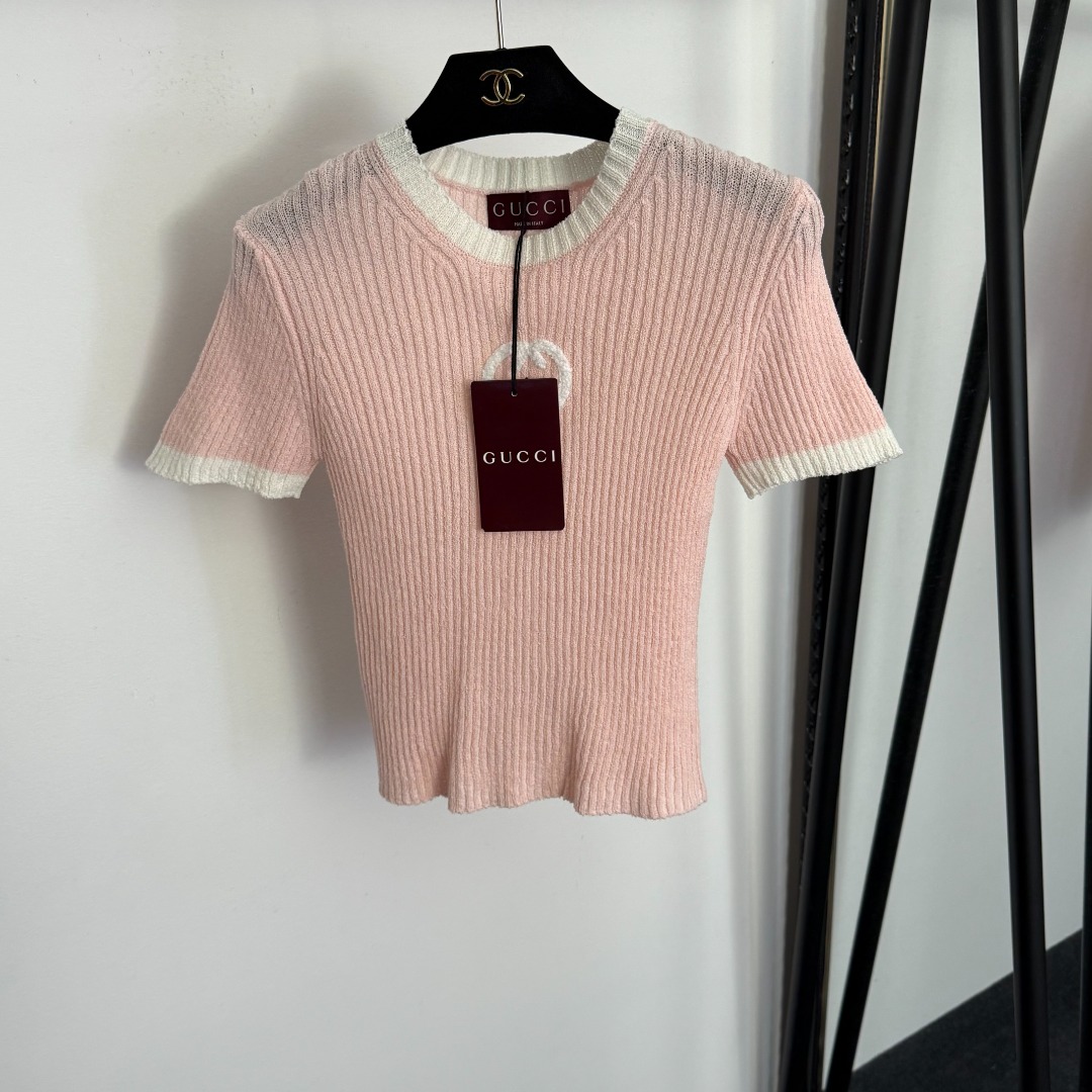 Details: New slim - fit short - sleeved knitted top with GG embroidery, available in multiple colors, premium custom, fine workmanship