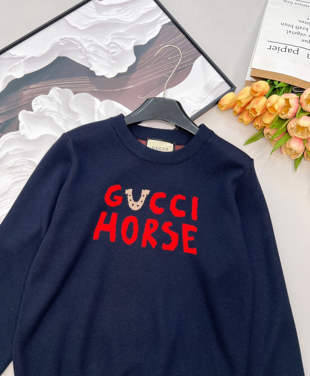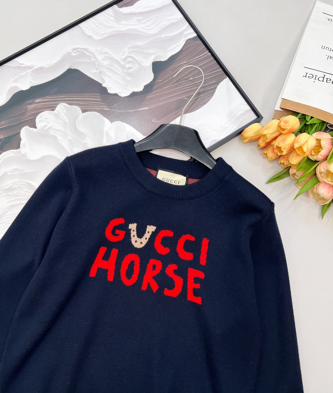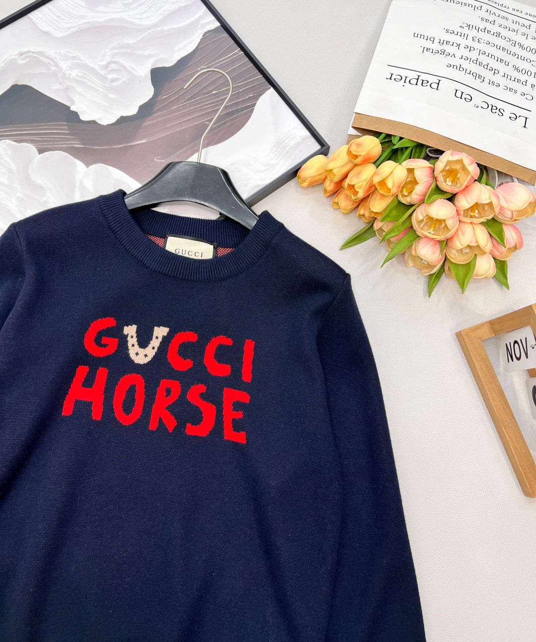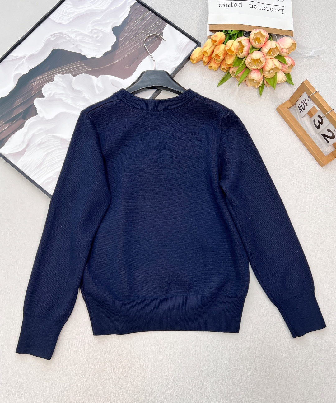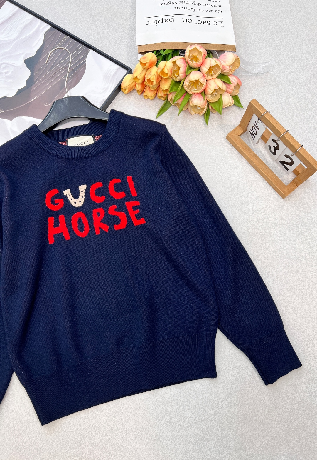 Details: Red knitted sweater with cartoon pattern, great for holidays, versatile wear, high - end customization