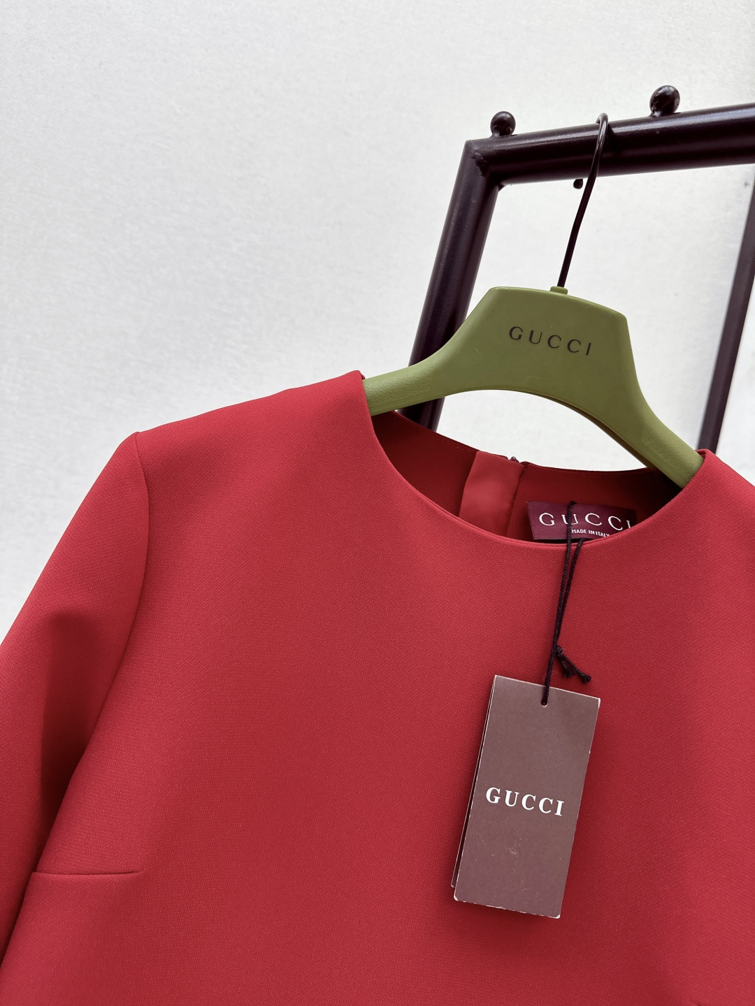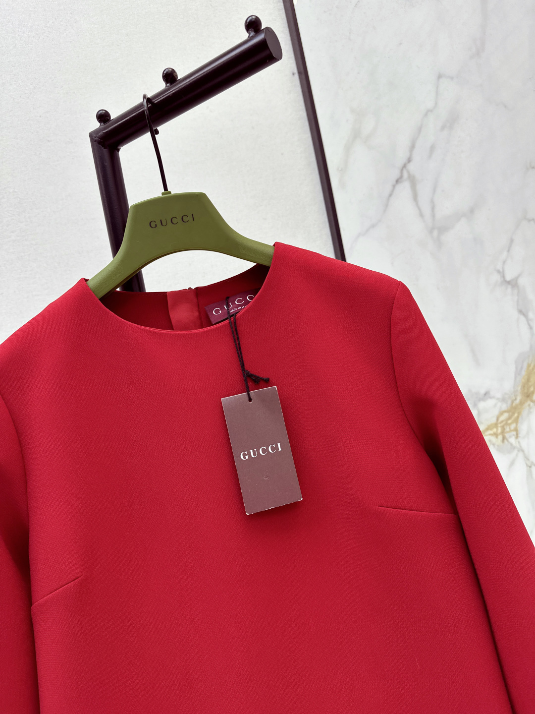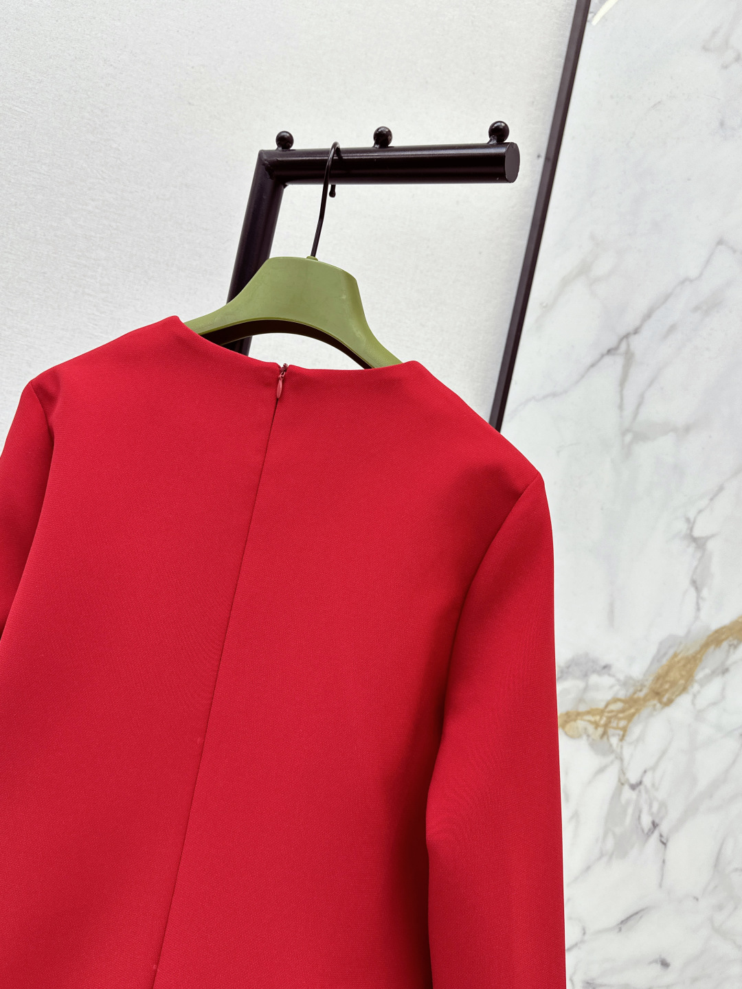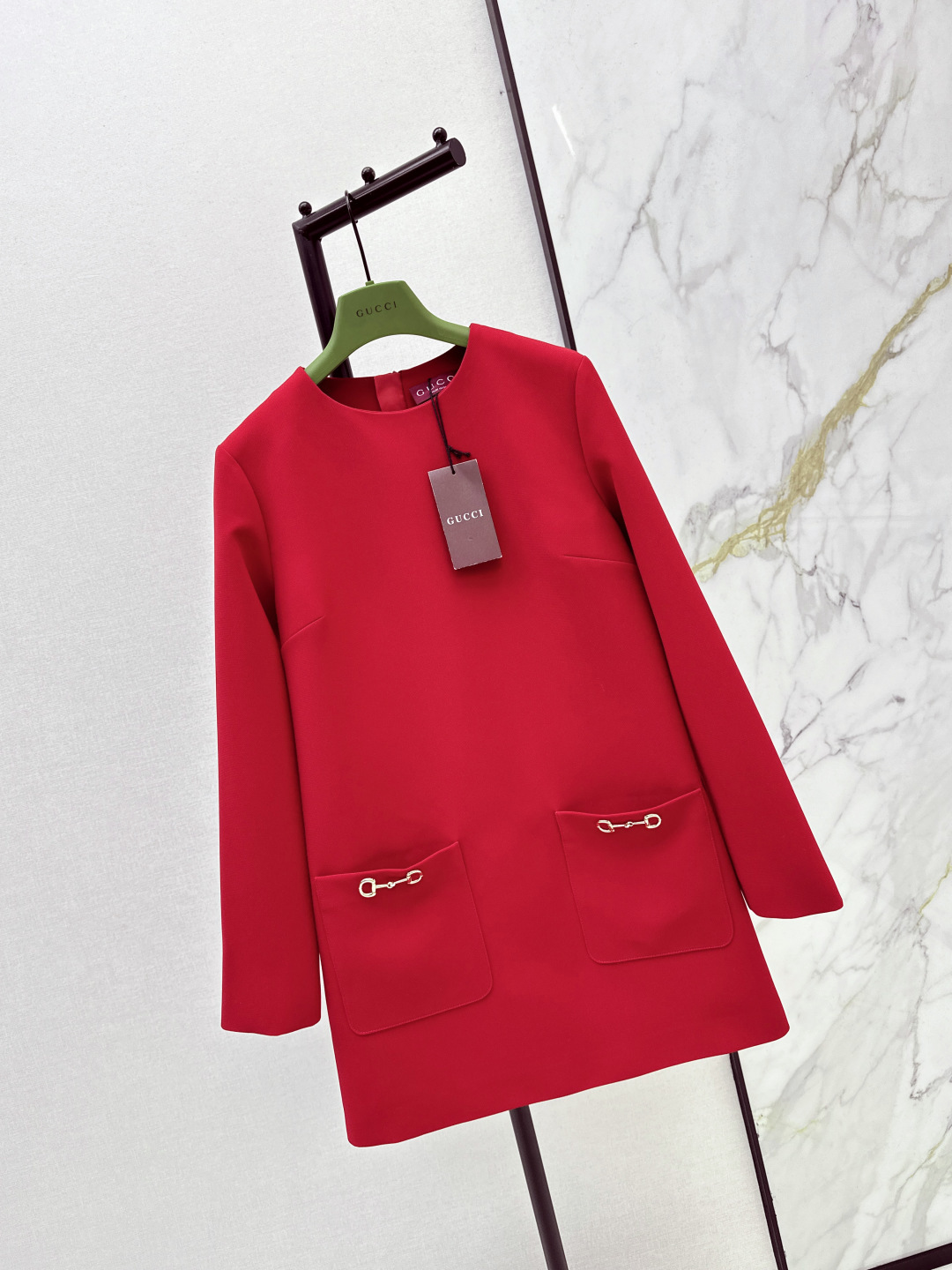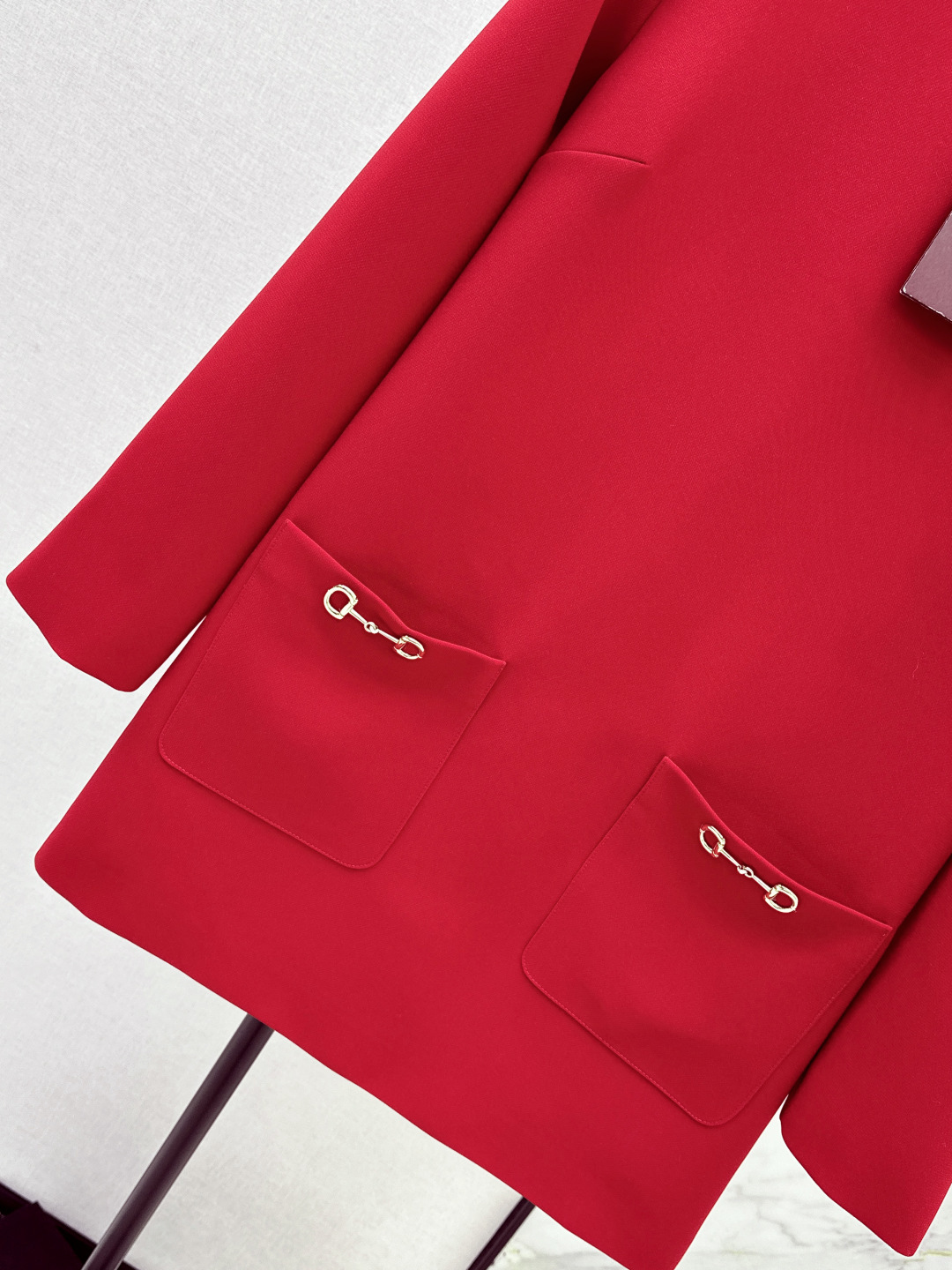 Details: Early spring red cotton acetate dress with horse-bit buckle, suitable for various occasions.