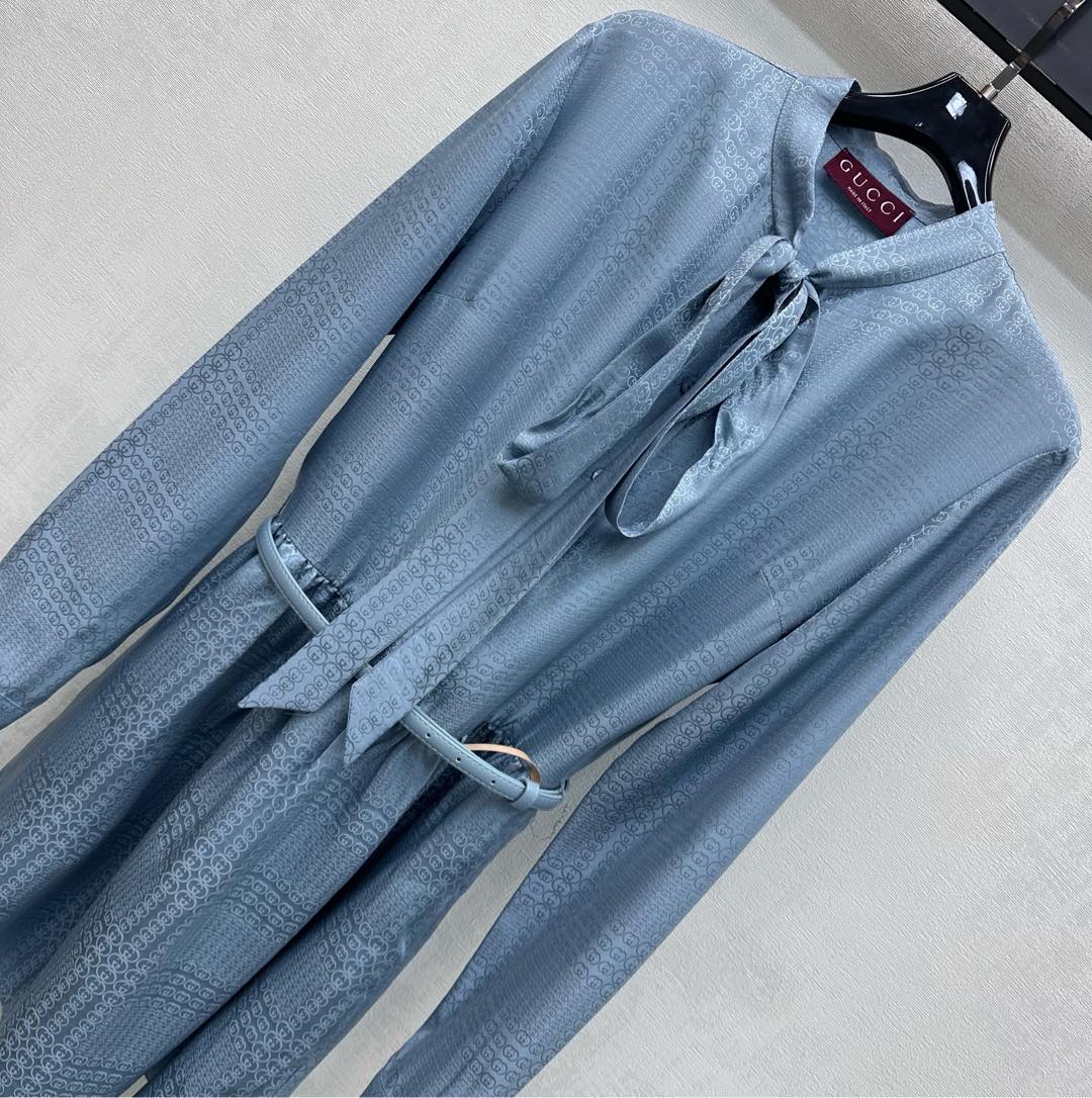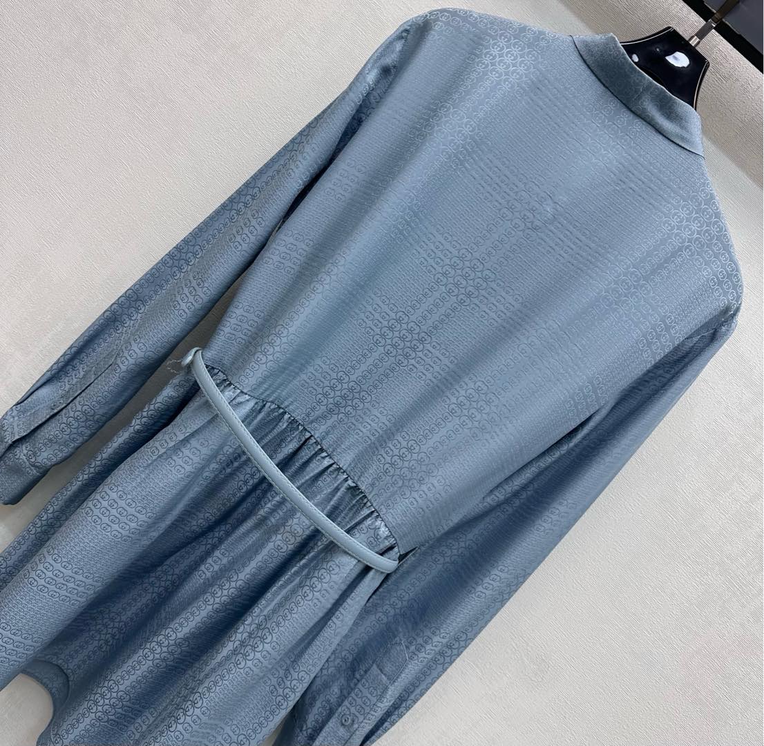 Details: Belted Jacquard Silk Dress, Graceful and Relaxed, High-end Customization