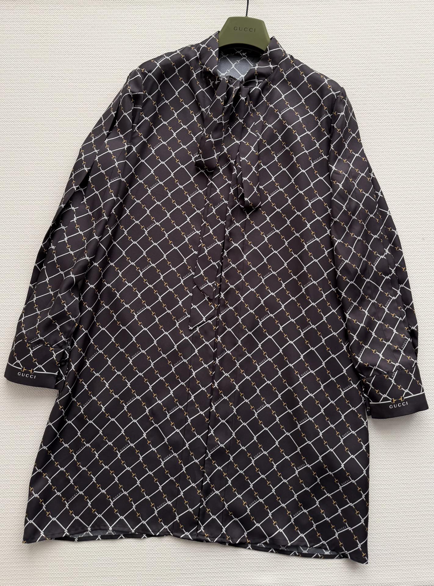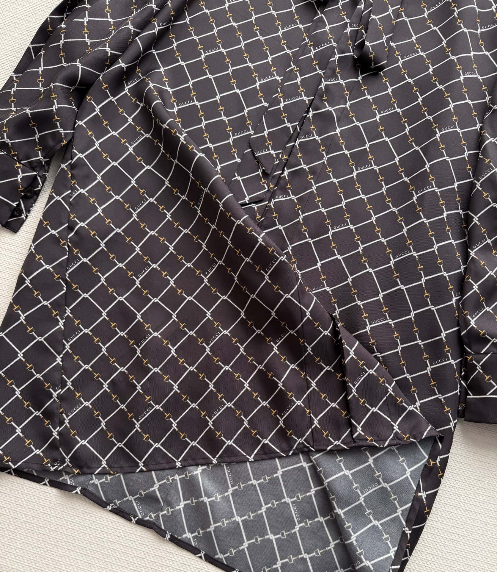 Details: New printed silk dress, smooth, geometric print, suitable for daily or formal occasions