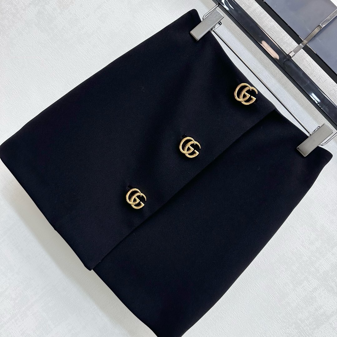 Details: New High-waisted Buttoned Skirt with Double G Logo, A-line Cut, Ideal for Work, High-end Custom, Fine Workmanship