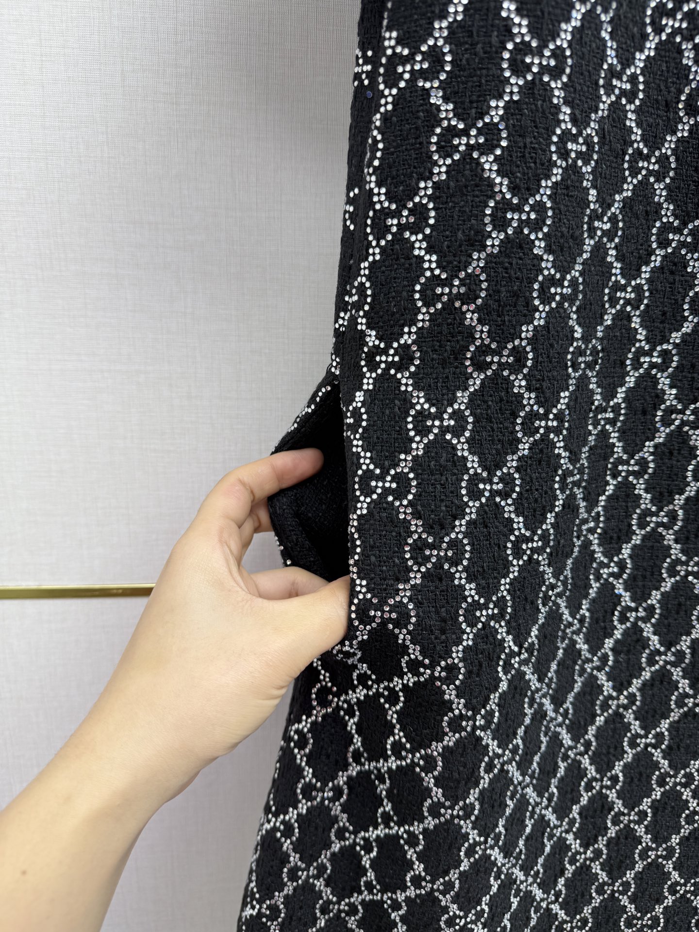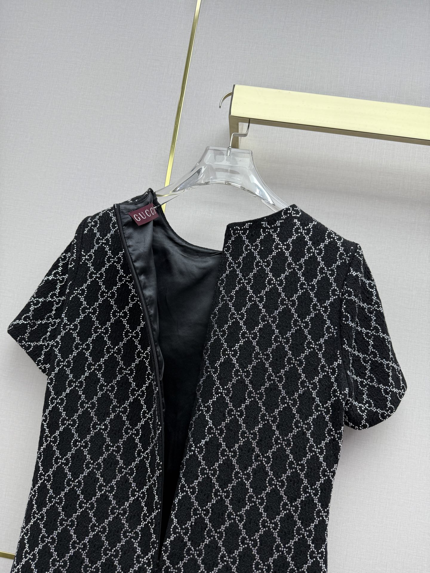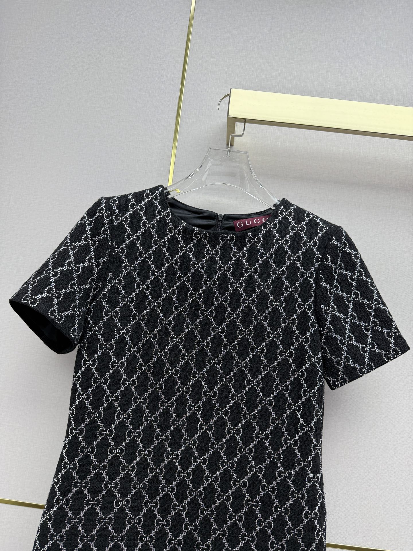 Details: New Double G Studded Round-Neck Dress, Coarse Fabric, One Color, Three Sizes