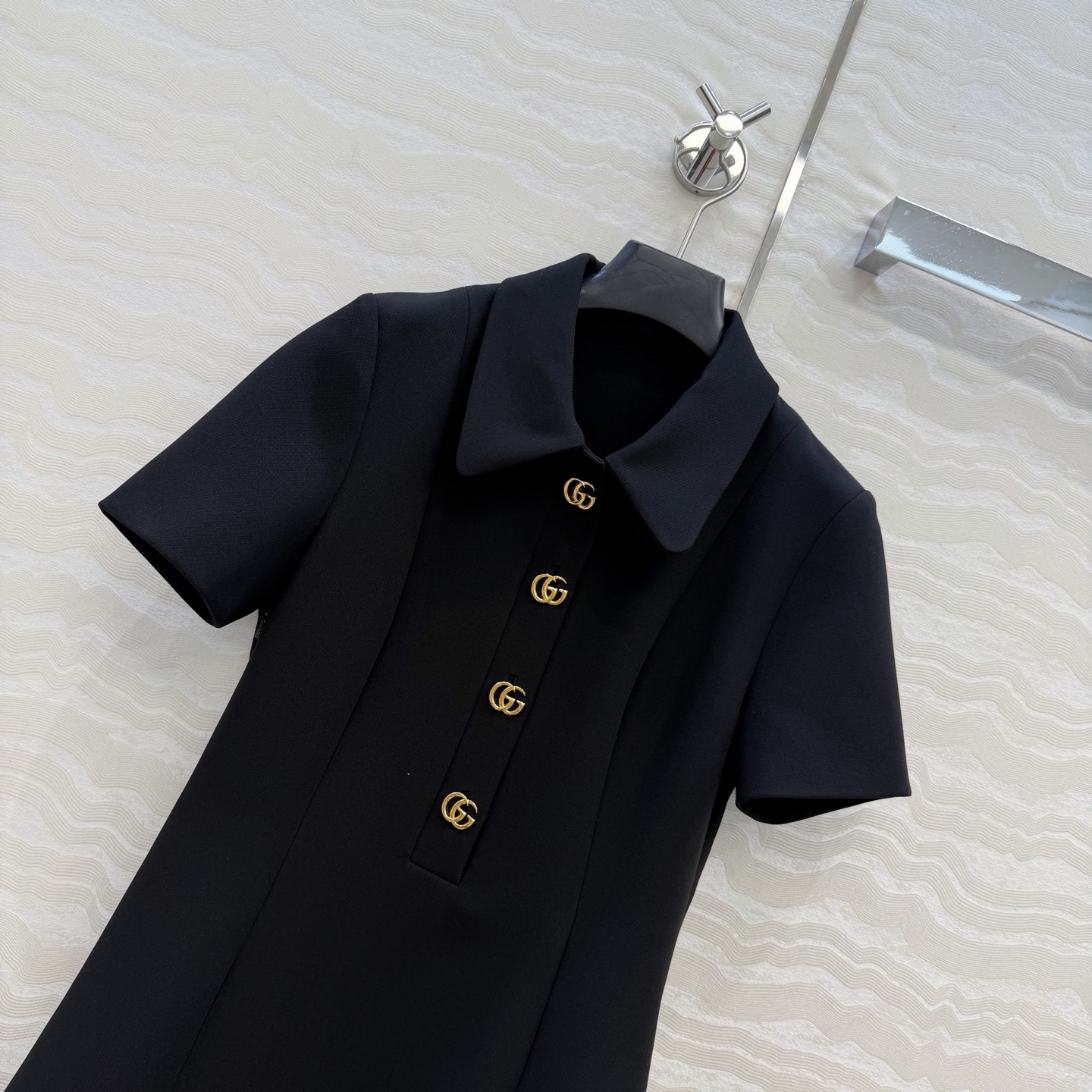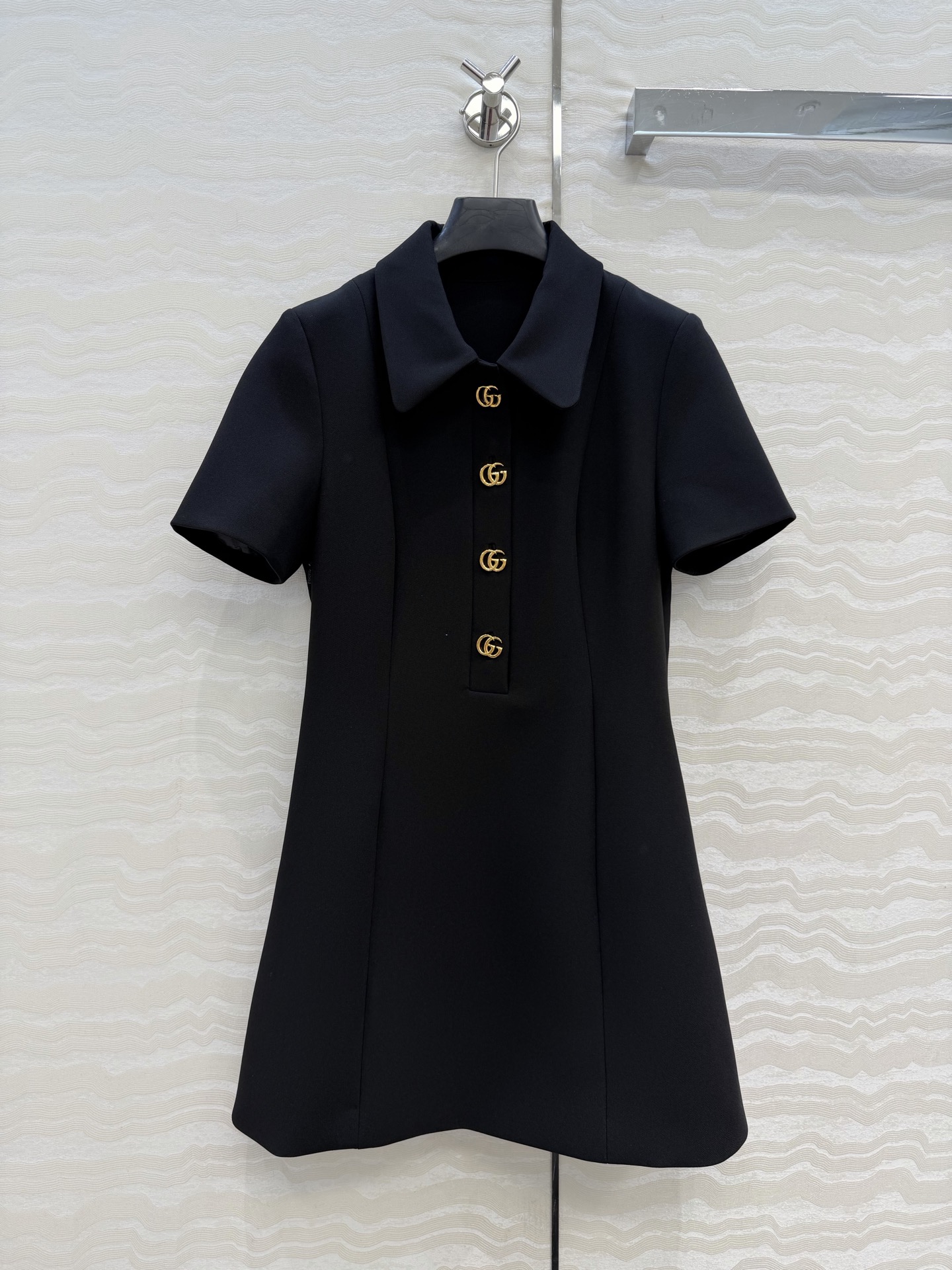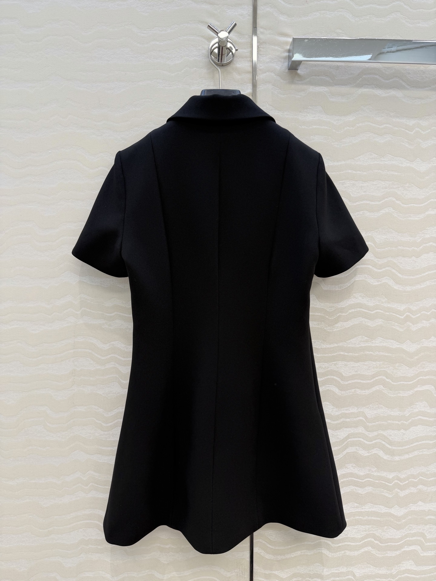 Details: Retro-modern metal-button short-sleeved dress with tailored lining, classic A-line skirt
