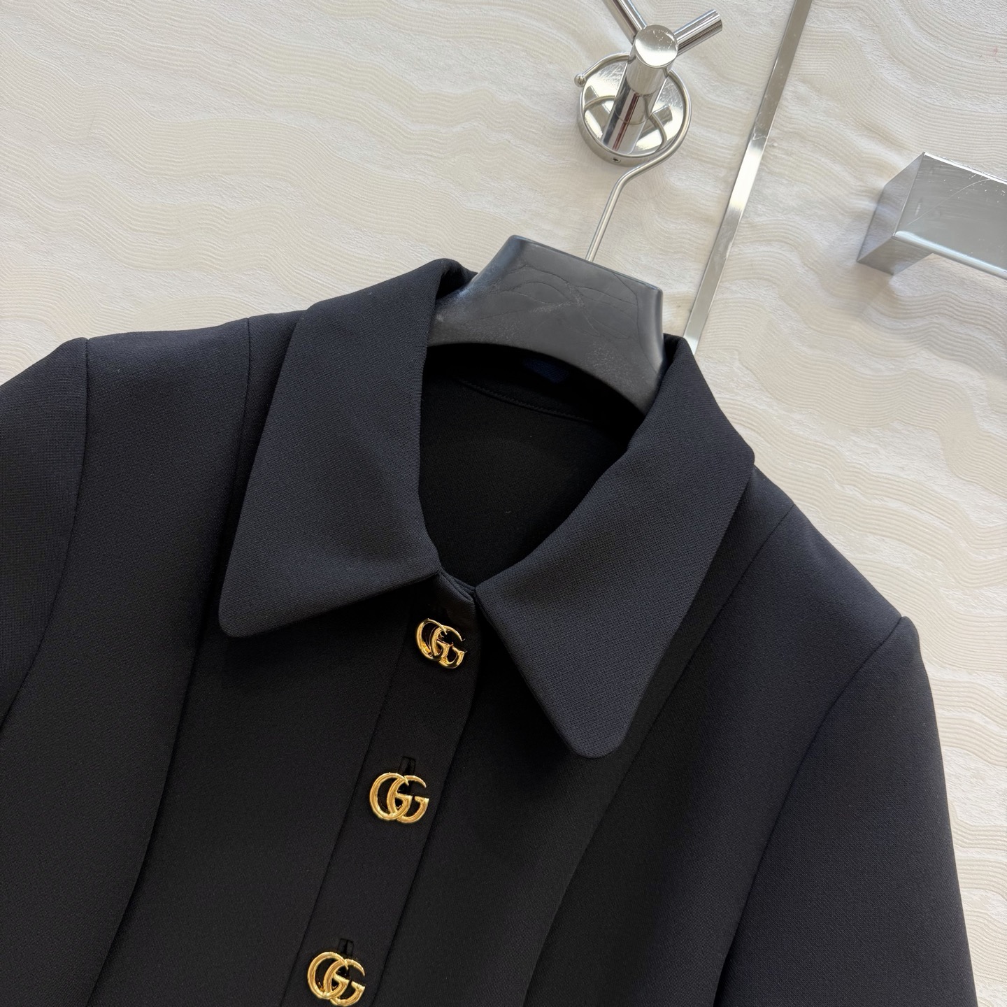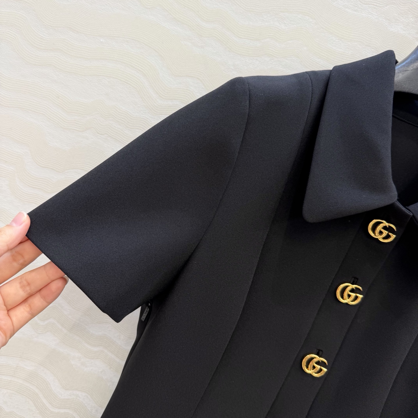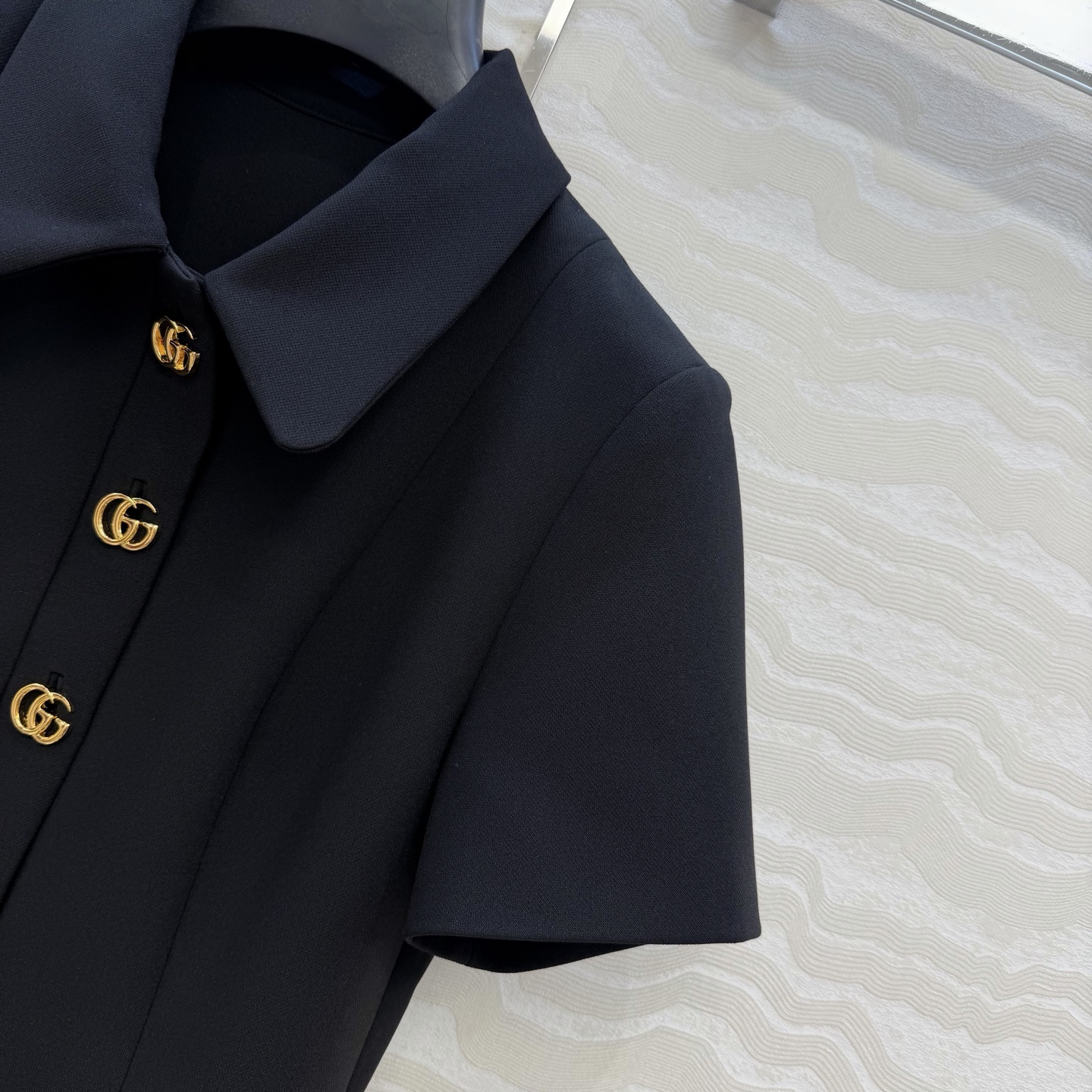 Details: Retro-modern metal-button short-sleeved dress with tailored lining, classic A-line skirt