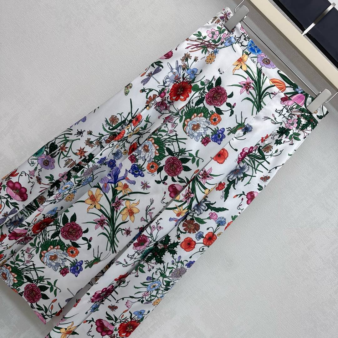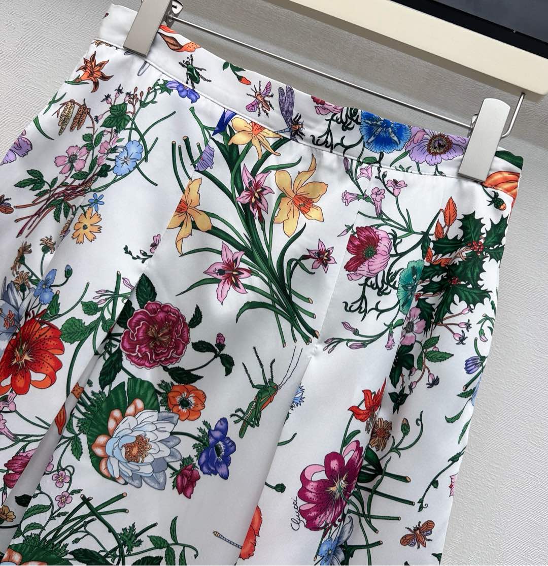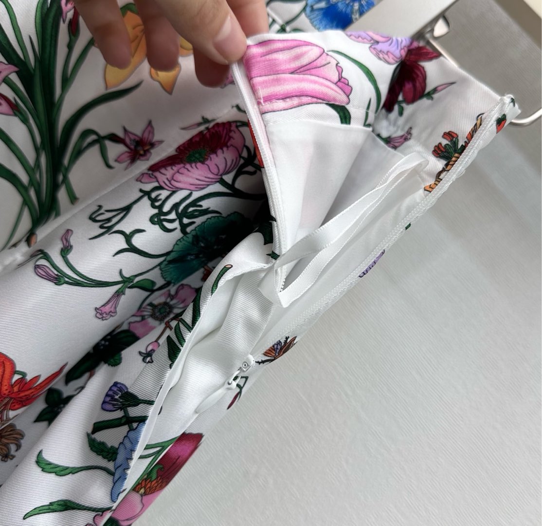 Details: Silk Printed Pleated Skirt with Floral Insect Patterns, High - end Customization