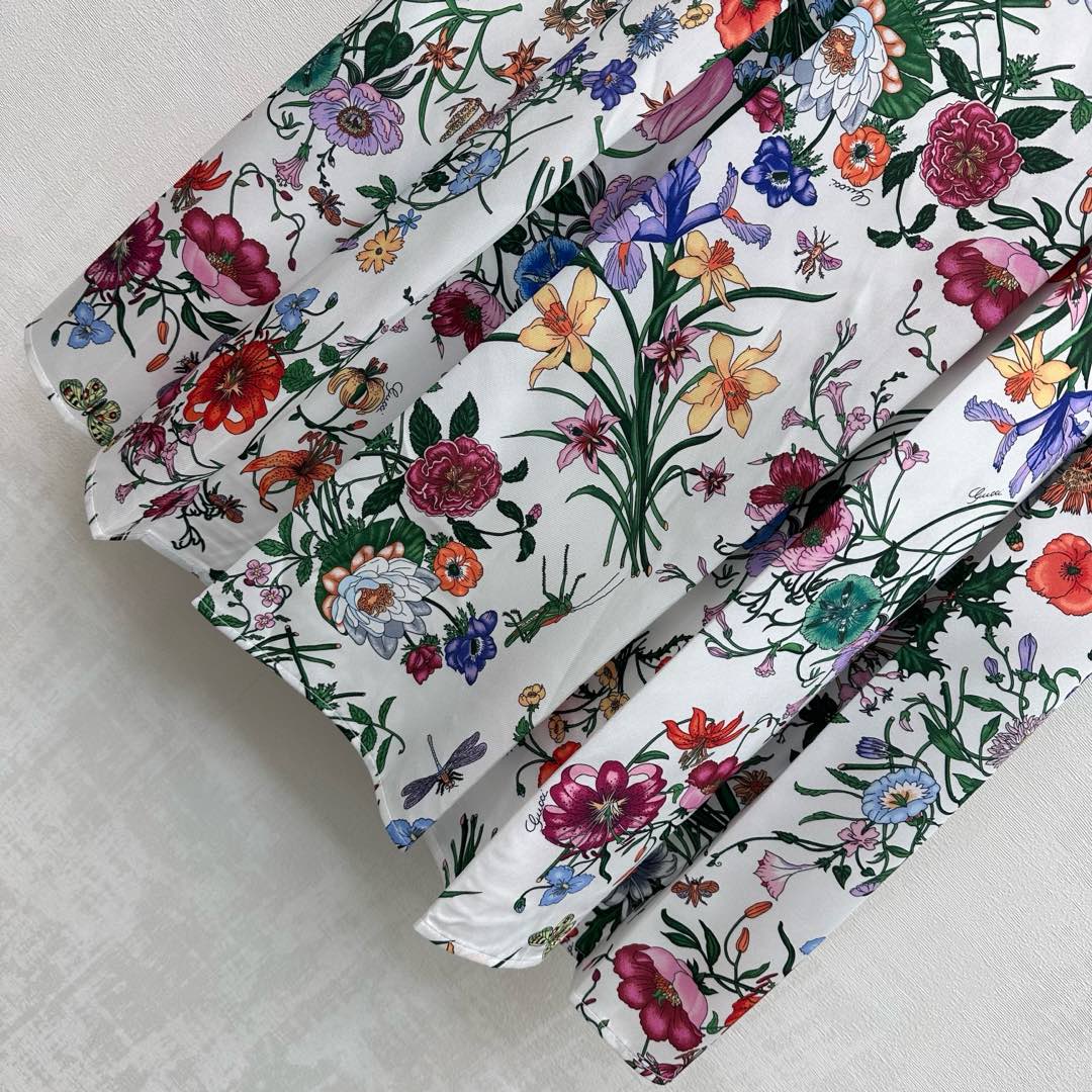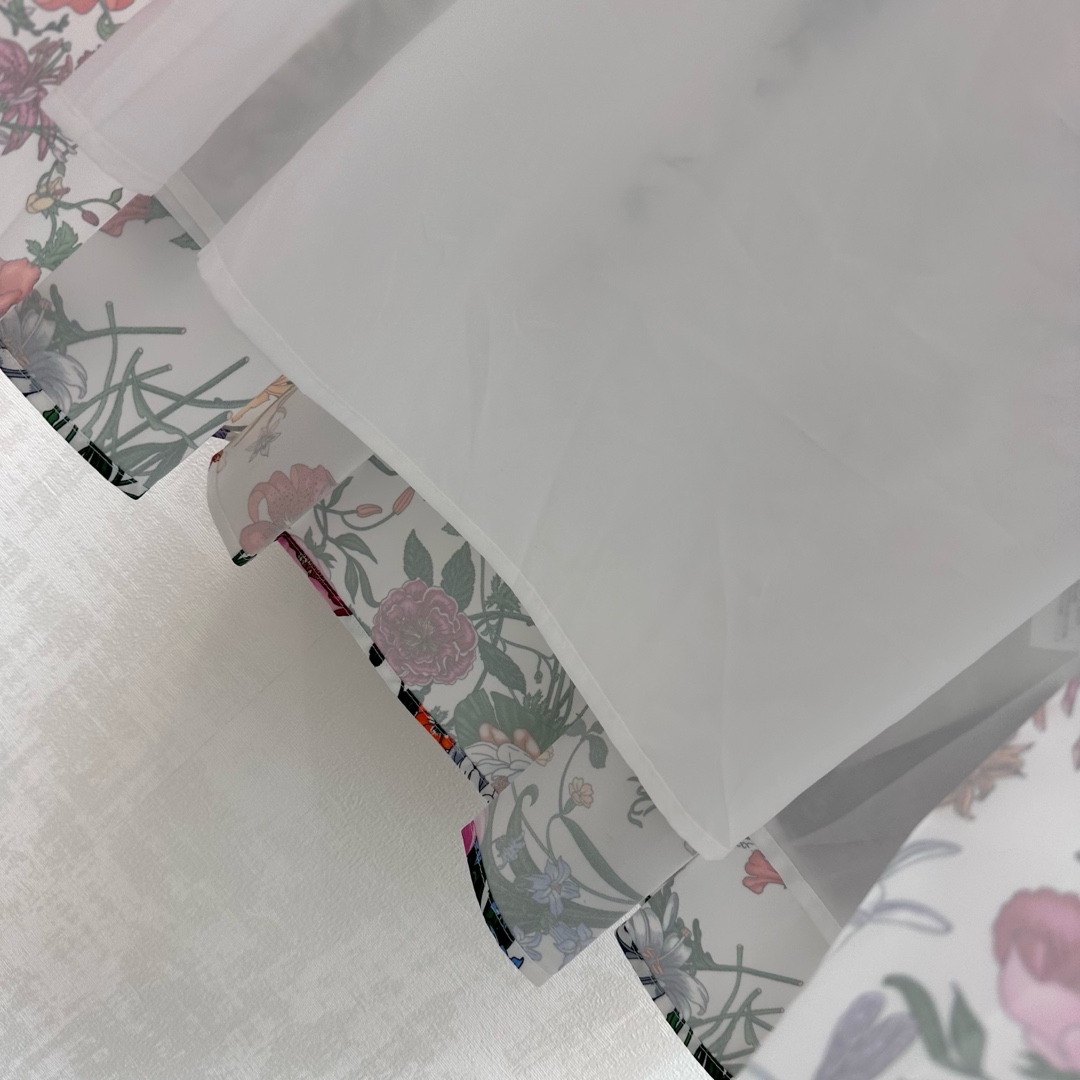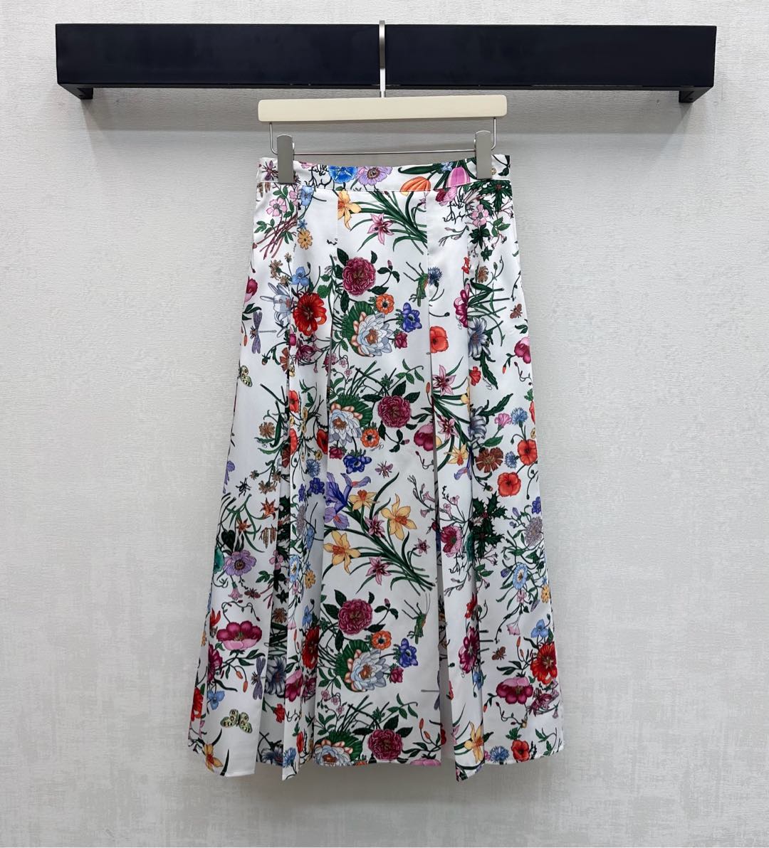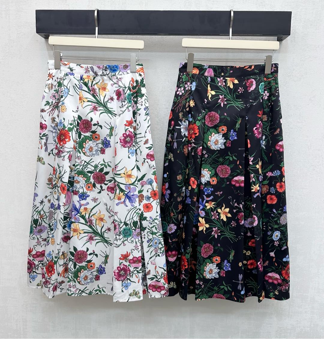 Details: Silk Printed Pleated Skirt with Floral Insect Patterns, High - end Customization