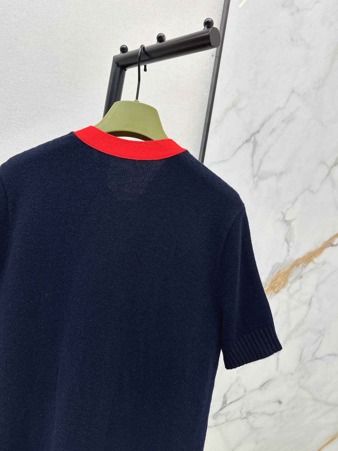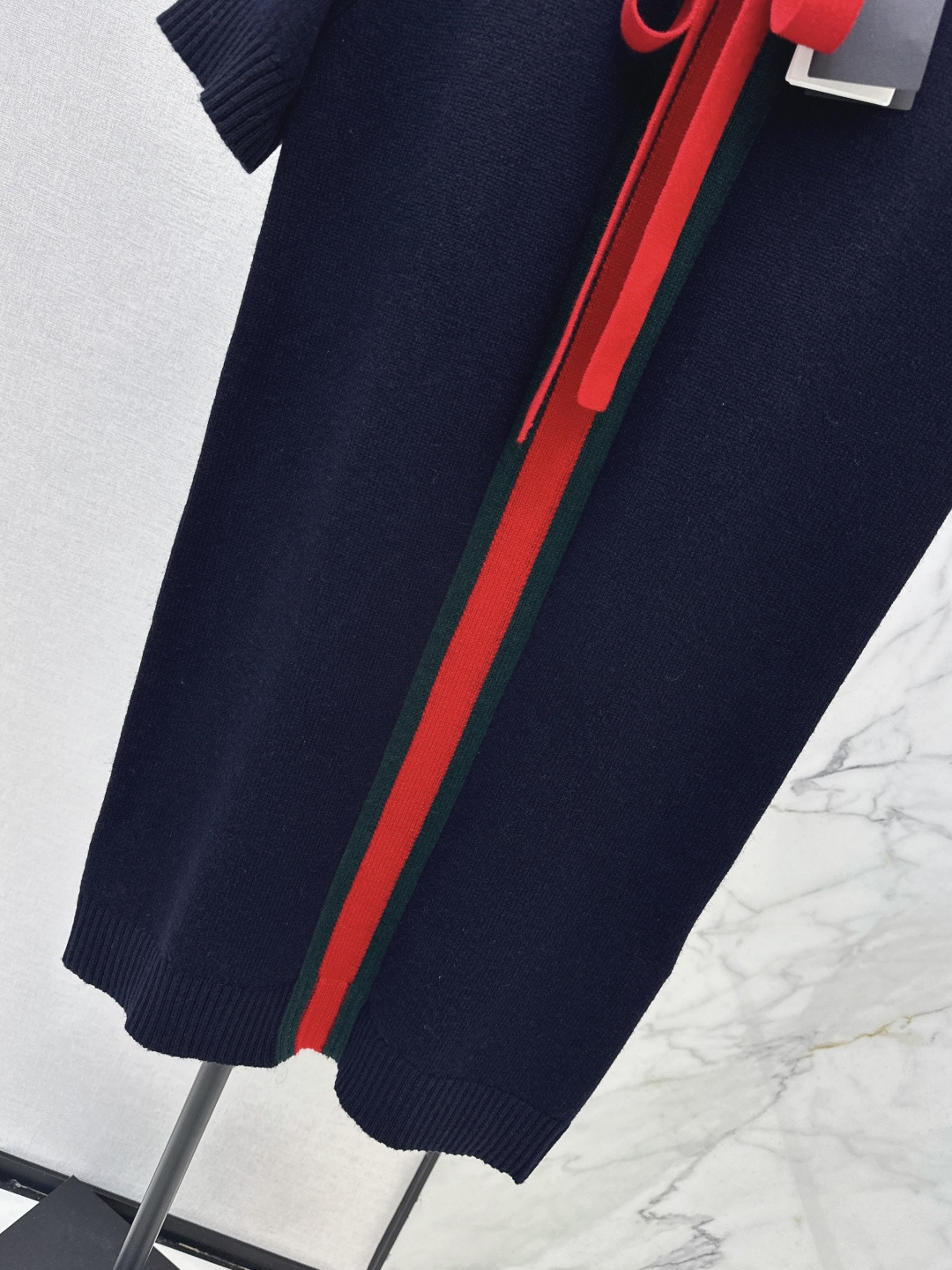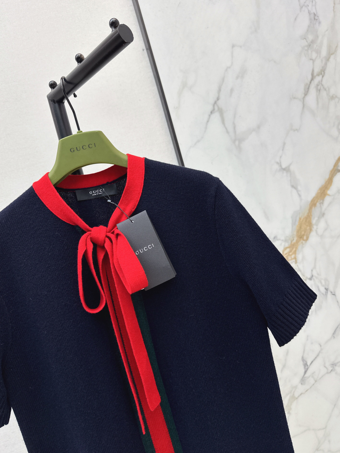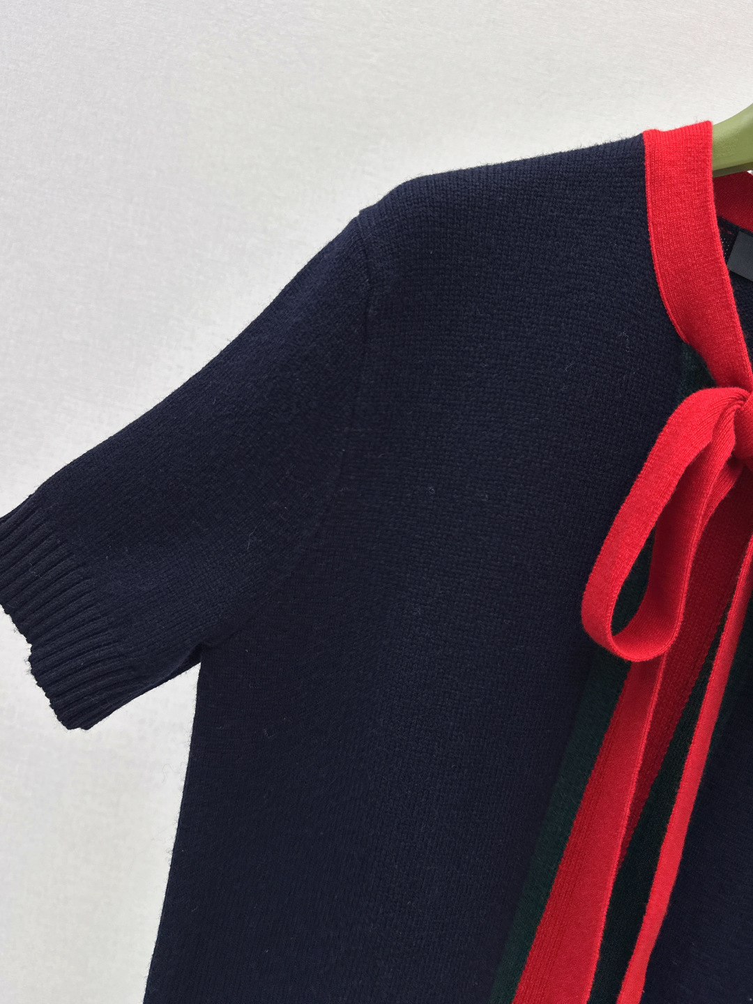 Details: New spring/summer short - sleeve knitted dress with red bow, blue color, loose fit, hides flaws, available in SML, High - end customization, Fine workmanship