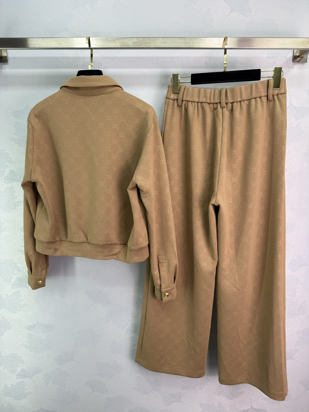 Details: Early autumn full-logo suit consisting of a coat and wide-leg pants, stylish and luxurious, available in 2 colors and 3 sizes