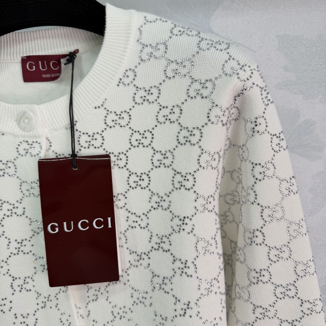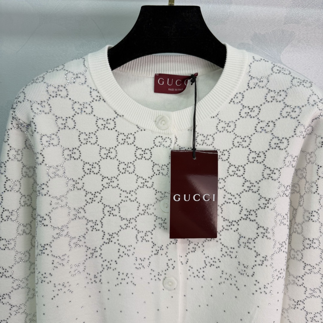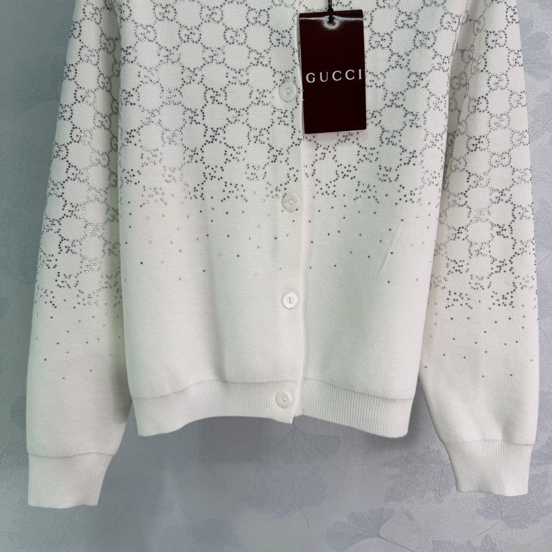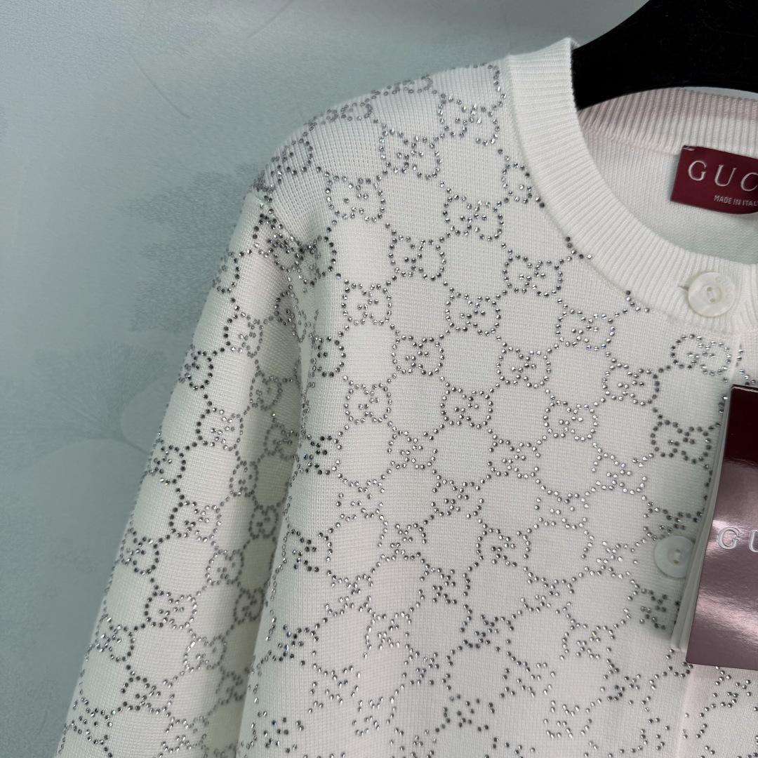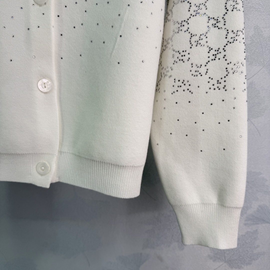 Details: Early spring white embroidered knitted cardigan, made of soft wool blend, featuring classic embroidery with sequin details, round neck and button design, elegant and retro.