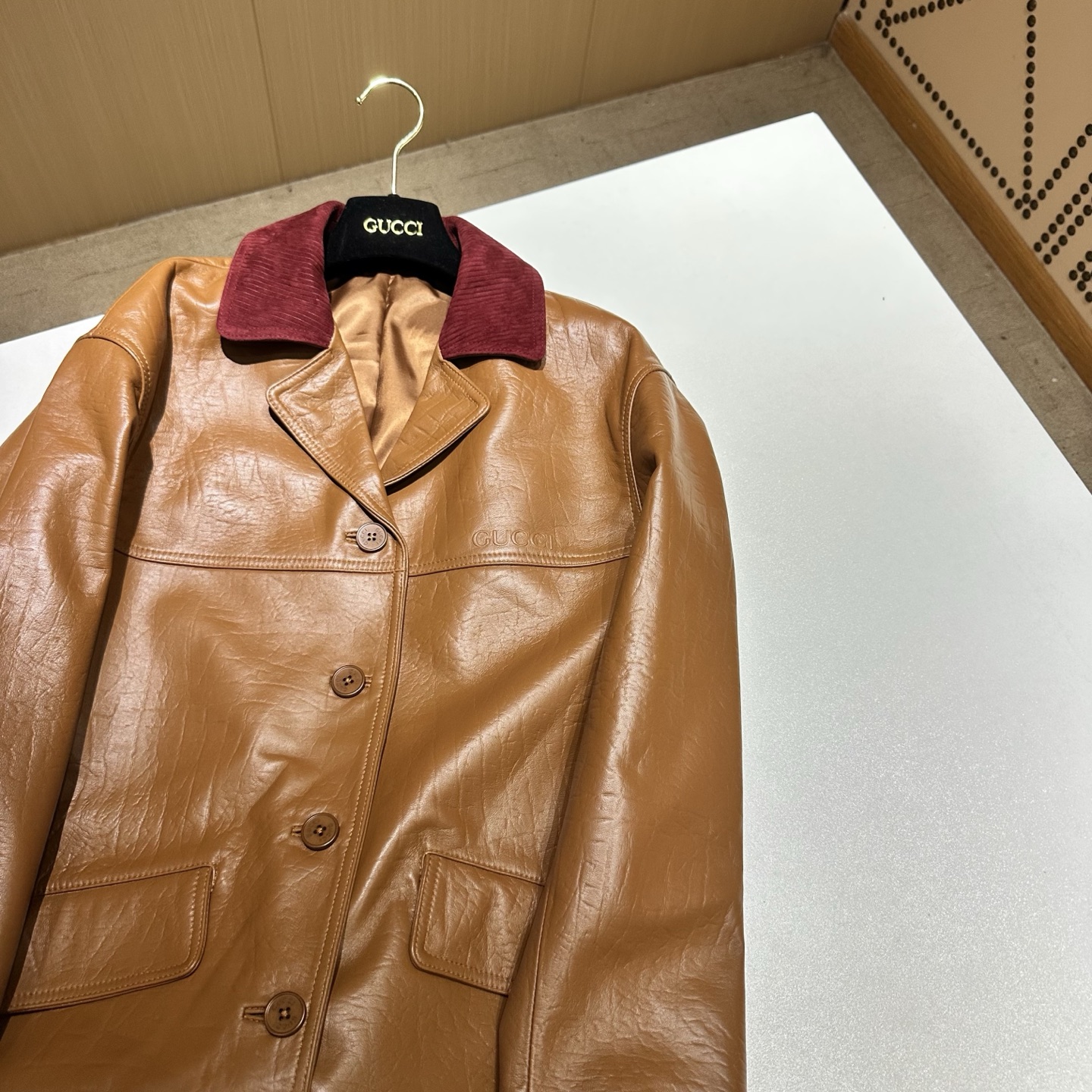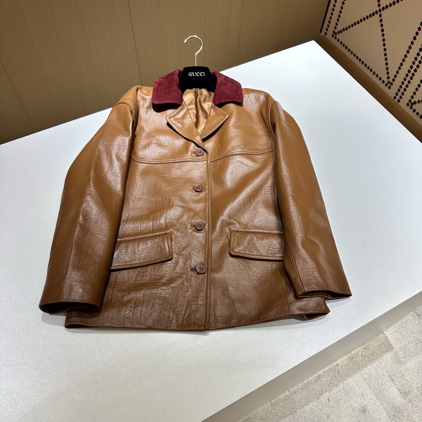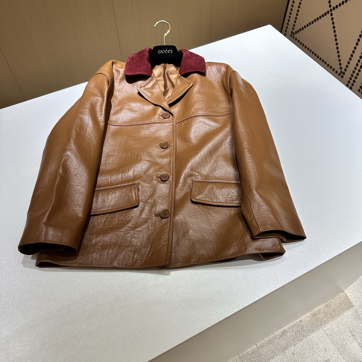 Details: Genuine leather elegant coat with elaborate collar, imported New Zealand leather, multi-sizes.