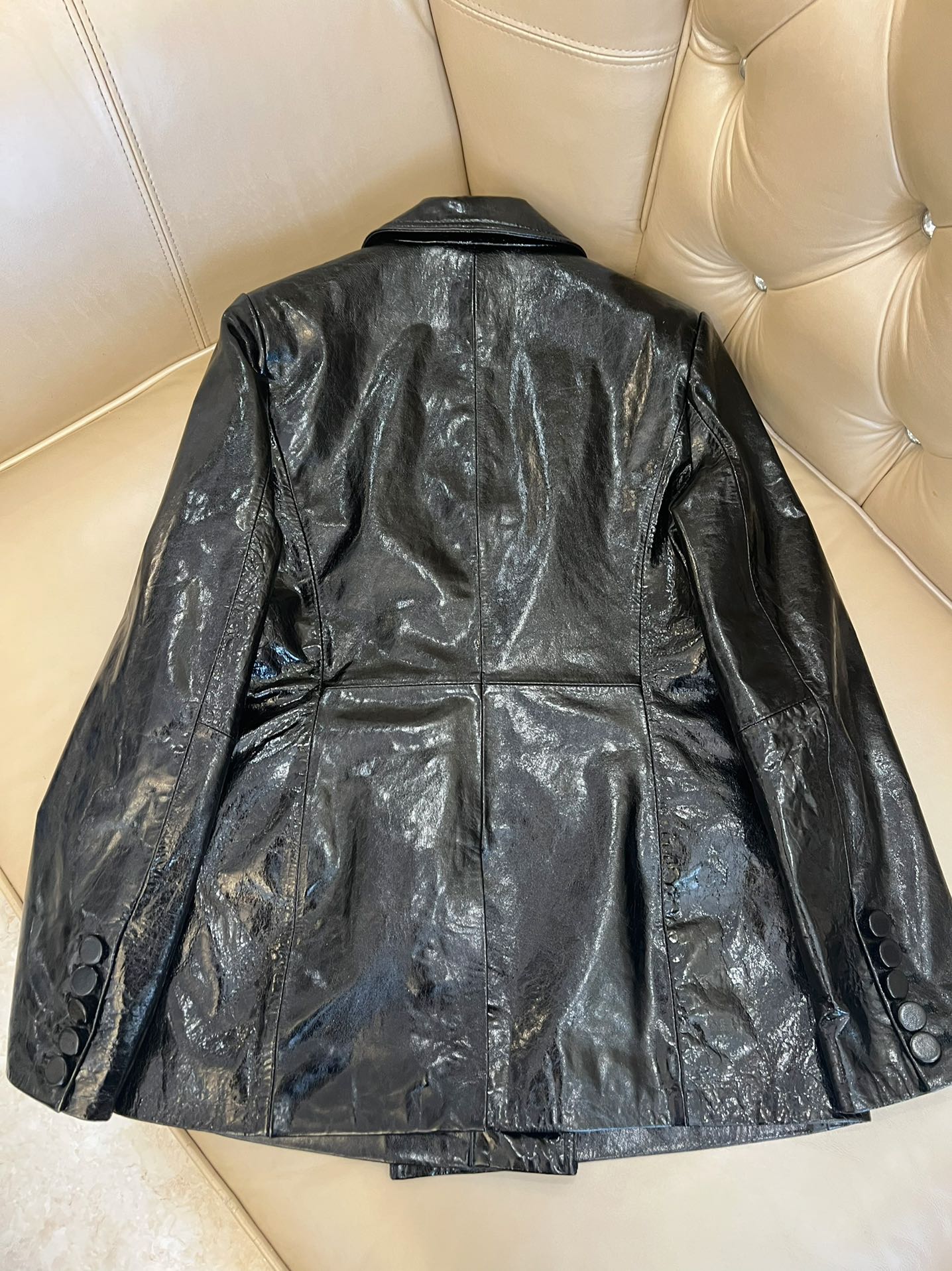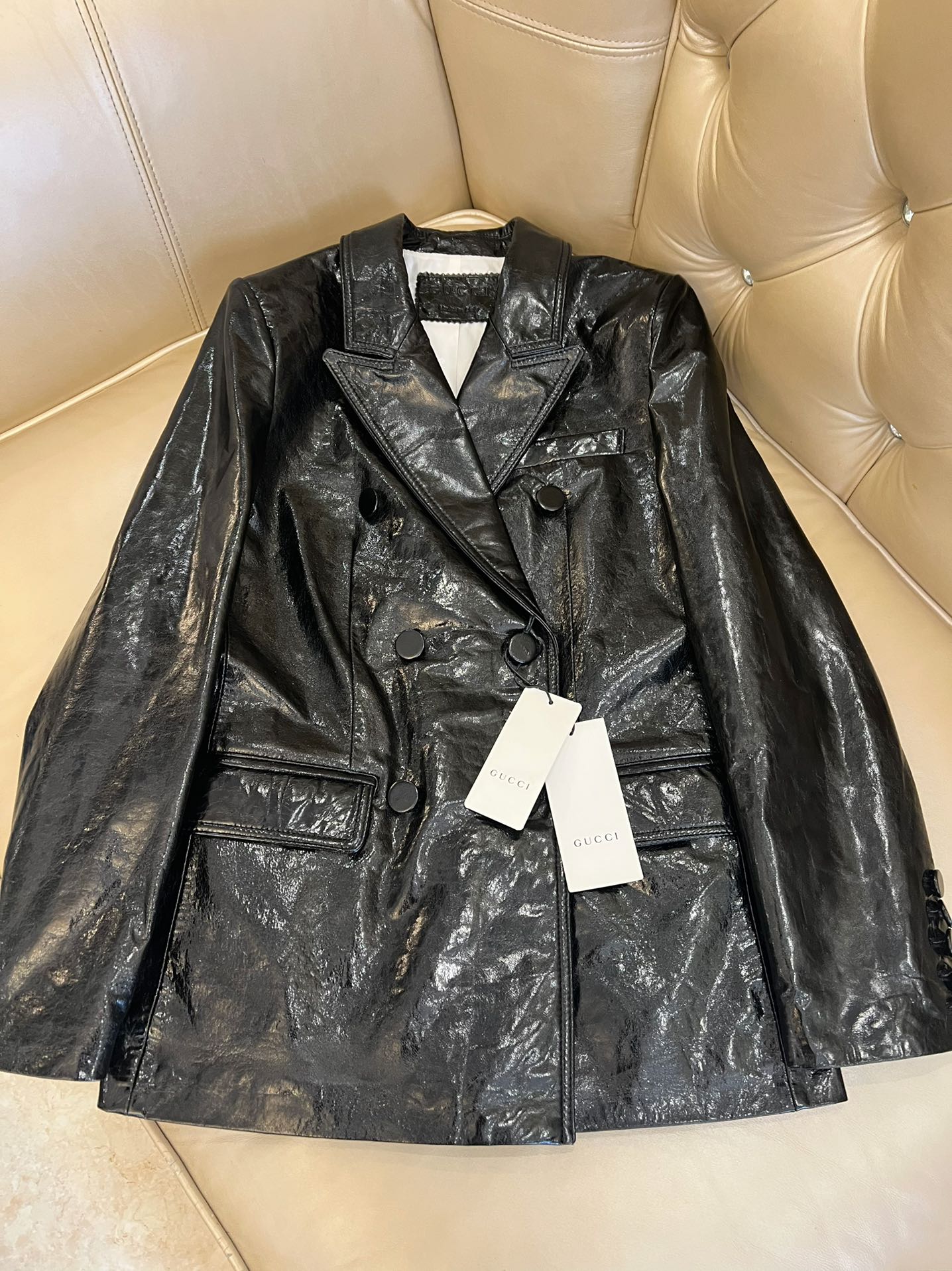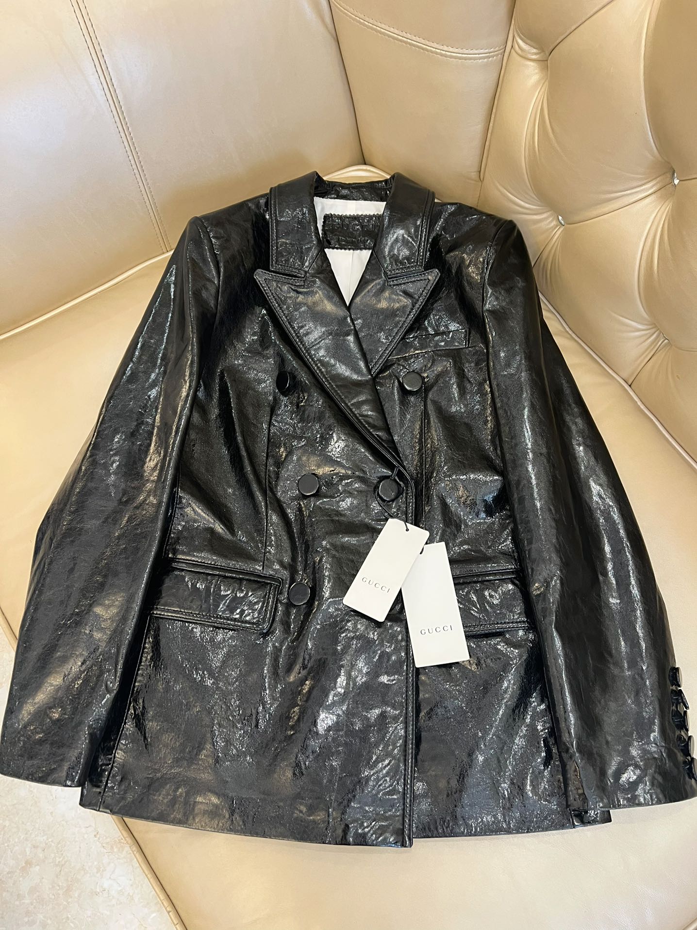 Details: Early Autumn Double-breasted Leather Suit, Imported Cowhide, Retro Style, High-end Customization