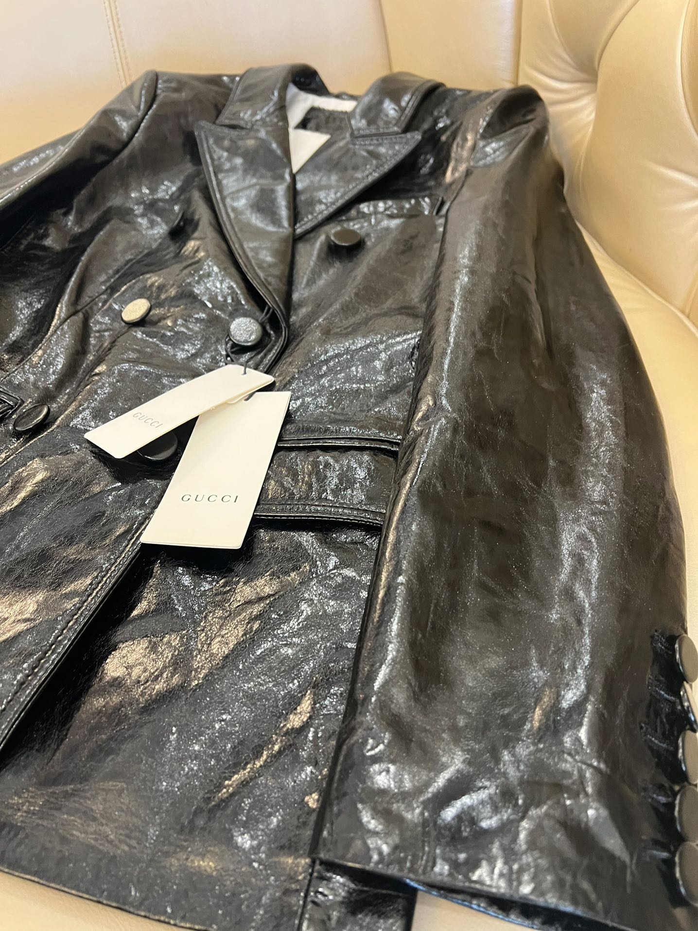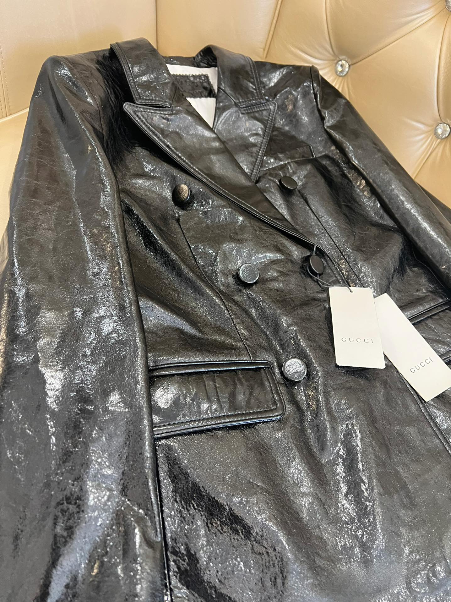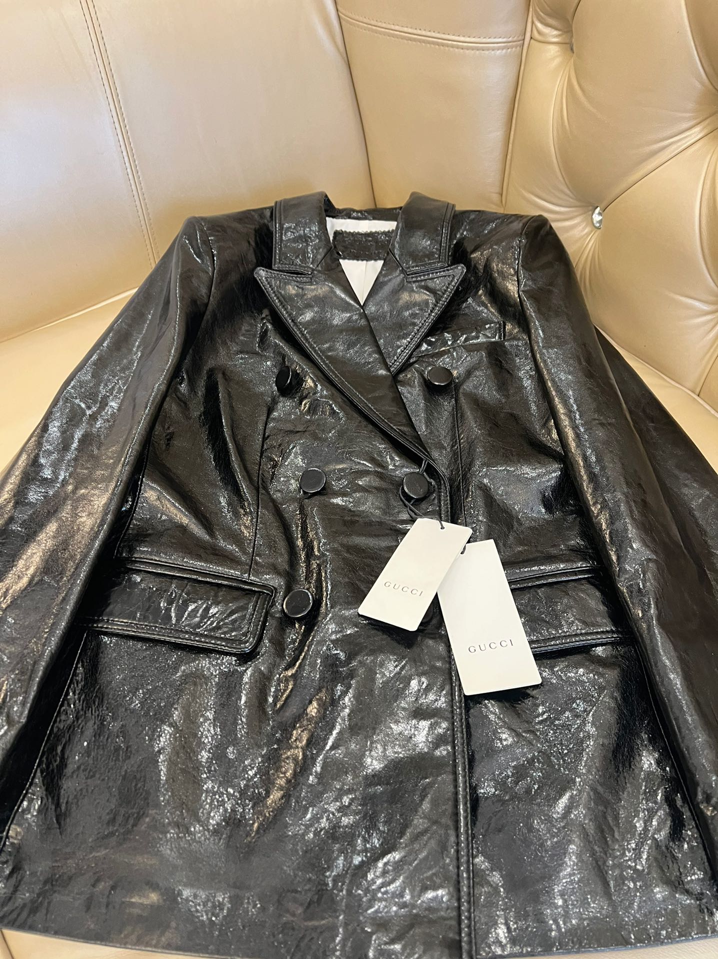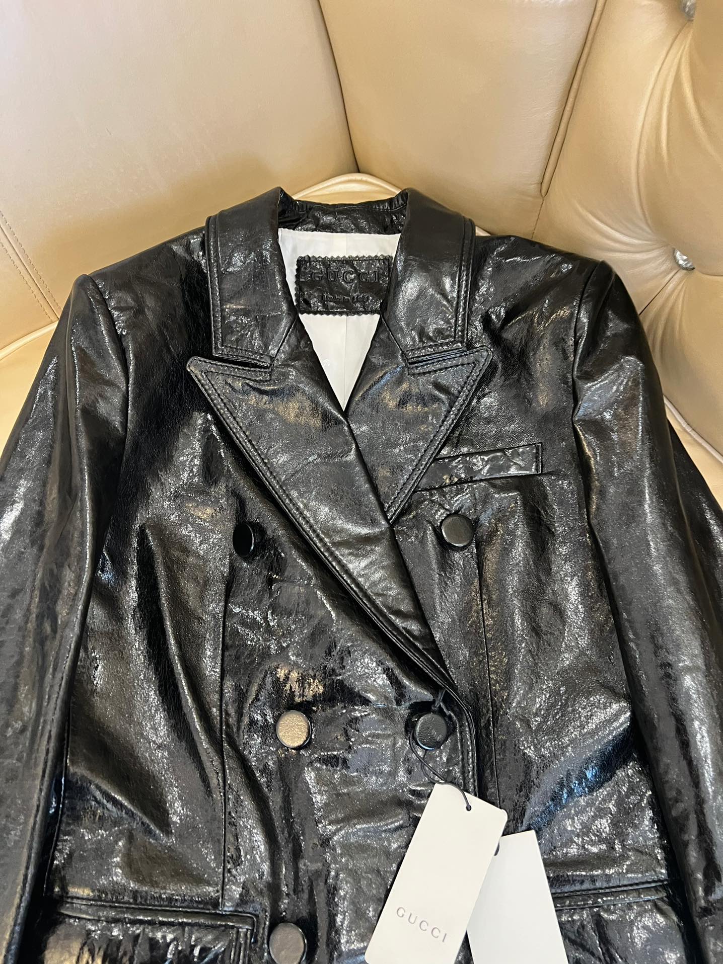 Details: Early Autumn Double-breasted Leather Suit, Imported Cowhide, Retro Style, High-end Customization