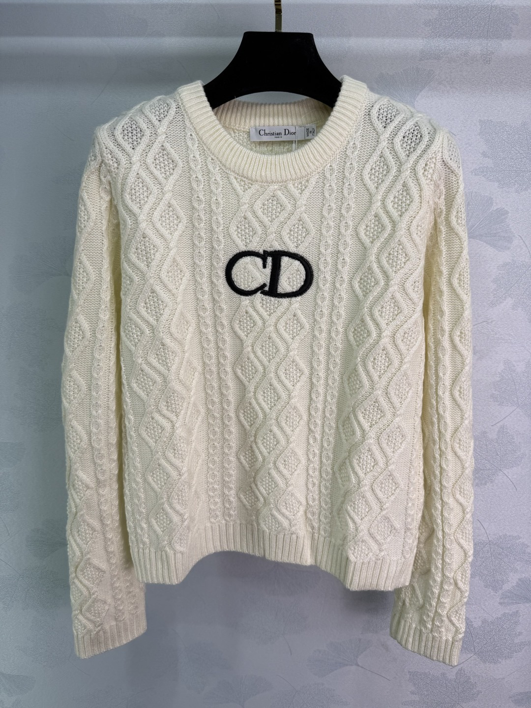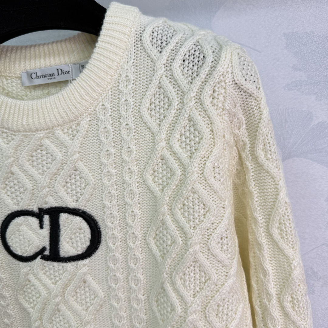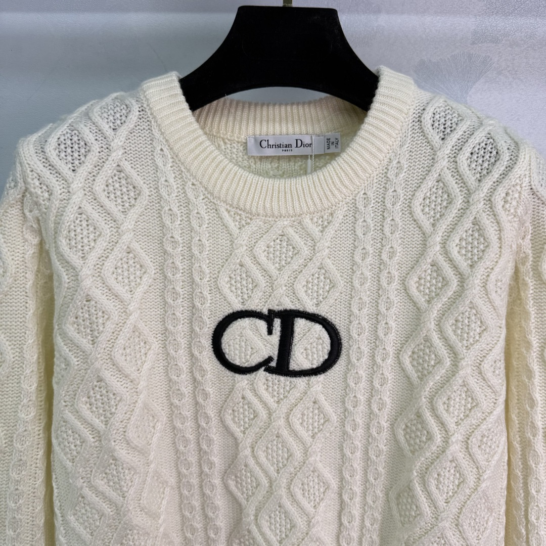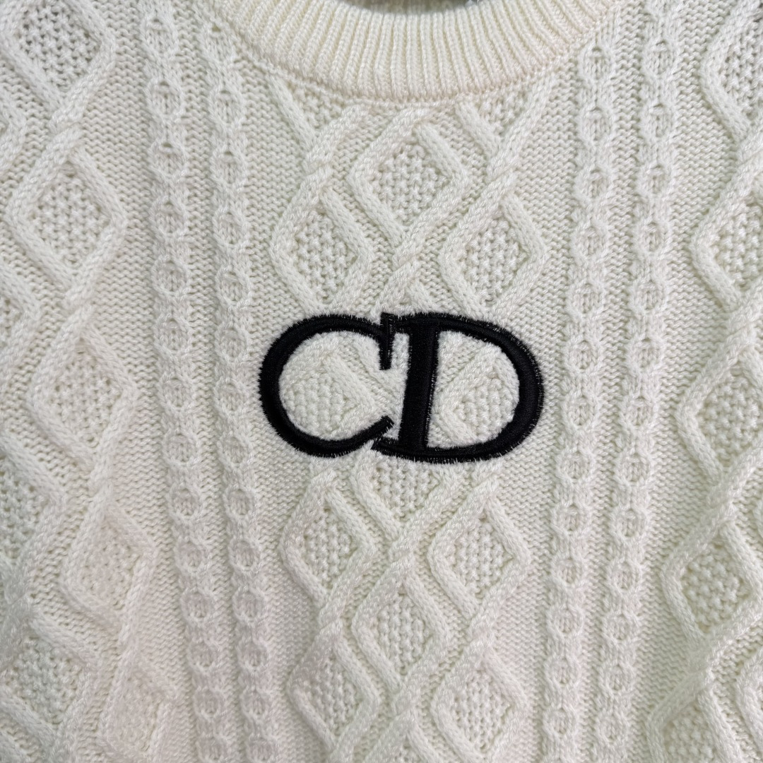 Details: Autumn Round neck diamond patterned knit sweater with CD logo, soft and breathable fabric, timeless and fashionable.