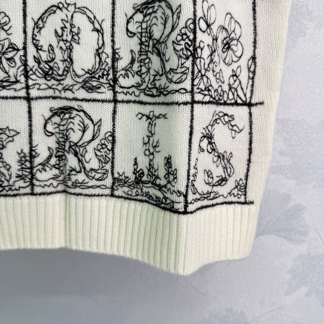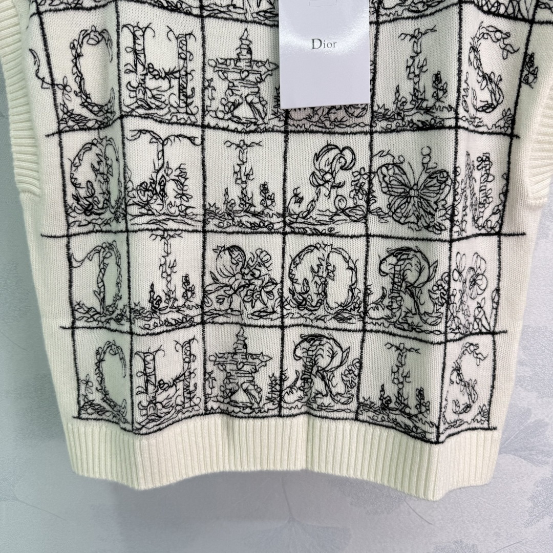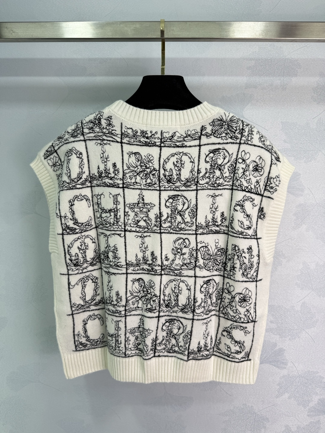 Details: Early Spring Checkered Embroidered Knit Vest, Imported Wool, Elegant White and Black Design, Perfect for Layering