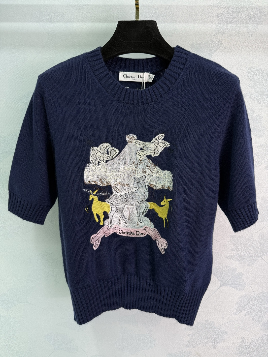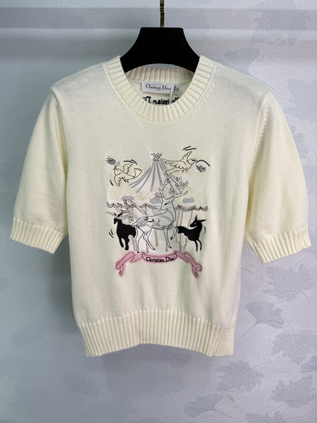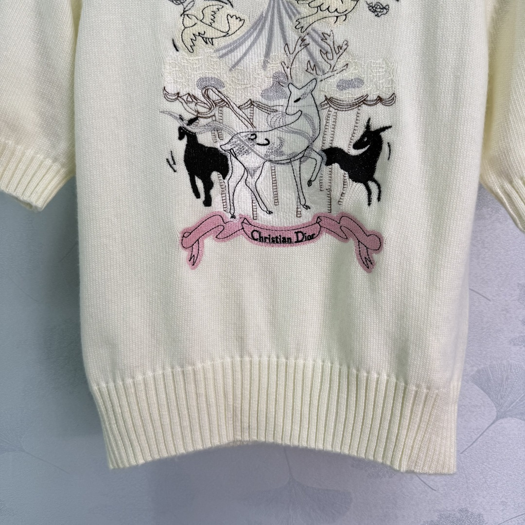 Details: Early Autumn Knit Short Sleeve with Embroidered Animal Motif, High-Quality Blend, Timeless and Versatile