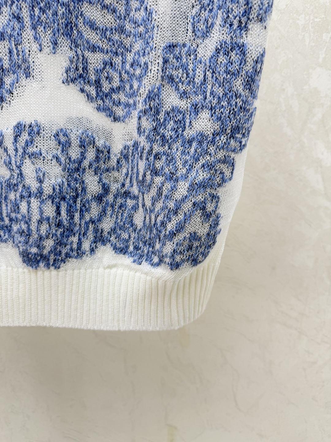 Details: Early spring new style, color-blocked butterfly jacquard round-neck knitted short-sleeved shirt in white, pink, and sapphire blue, available in sizes 36, 38, 40.