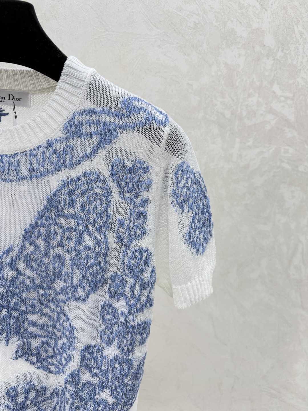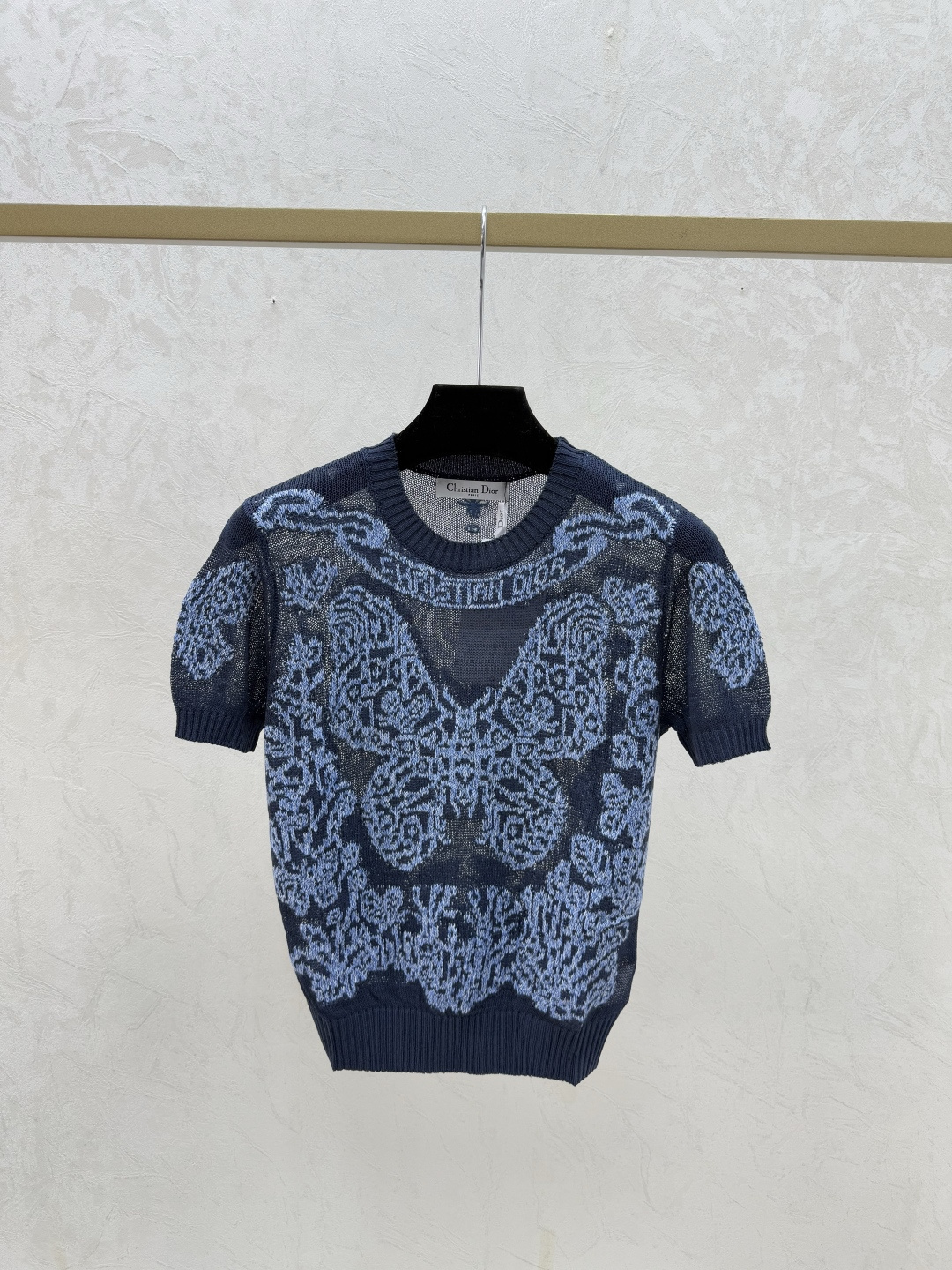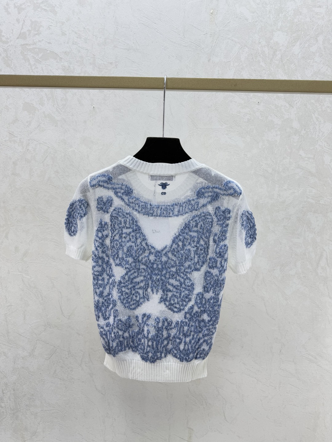 Dior Round Neck Knit Short Sleeve with Butterfly Embroidery