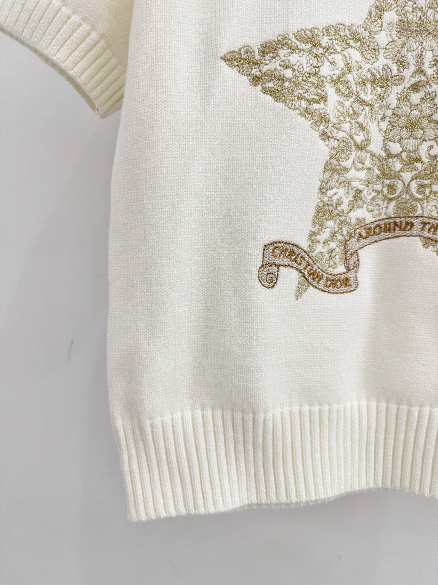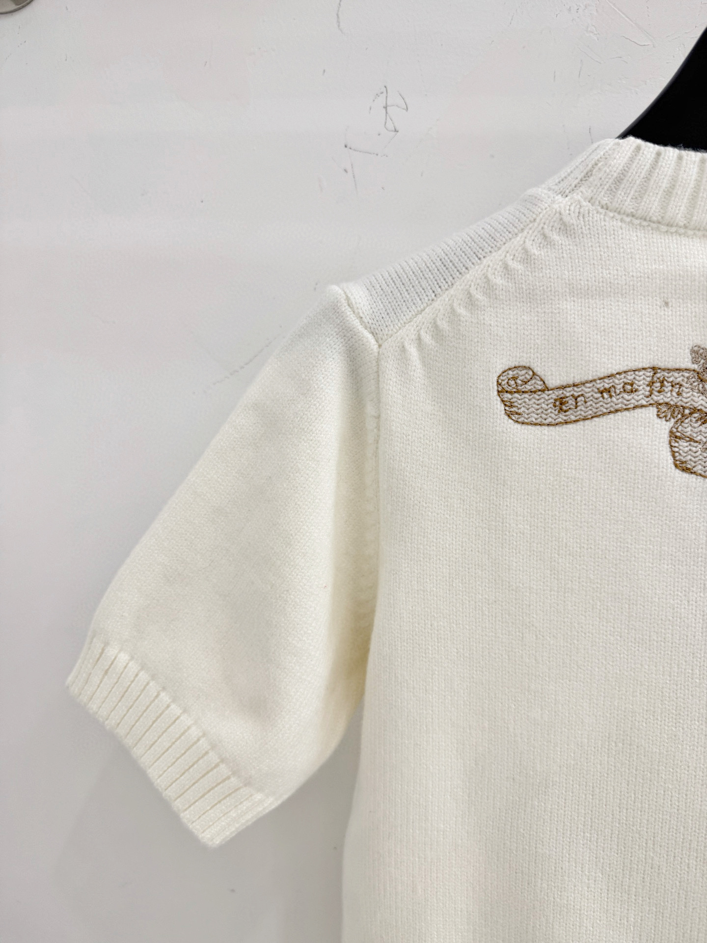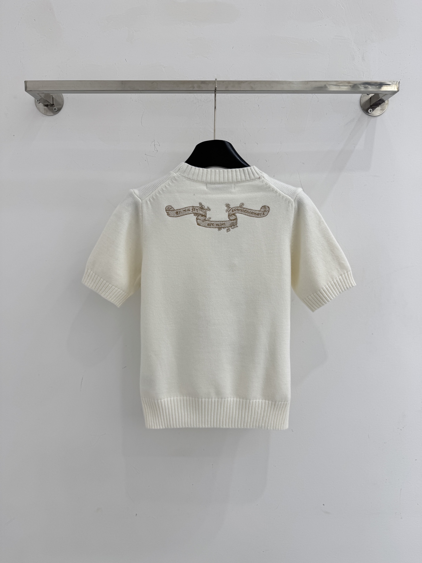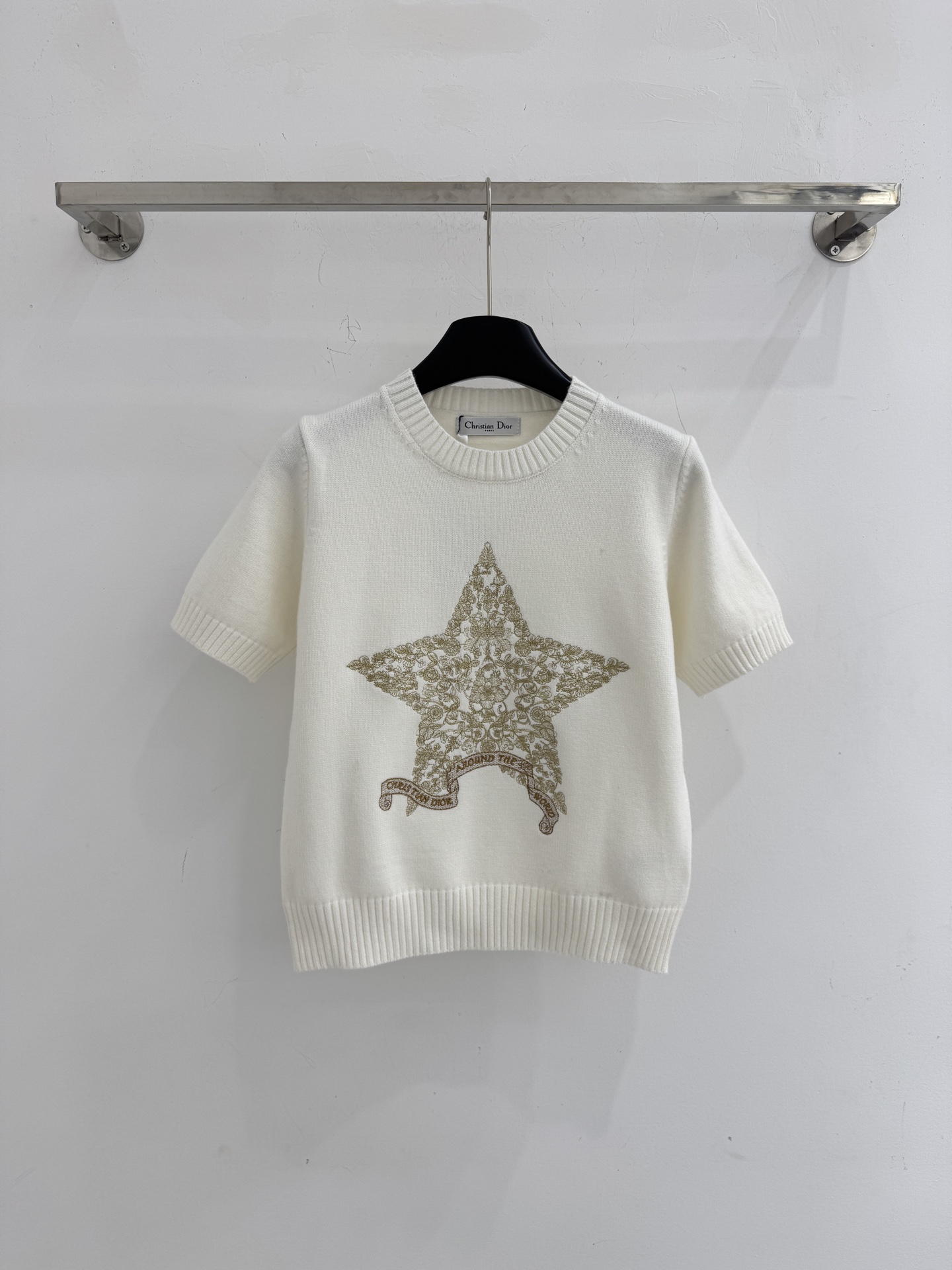 Details: Spring-summer short-sleeved top with a round neck, star embroidery, and back details, with high customization and fine workmanship