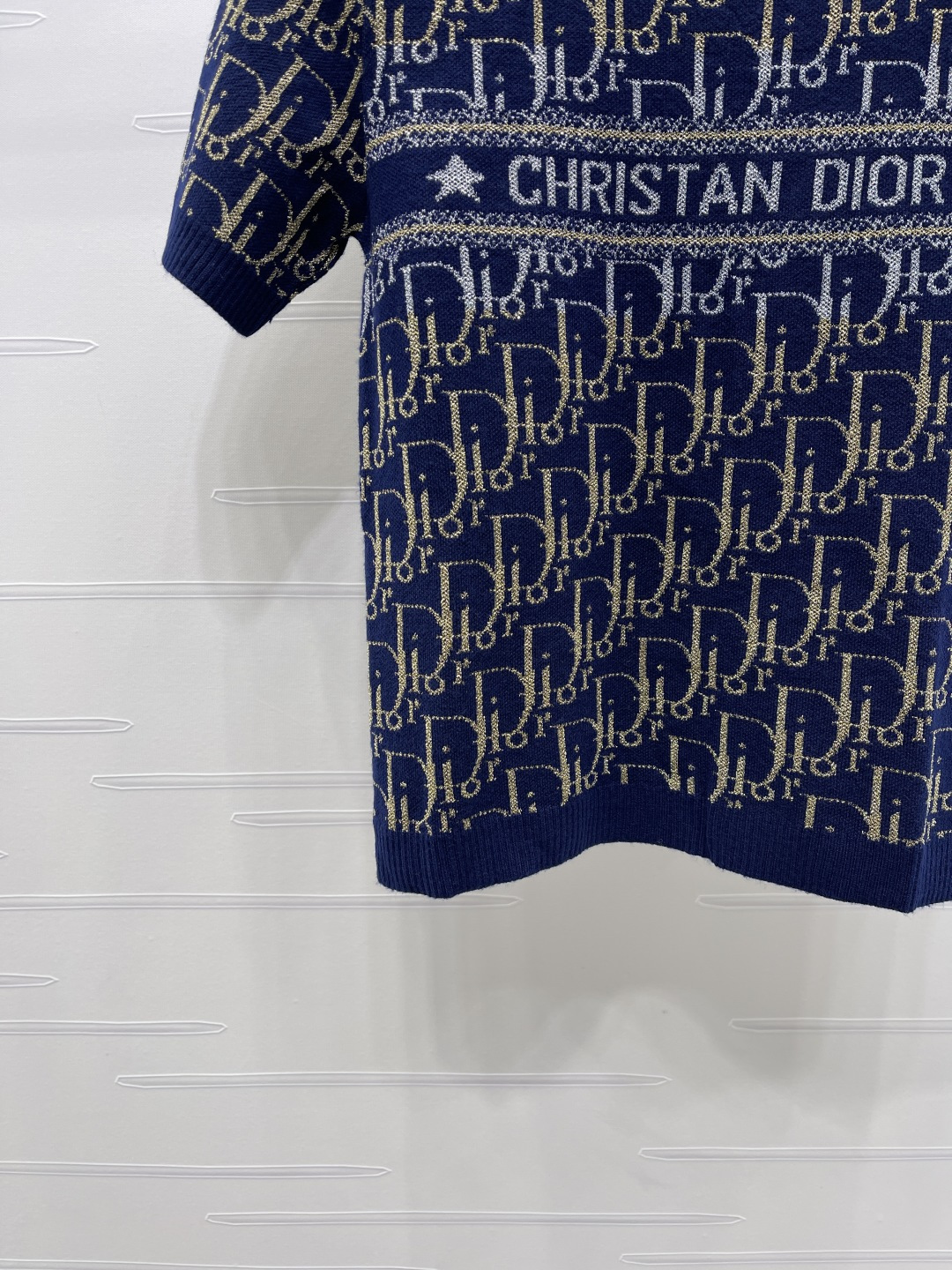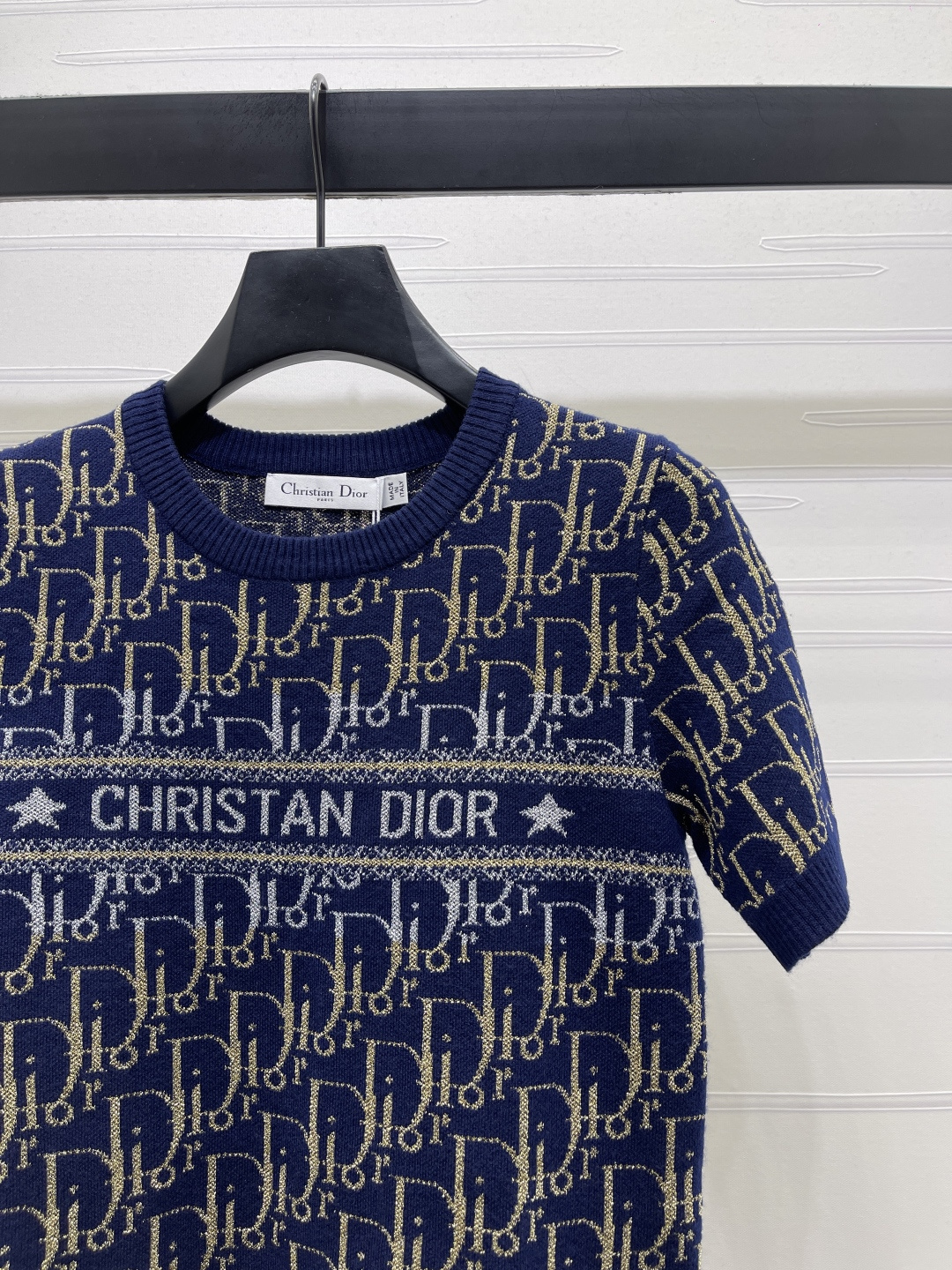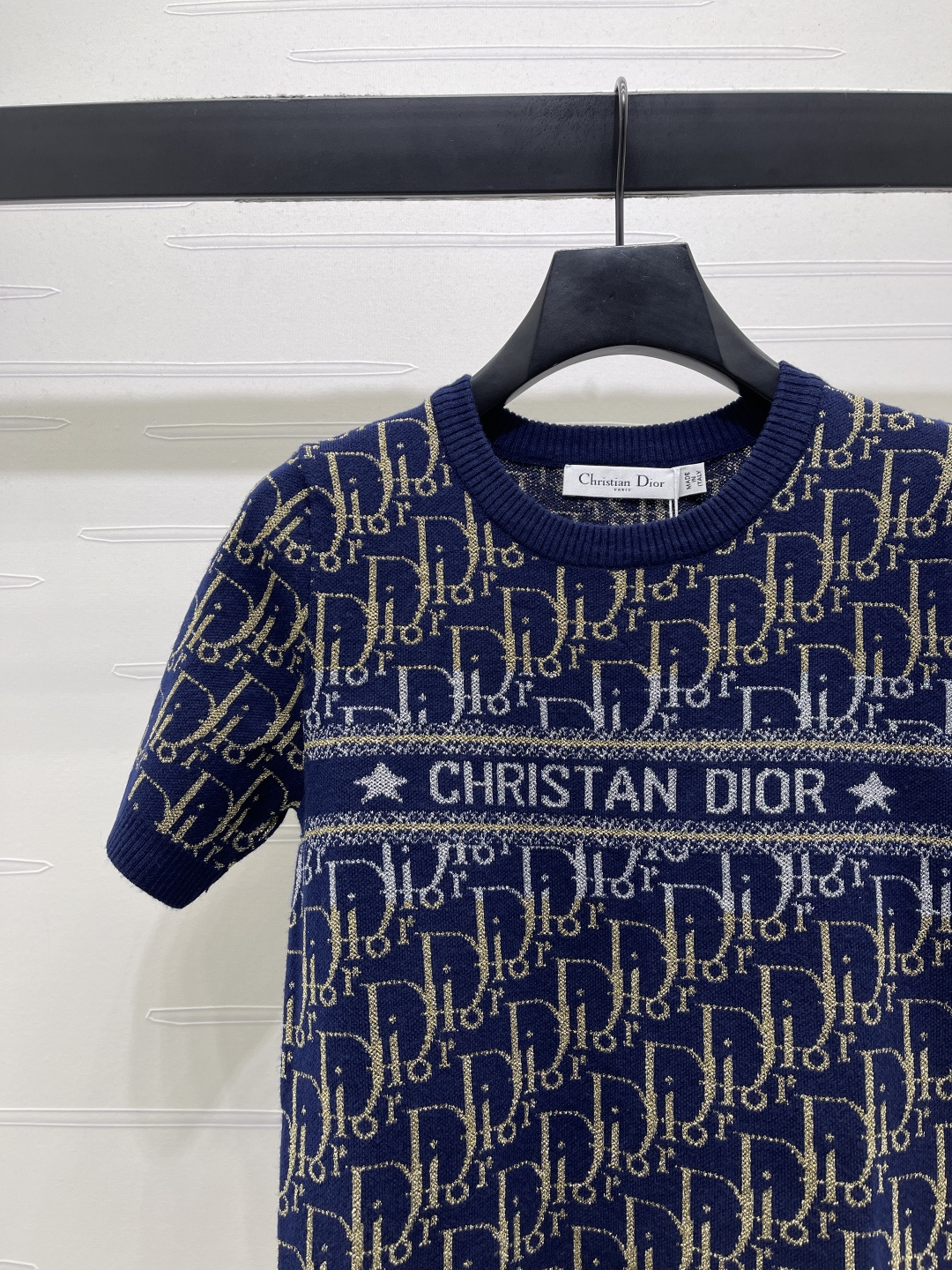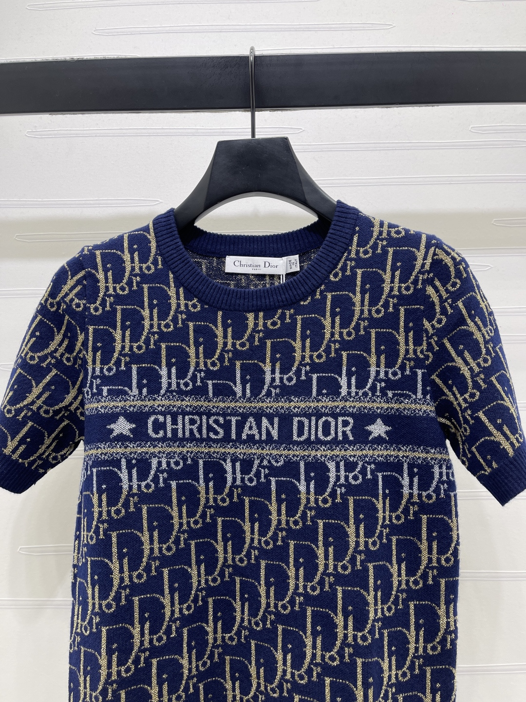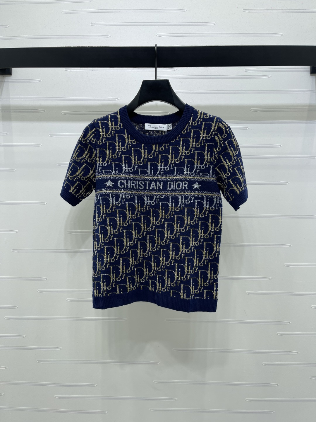 Details: Early spring new release: Contrast gold thread old flower logo knit short-sleeve, premium imported wool blend, timeless design.