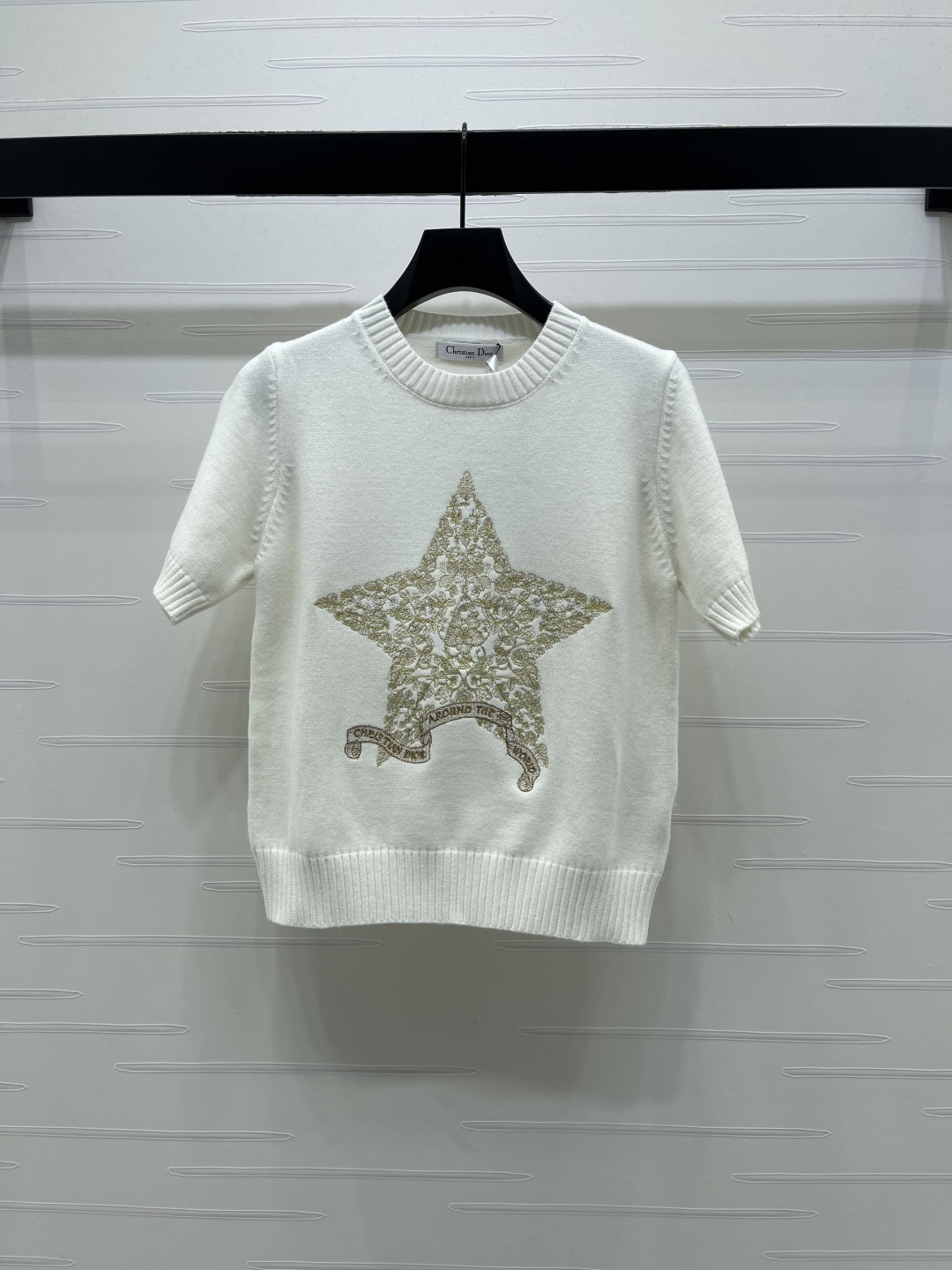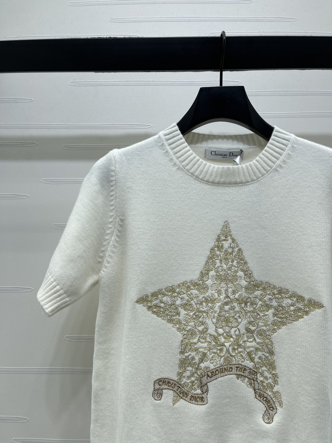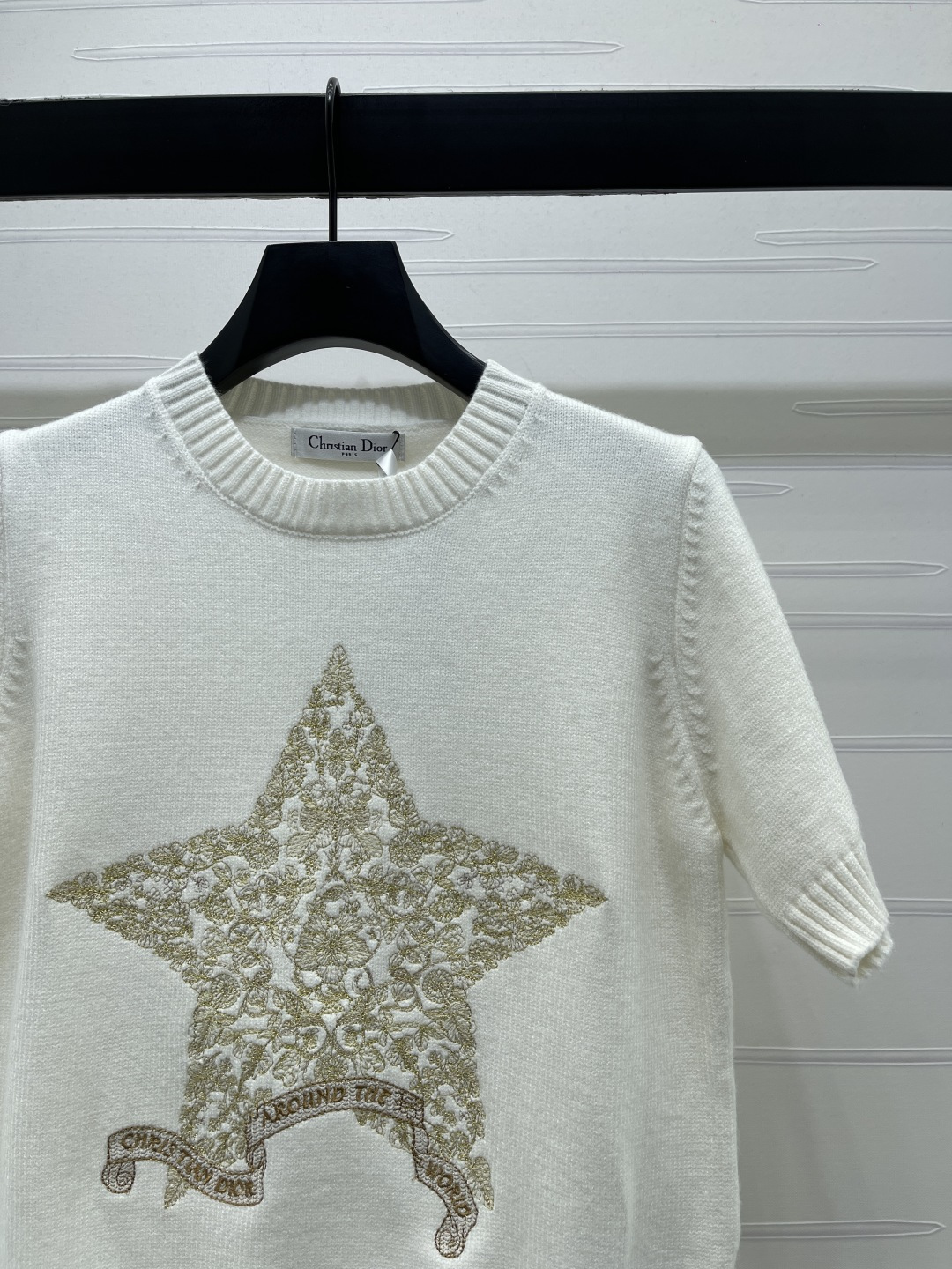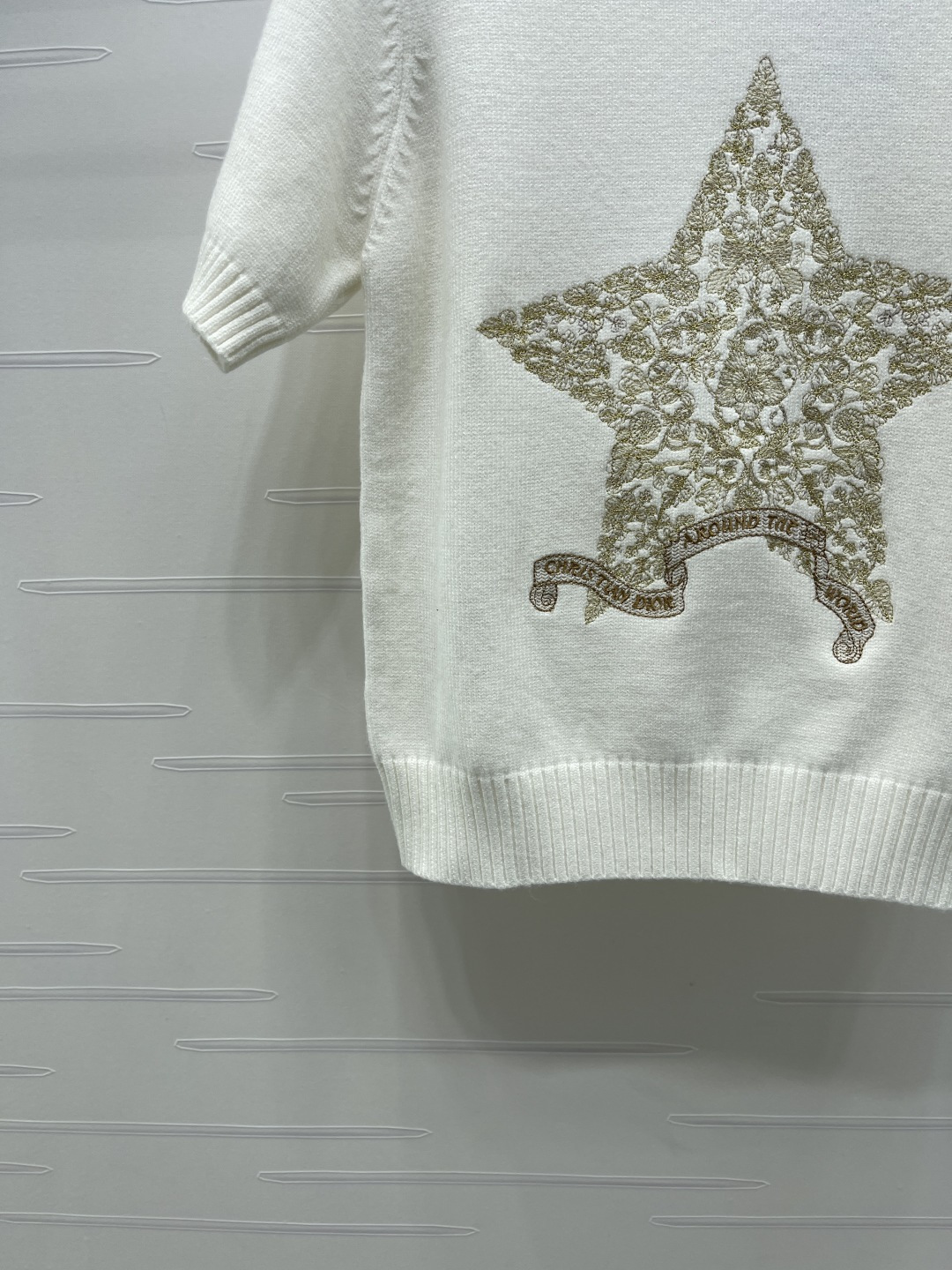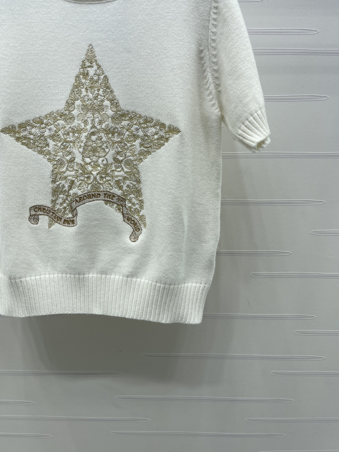 Details: Premium Knitted Short Sleeve with Star Embroidery, Made of High-quality Wool Yarn, Elegant and Versatile for Autumn and Winter