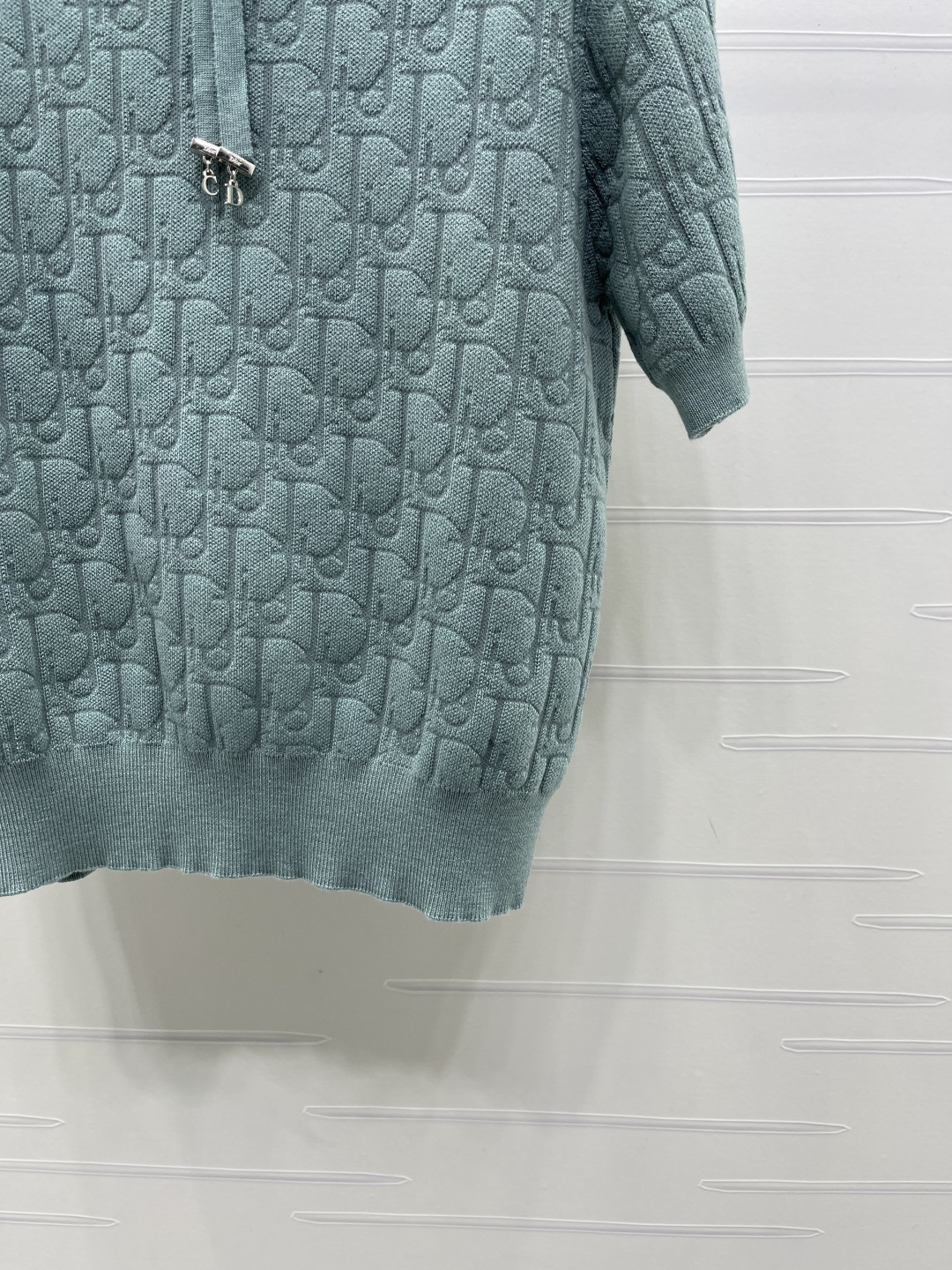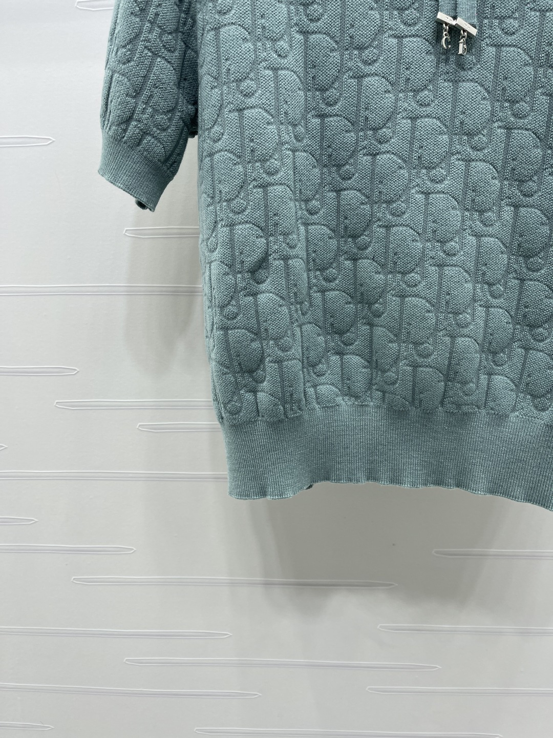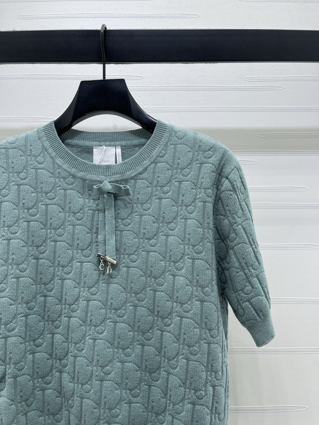 Details: Spring knitted short-sleeved top with jacquard pattern, bowtie, and three colors. High-end custom, fine workmanship