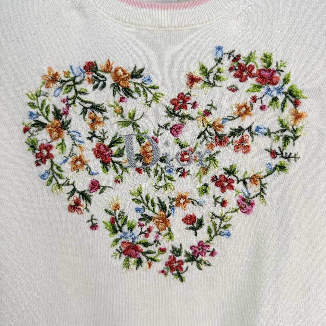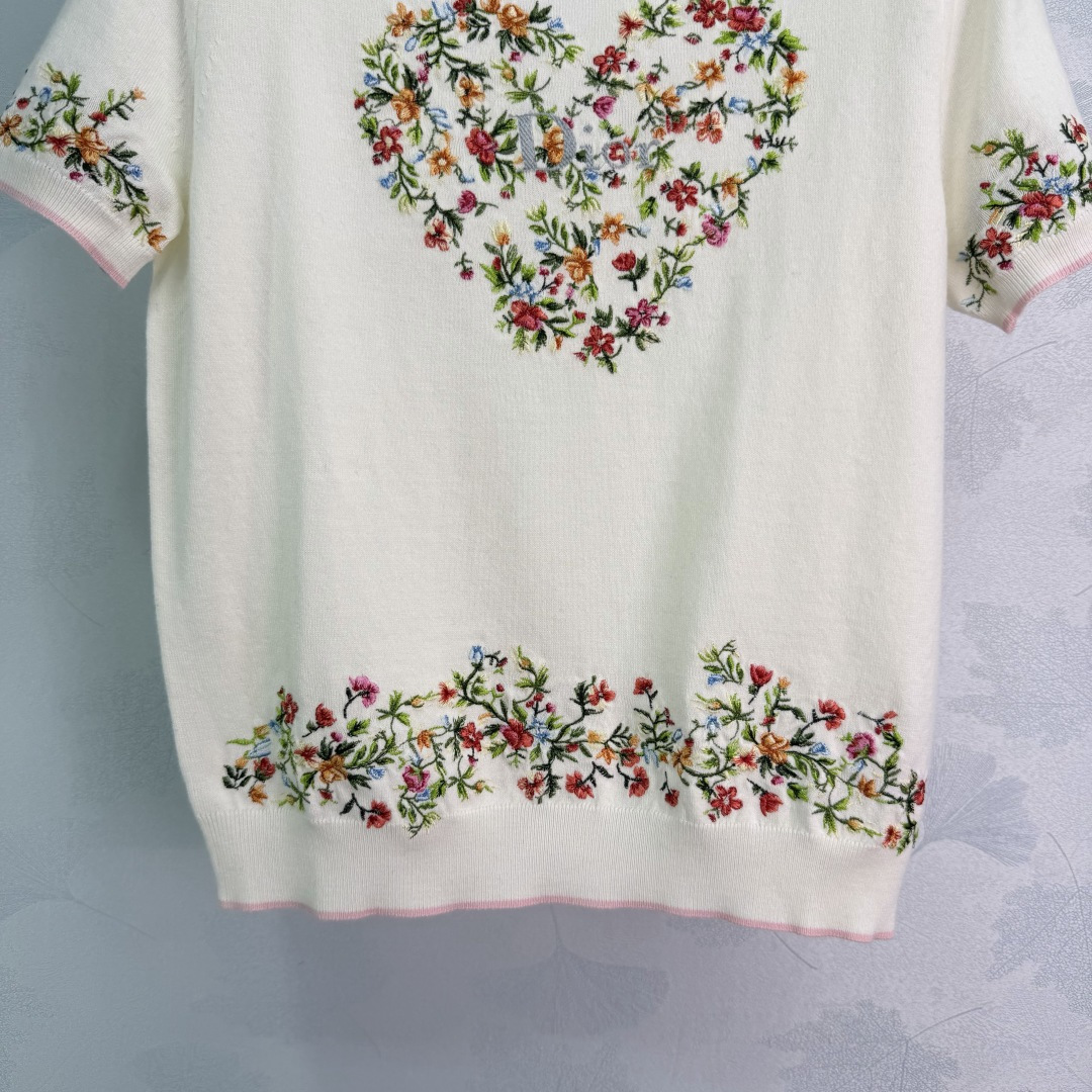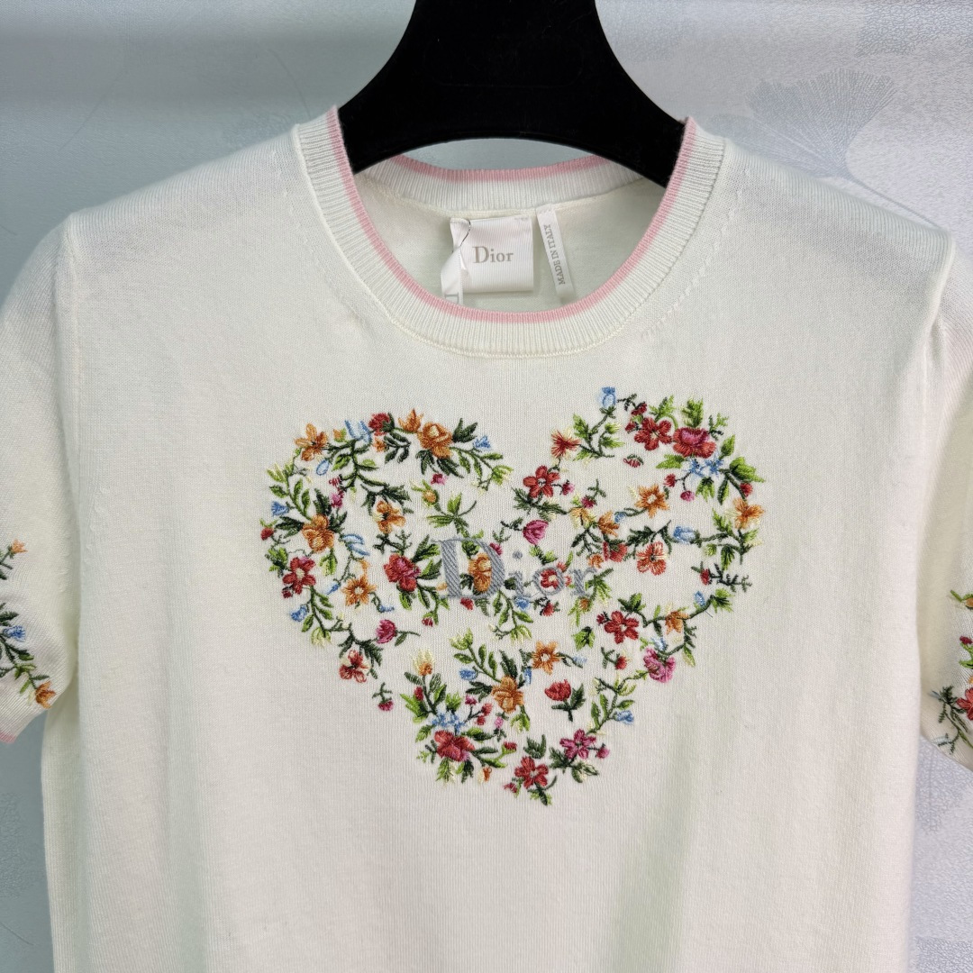 Details: Early spring short-sleeved knitwear, wool material, soft and warm, heart-shaped floral embroidery on chest, suitable for daily or formal occasions.