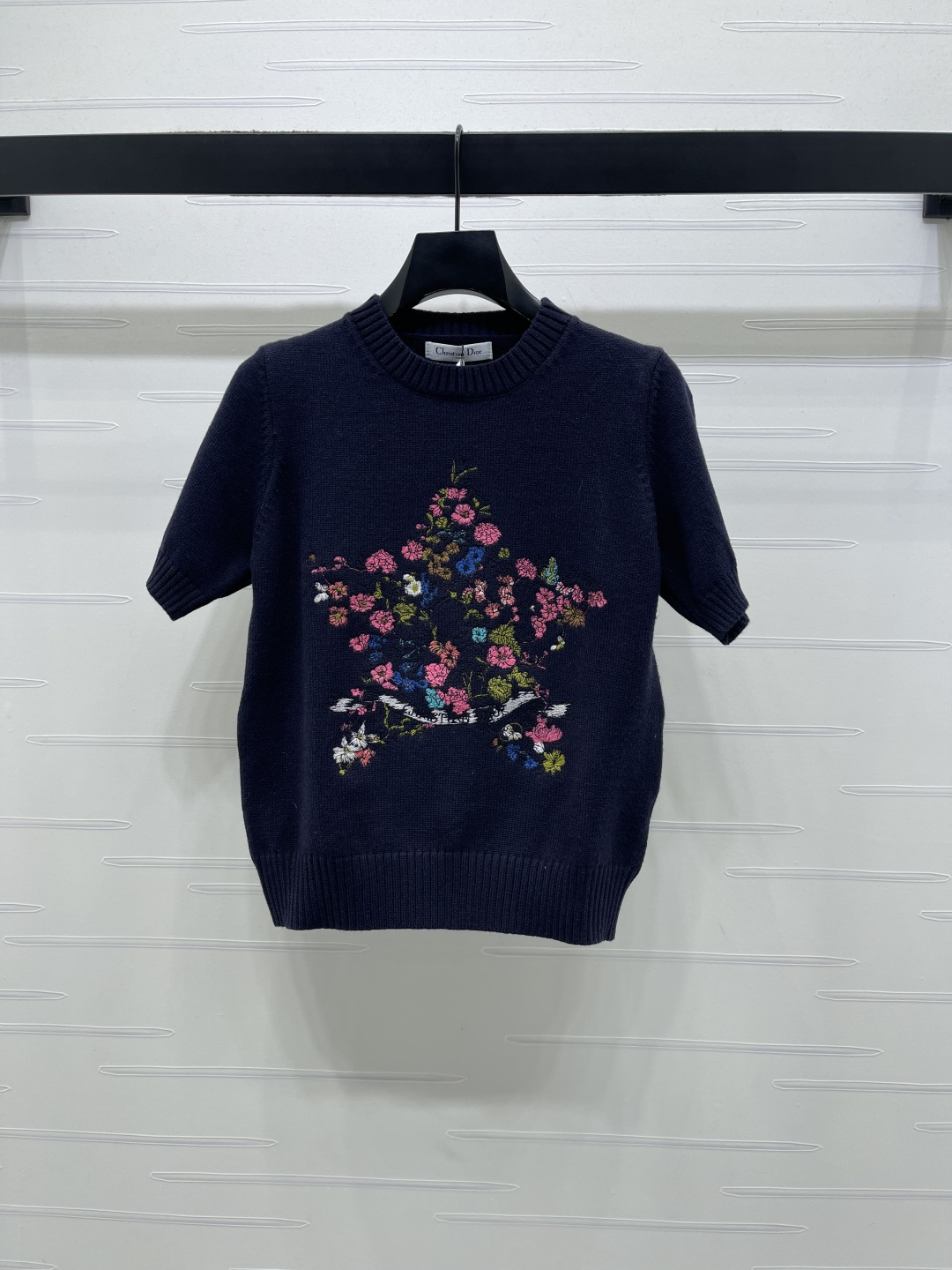 Details: Early Spring Knit Short Sleeve with Star Embroidery, 3 Colors, 3 Sizes. High - end Custom, Fine Workmanship