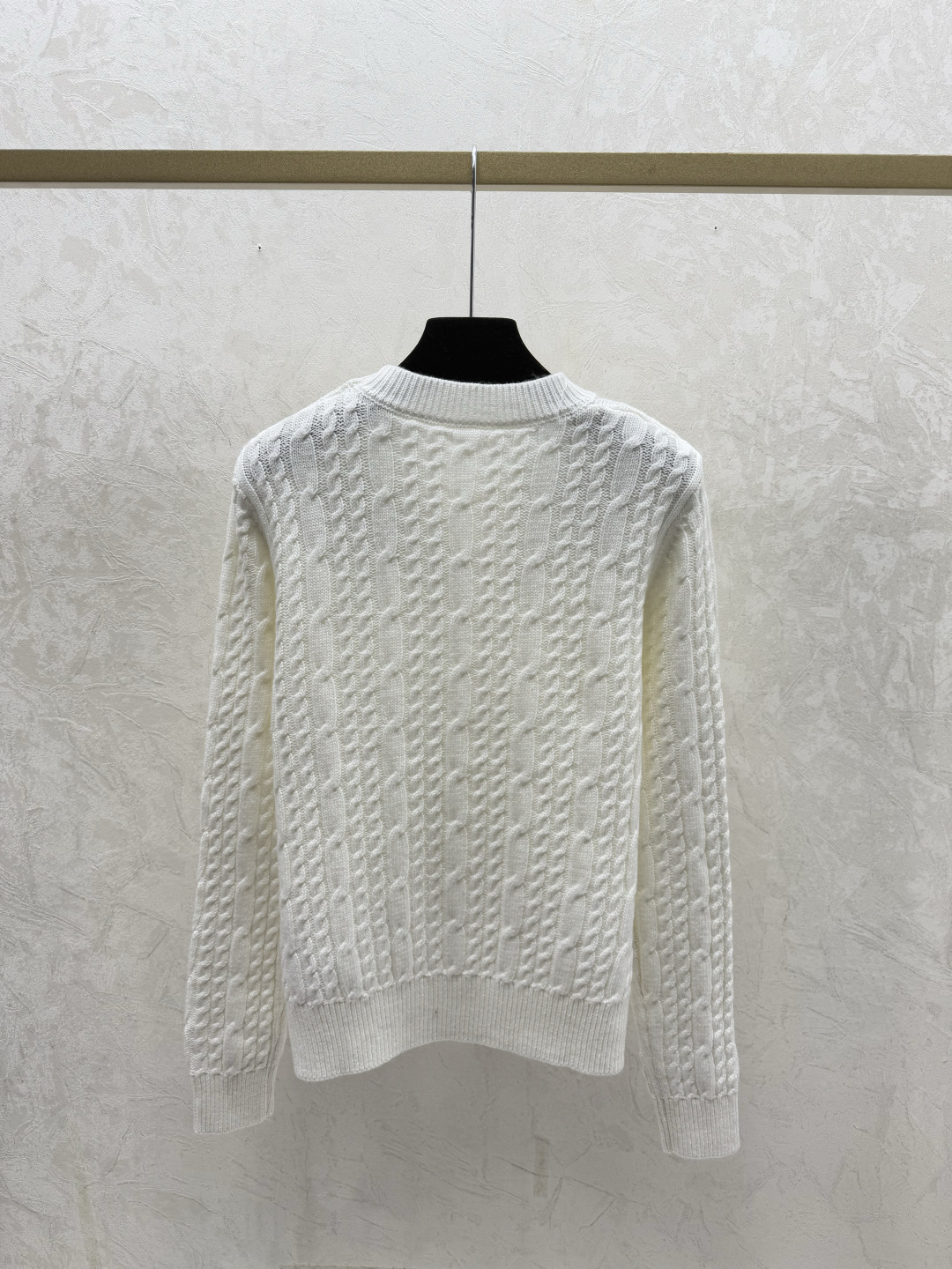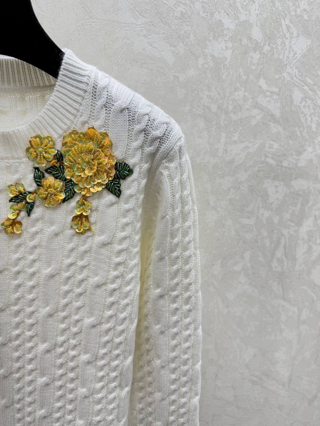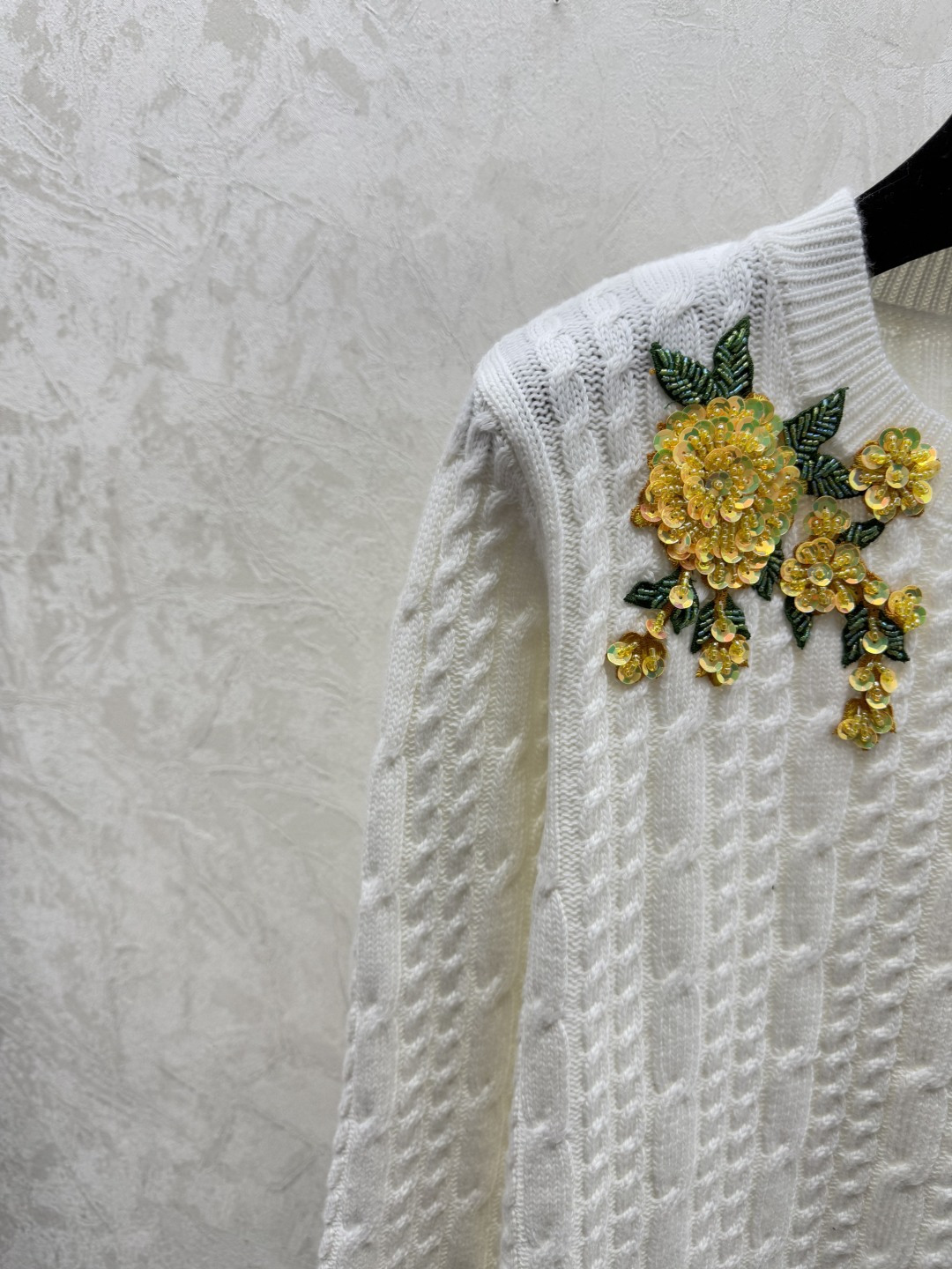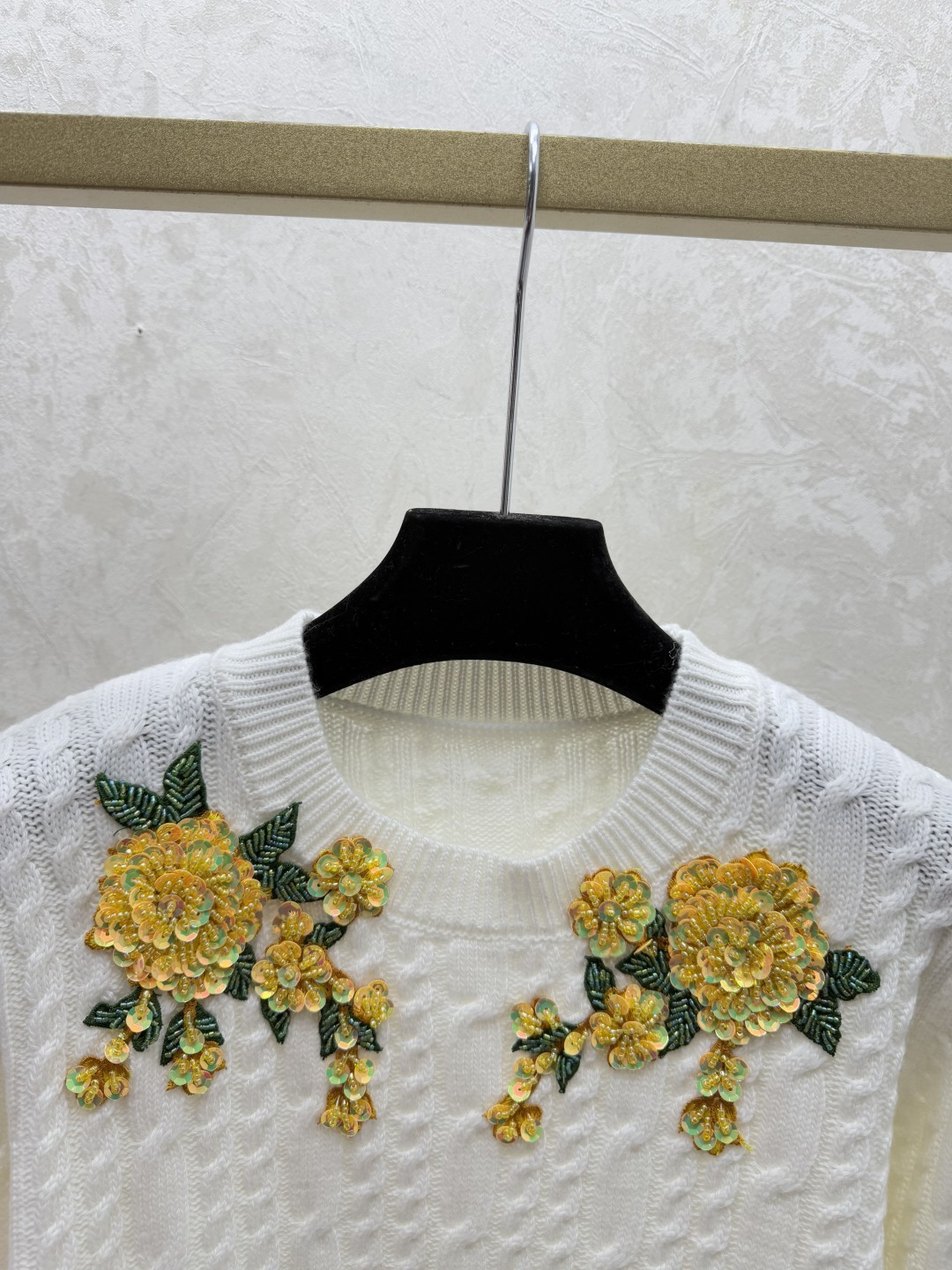 Details: Autumn new color-blocked floral studded round-neck knitted long-sleeve, white, size 36/38/40. Premium customization, fine workmanship