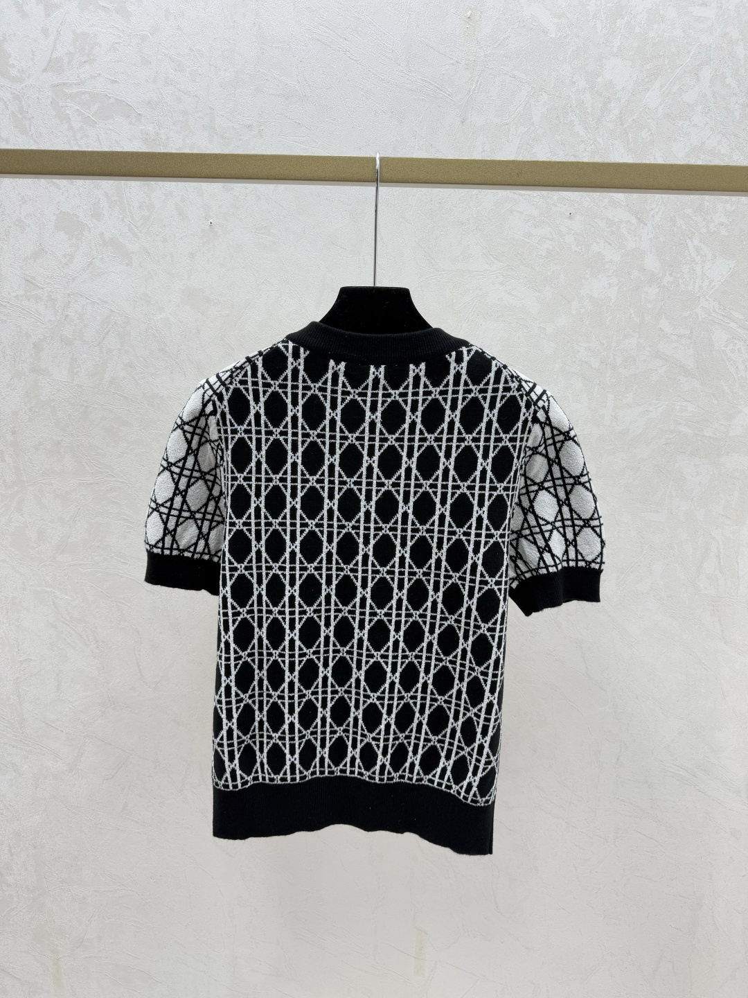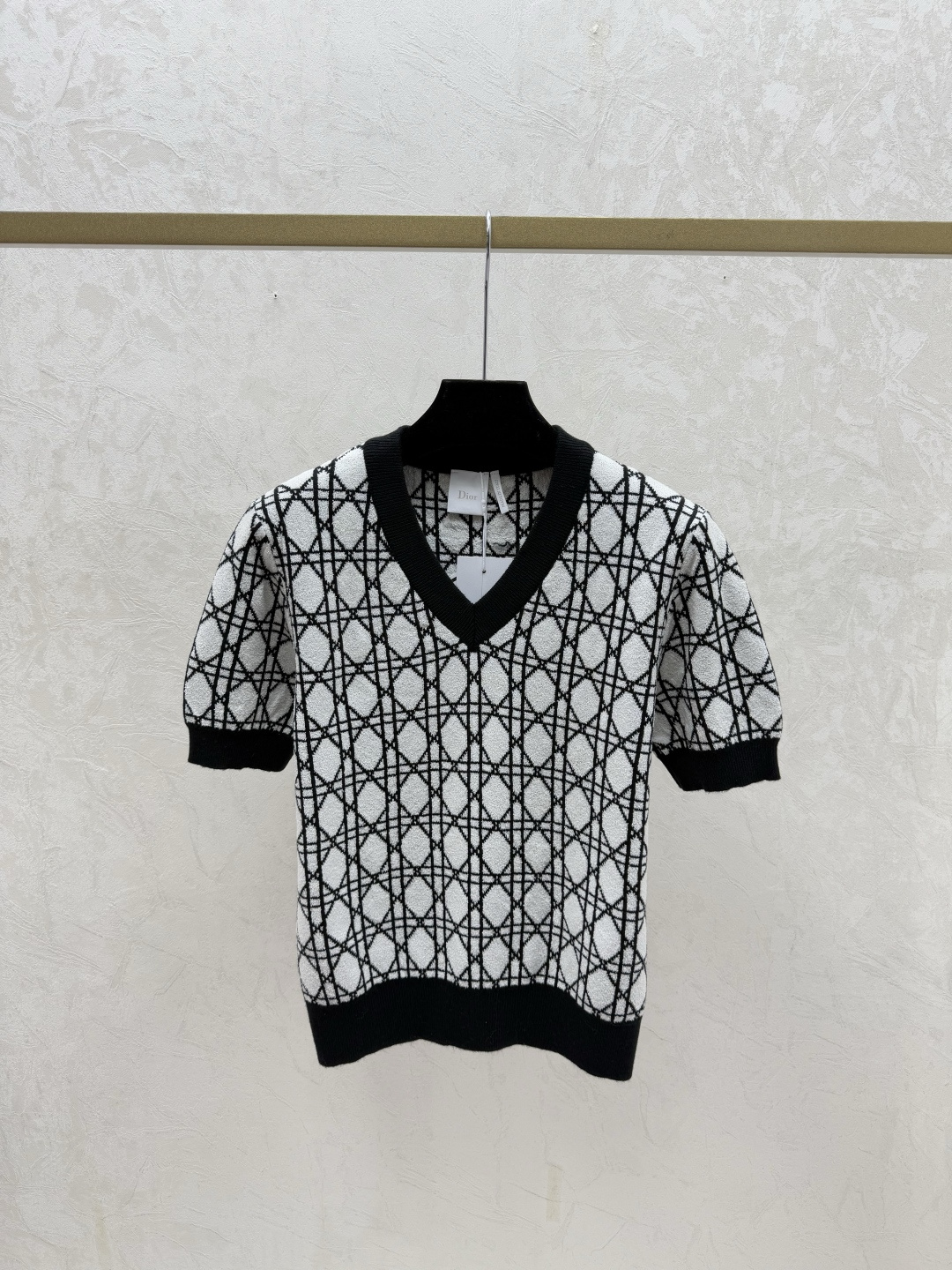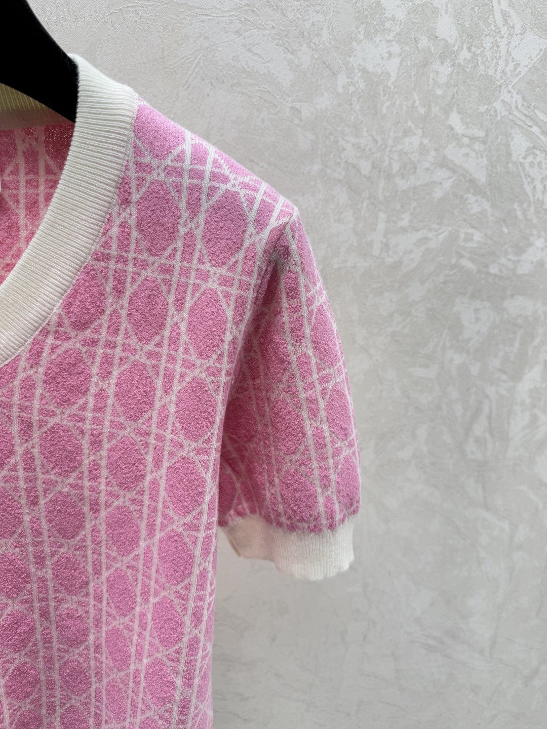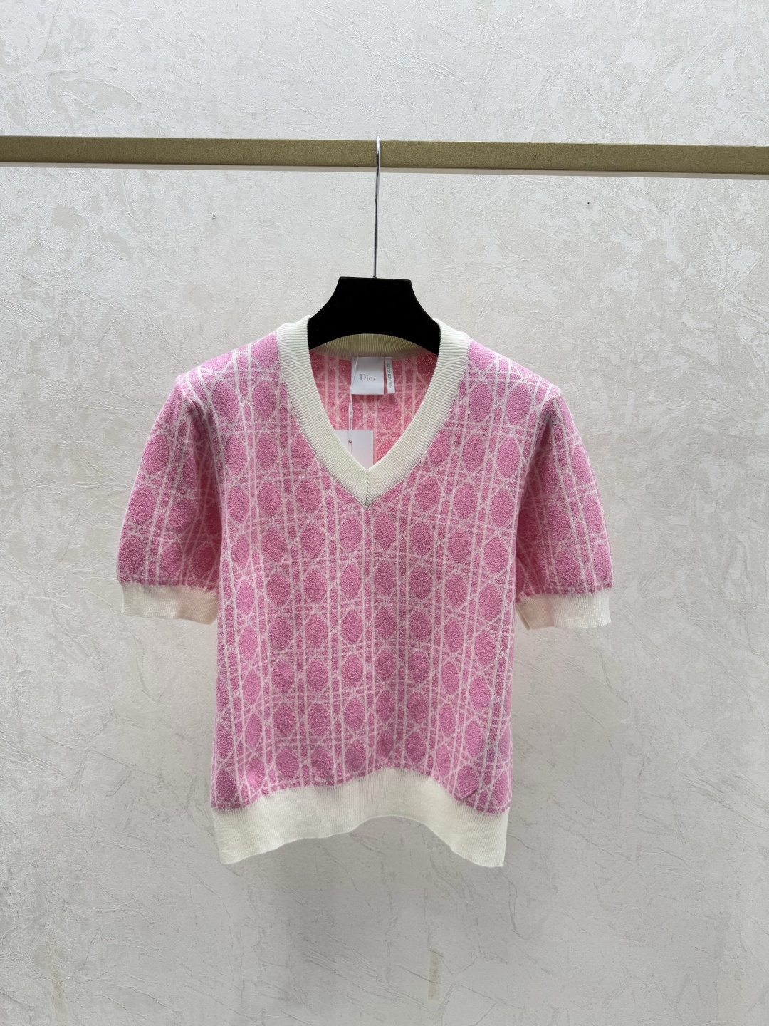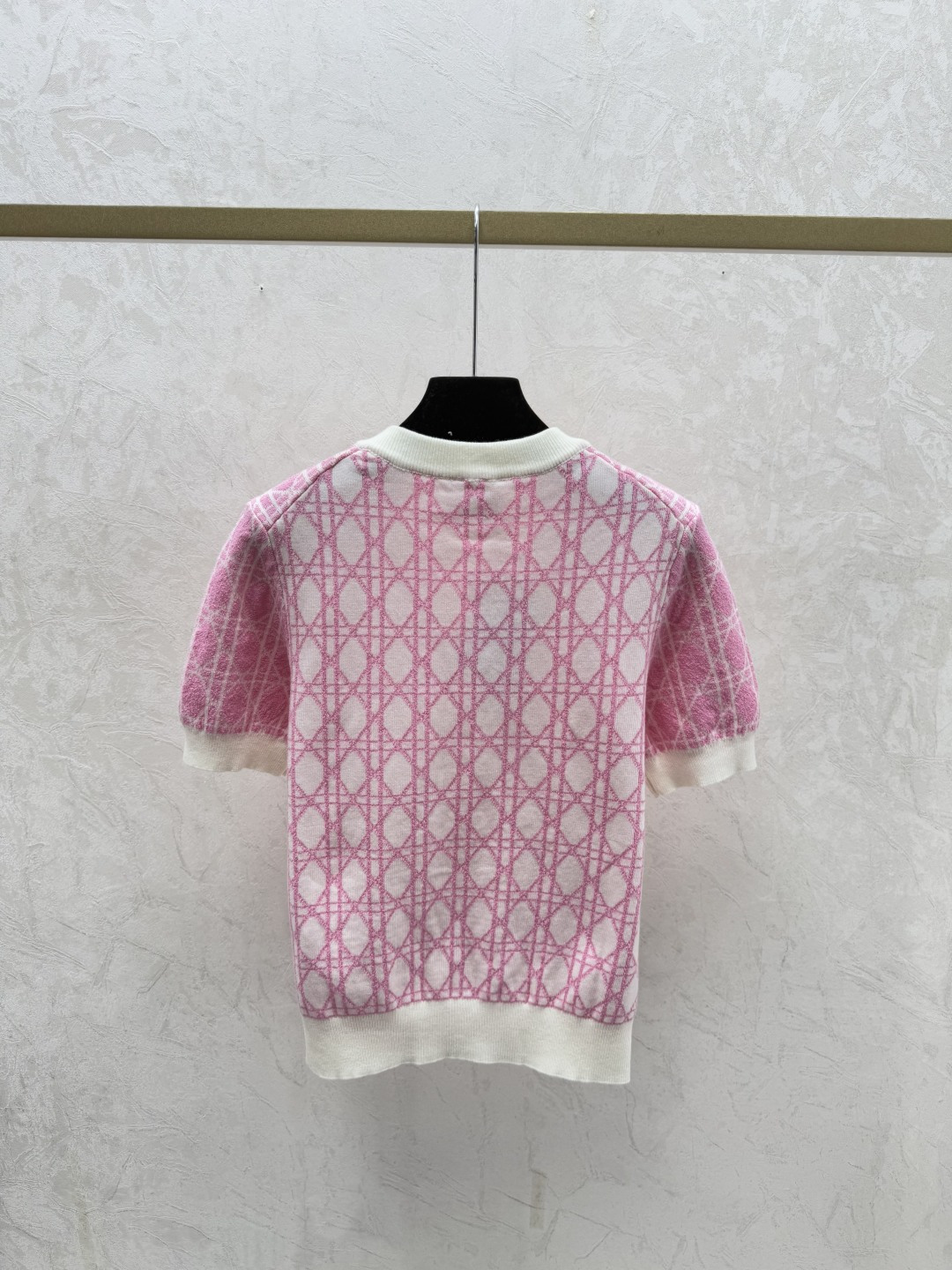 Dior Contrasting Pink and Black Diamond V Neck Knit Short Sleeve