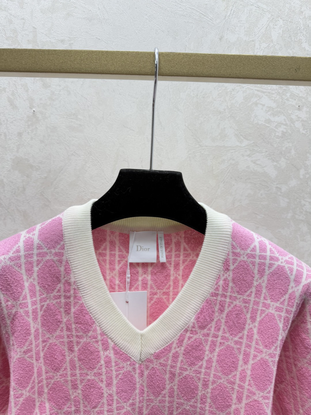 here:home > WOMENS > Christian Dior > Pullover Dior (W) > Dior Contrasting Pink and Black Diamond V Neck Knit Short Sleeve