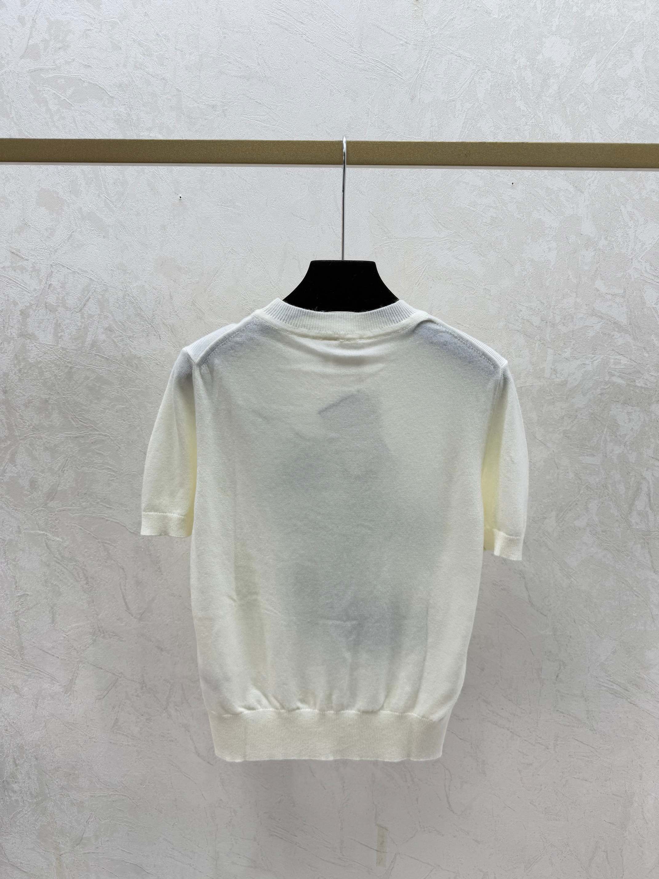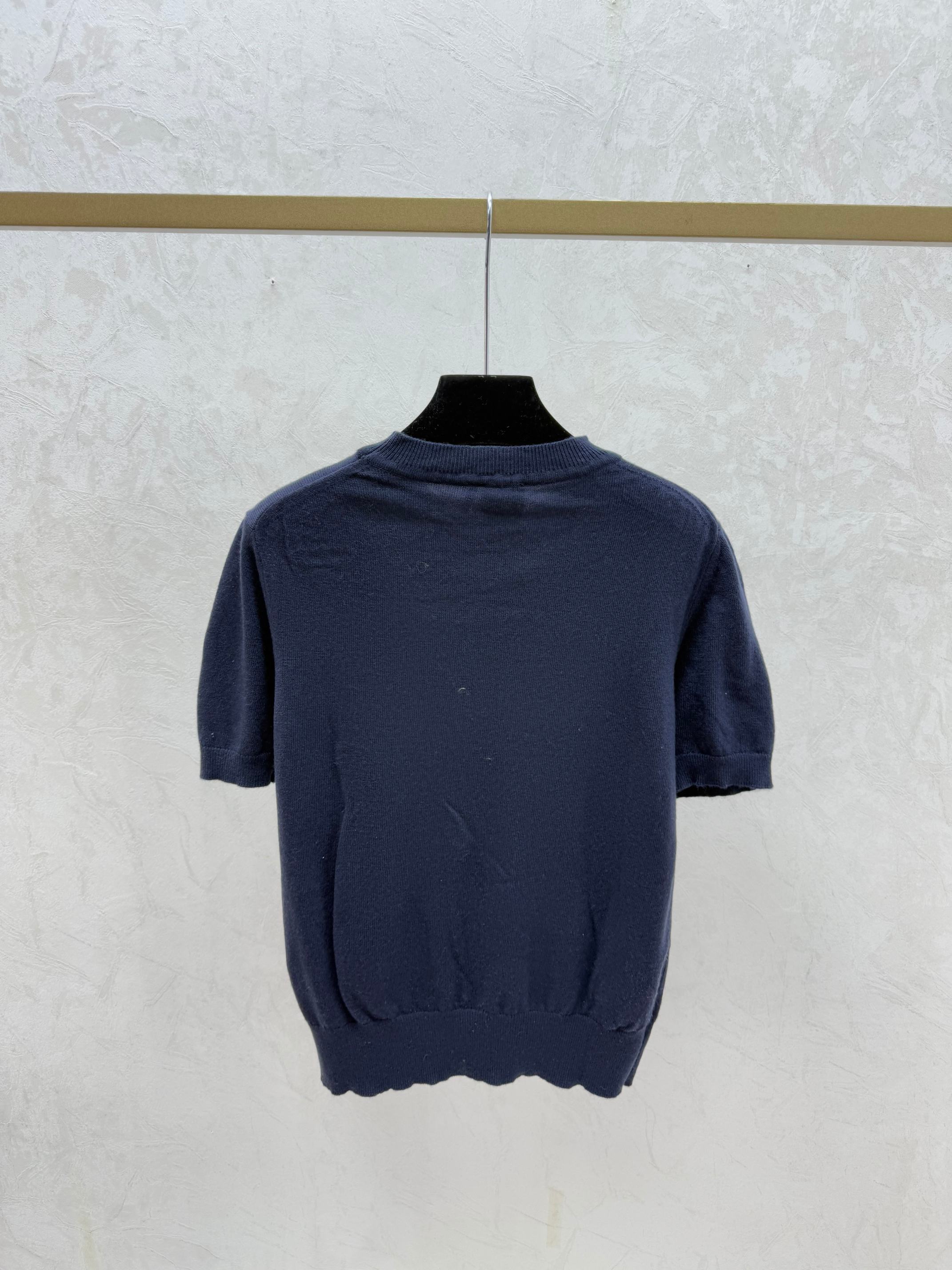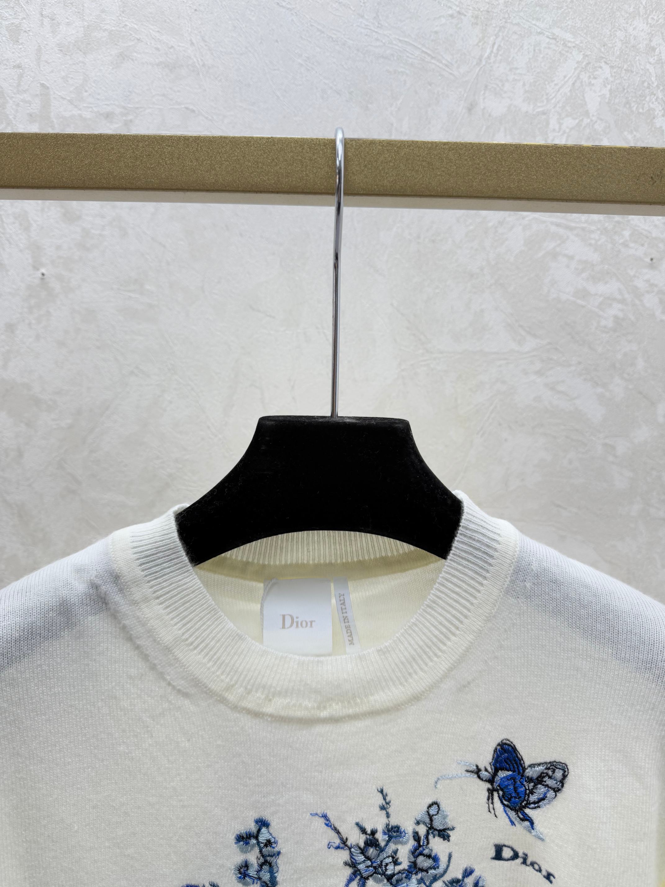 Details: Early spring new style color-blocked butterfly flower round-neck knitted short-sleeved top in white and royal blue, sizes 36, 38, 40.