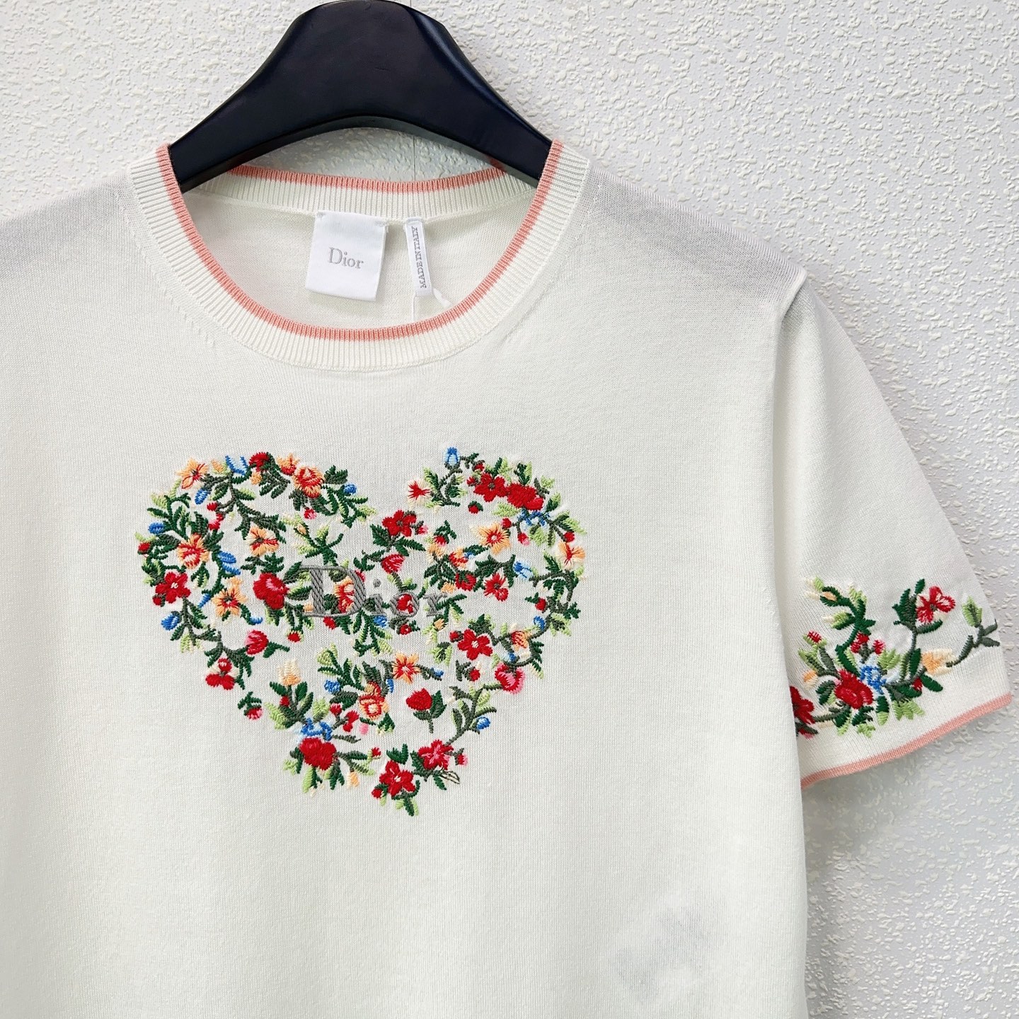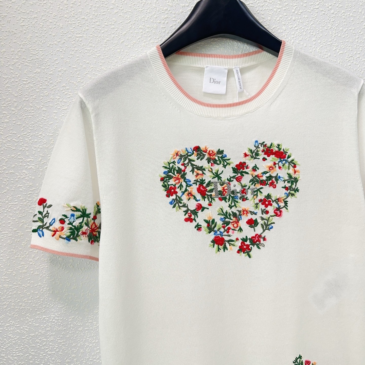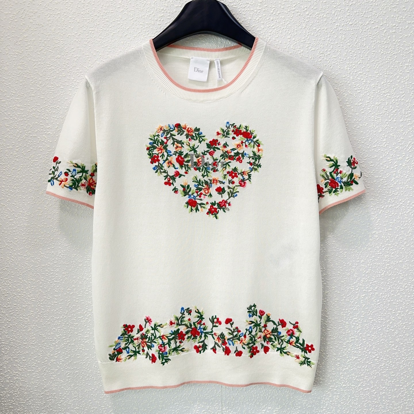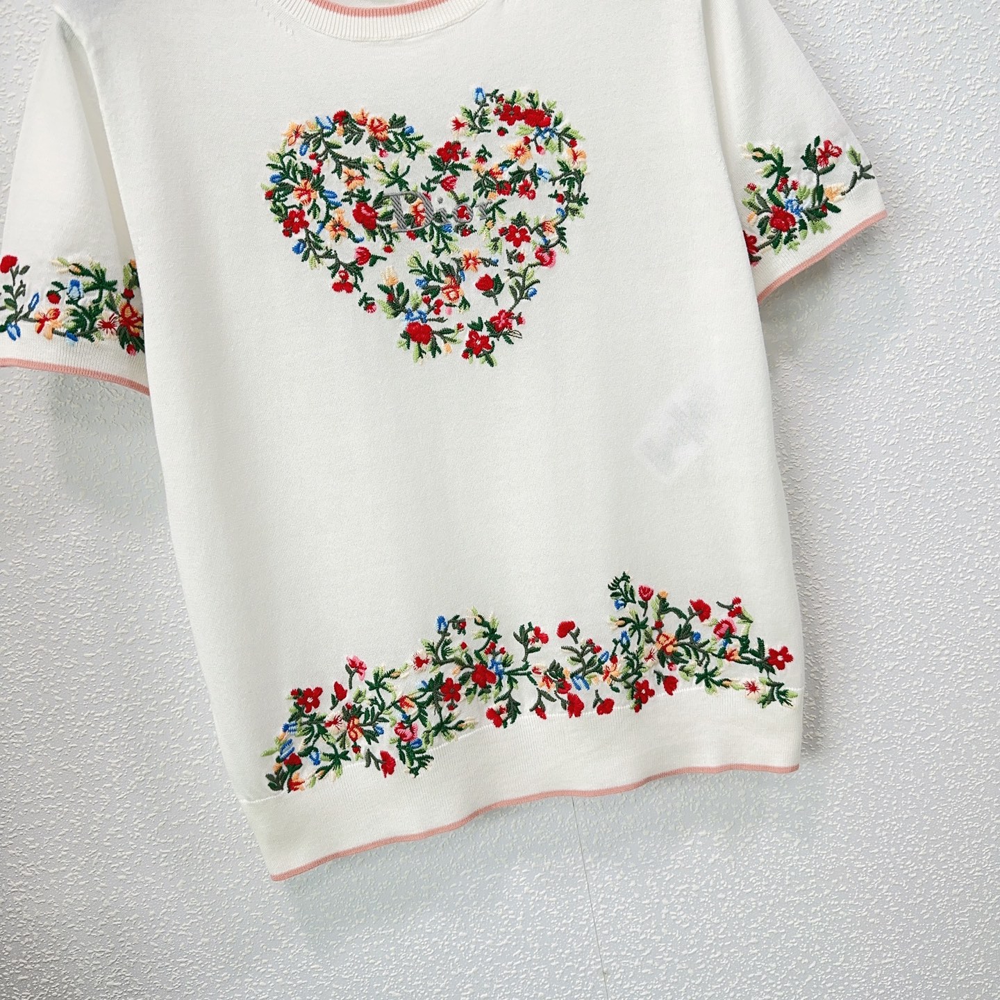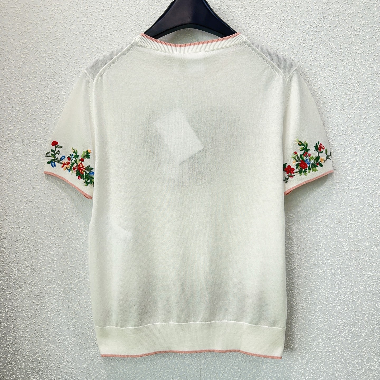 Details: Early spring heavy embroidery round-neck short-sleeved knitted top in sizes S, M, L.