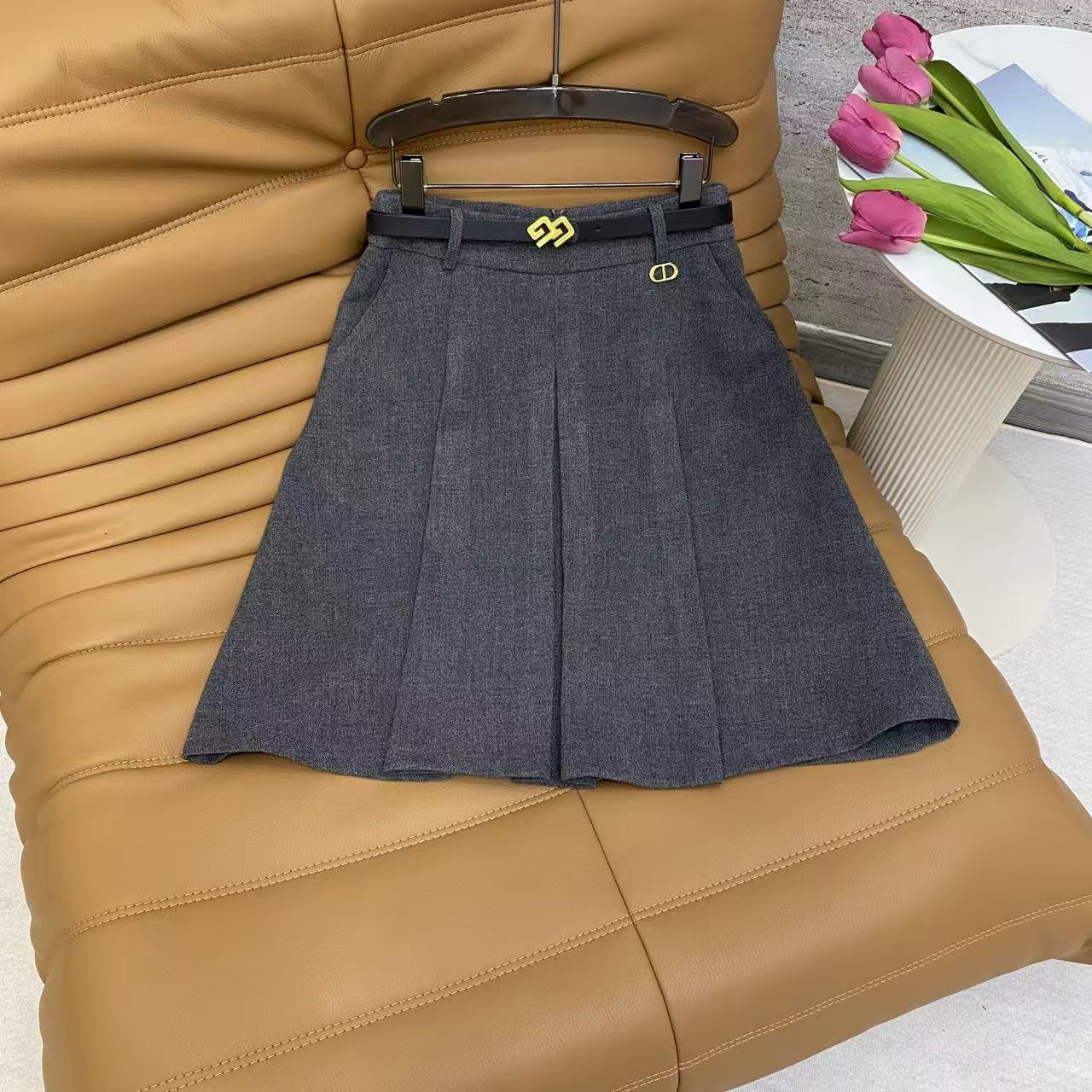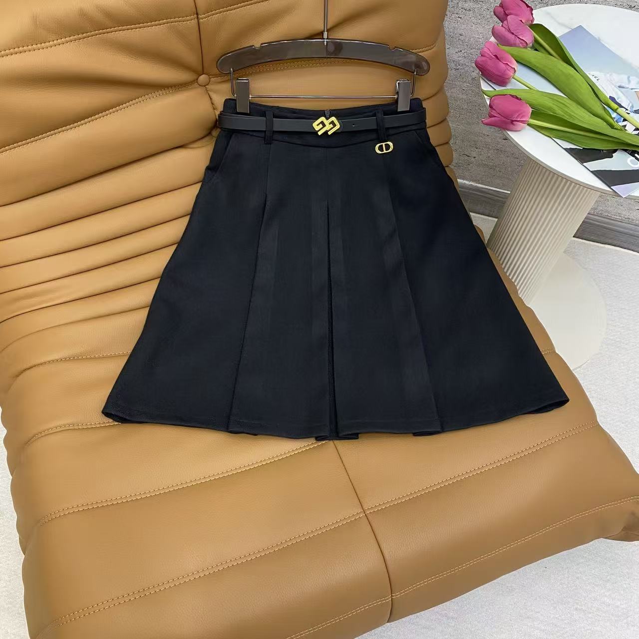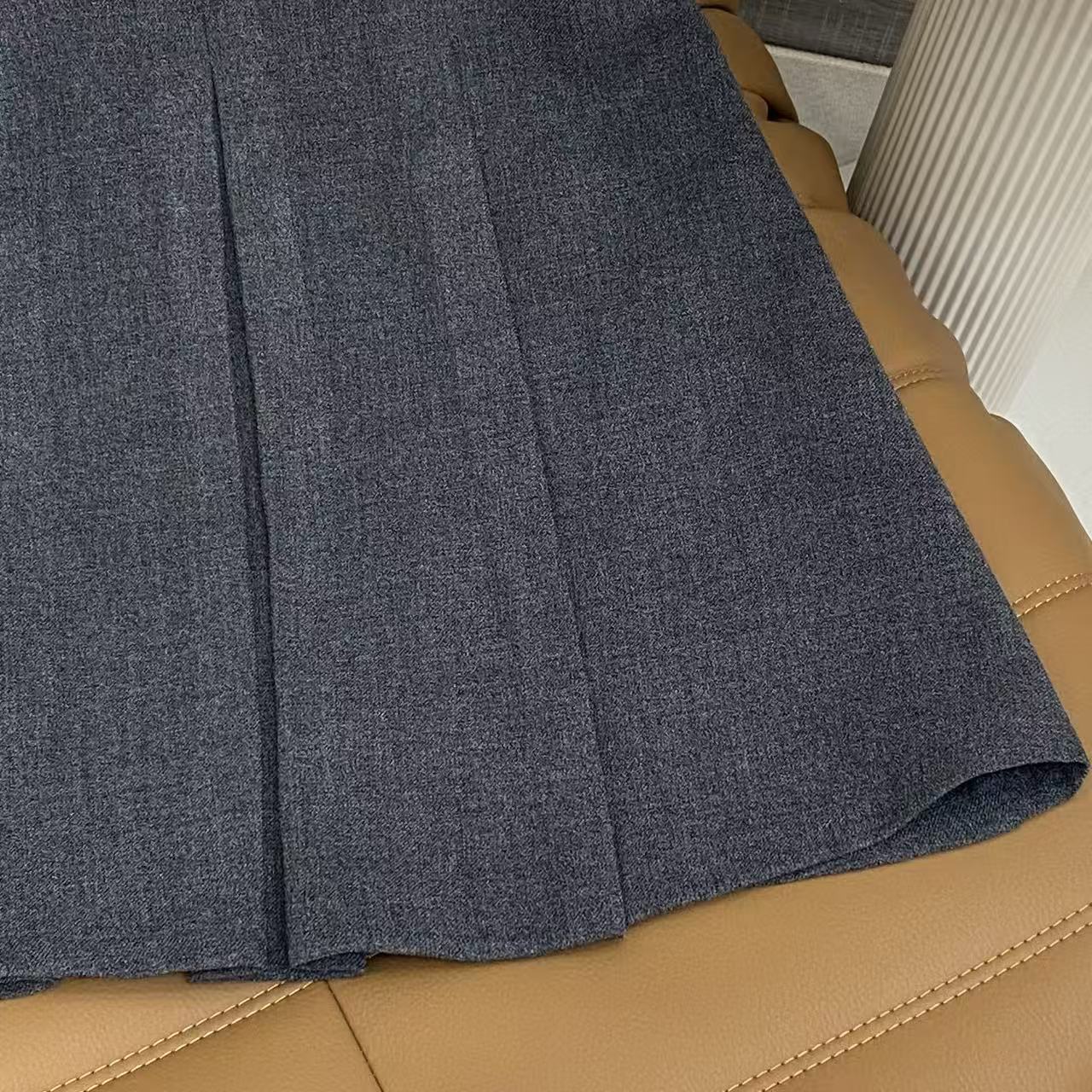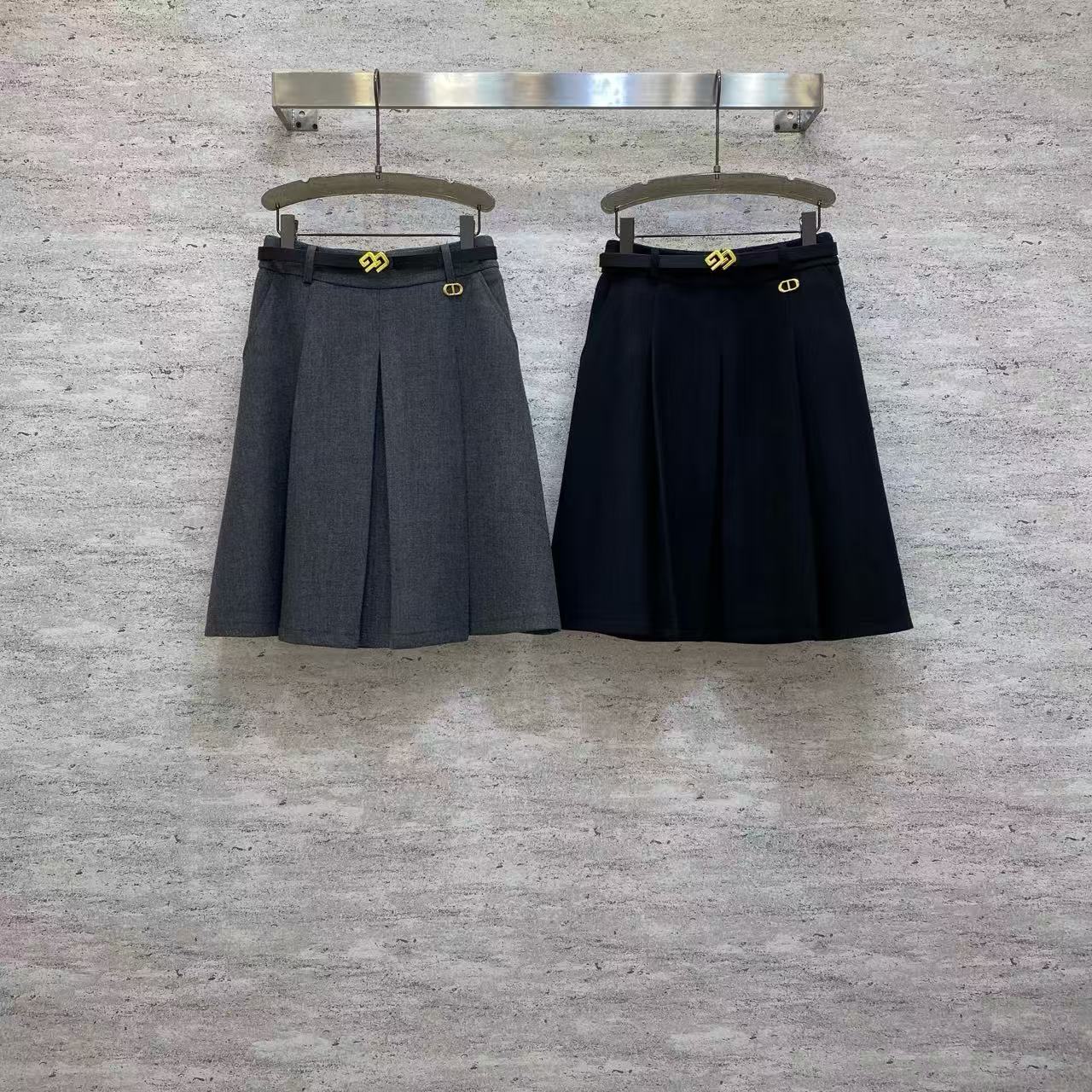 Details: Simple and versatile pleated midi skirt in black and grey, great for commuting and campus looks.