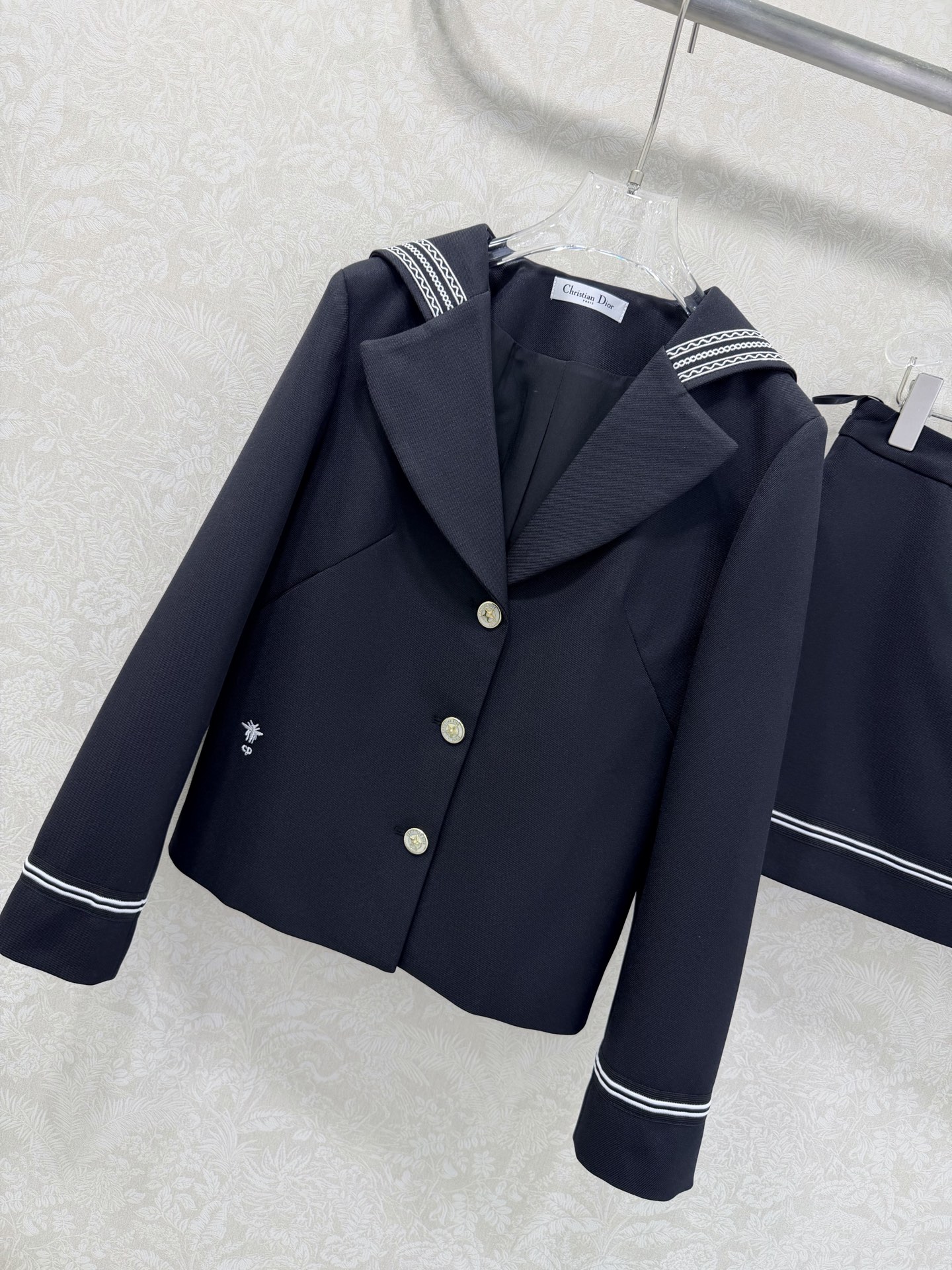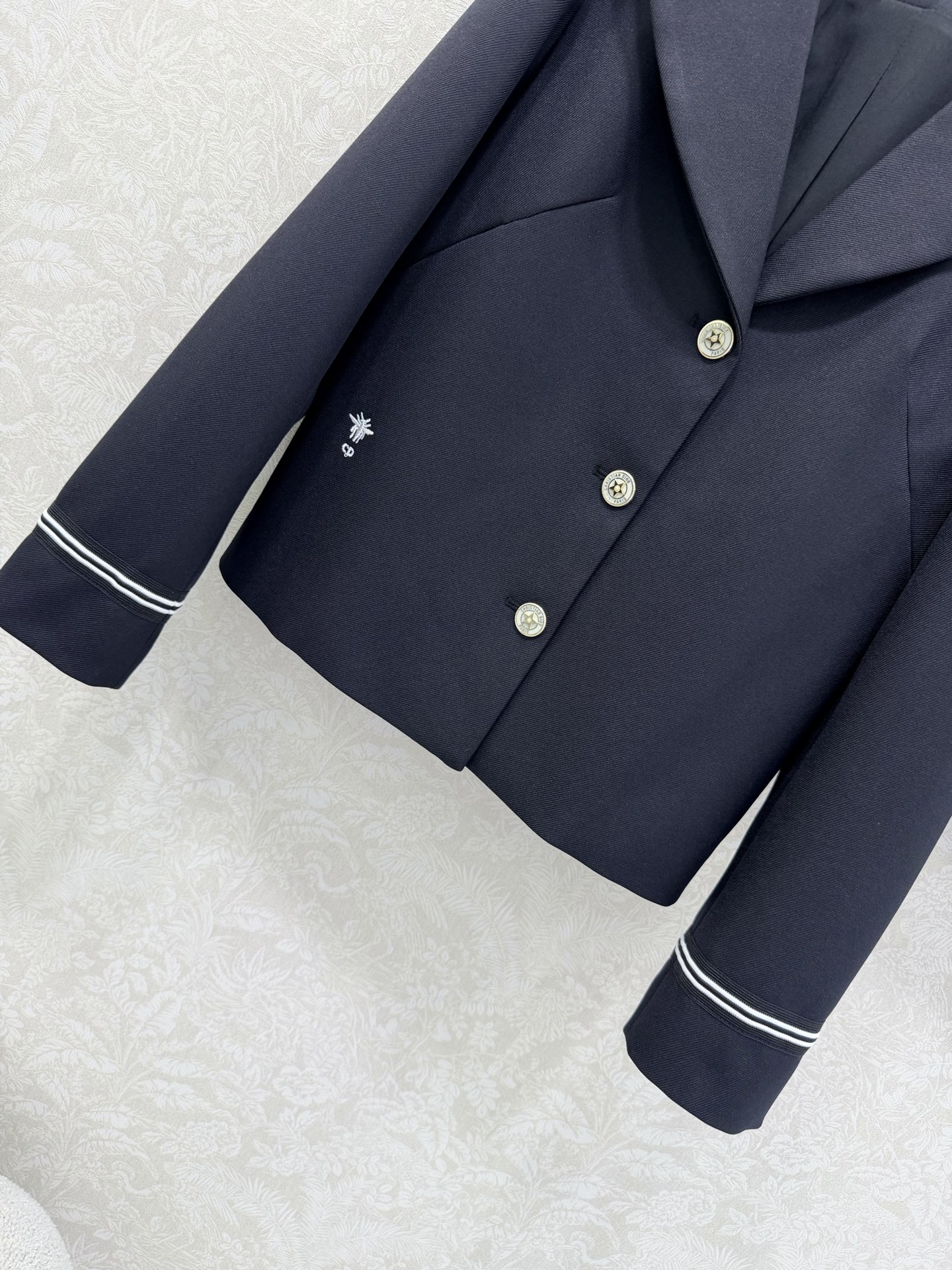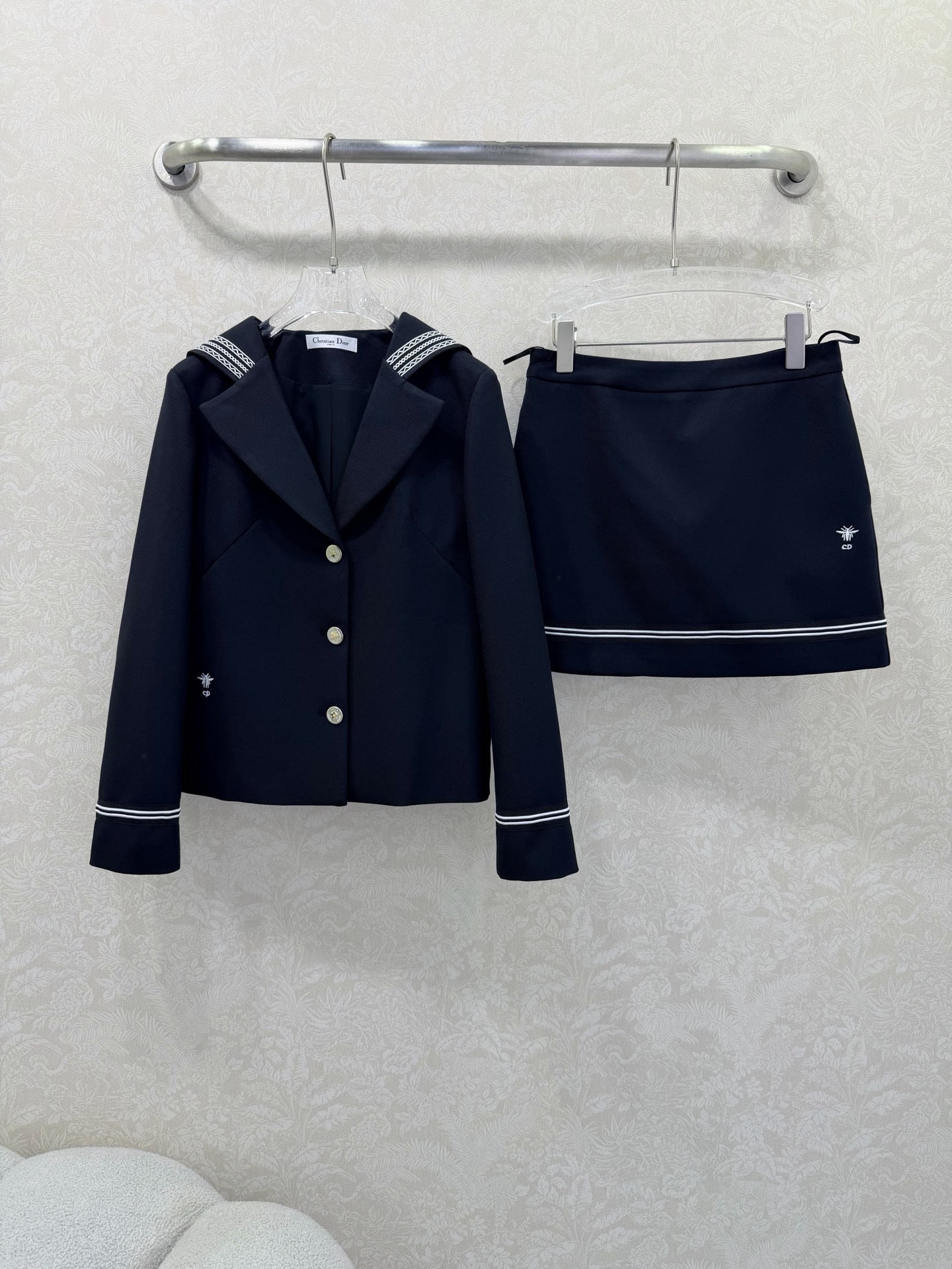 Details: Navy suit with bee embroidery, star hardware, sporty style, sizes SML.