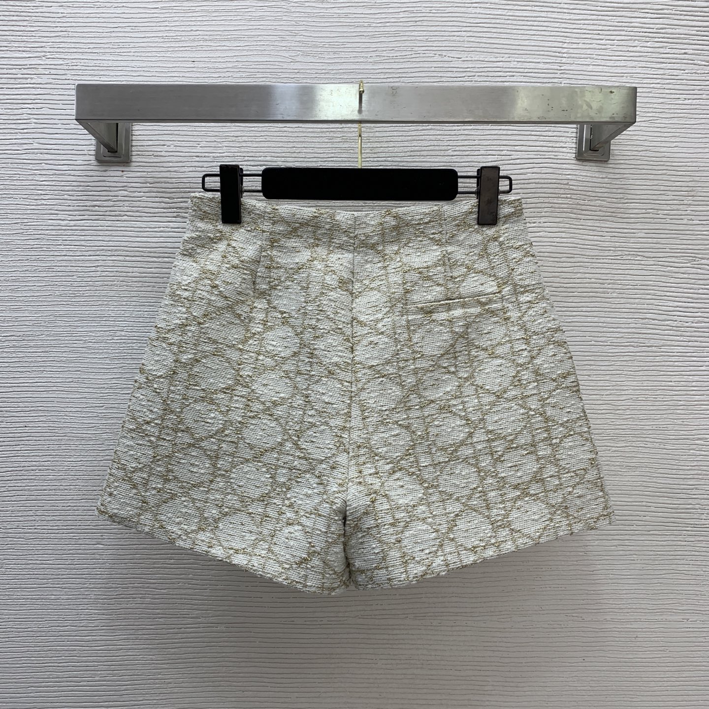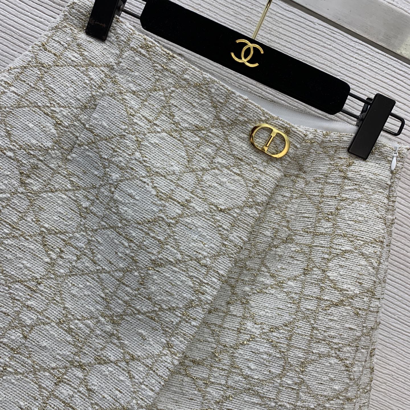Details: early spring recommended shorts skirt in beige or black, high - waisted and versatile, made of tweed fabric with CD metal accessories.
