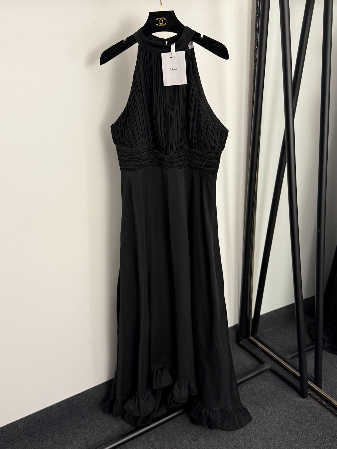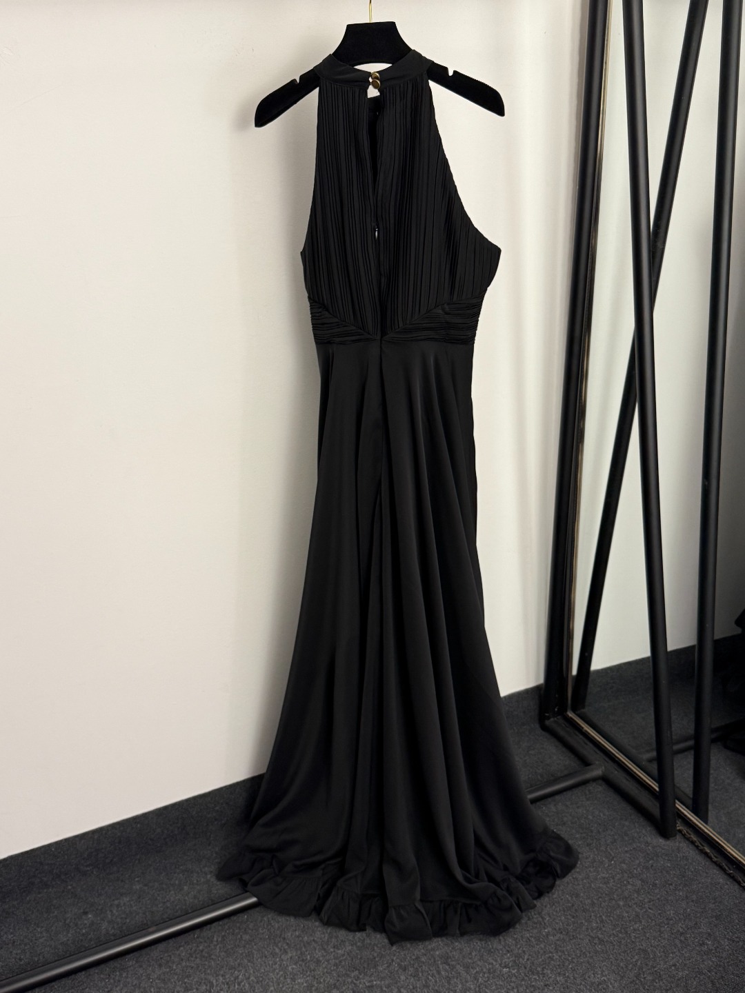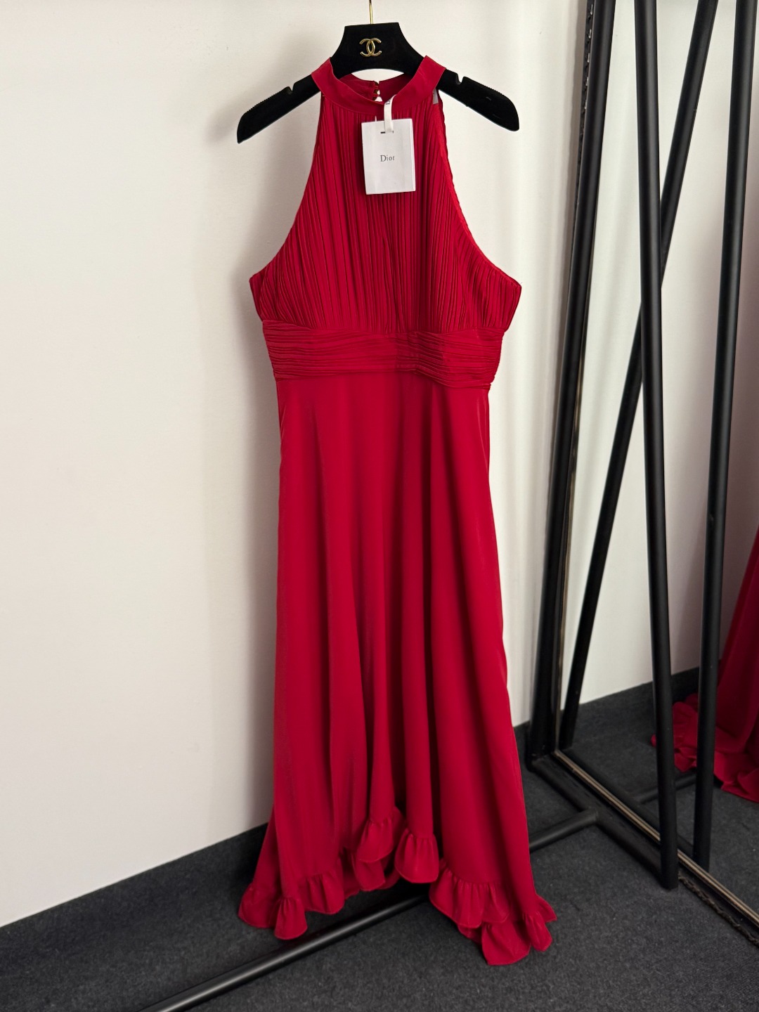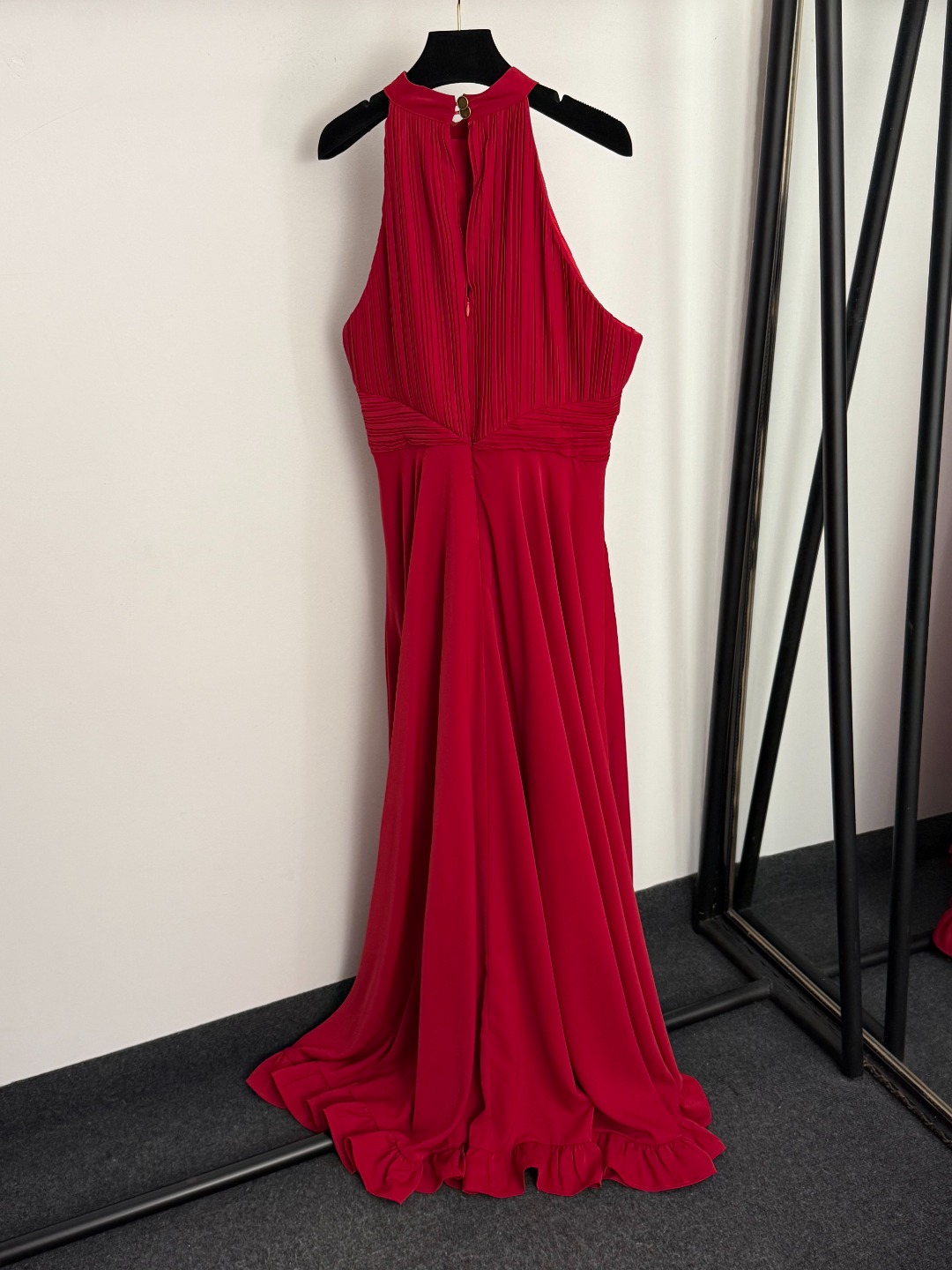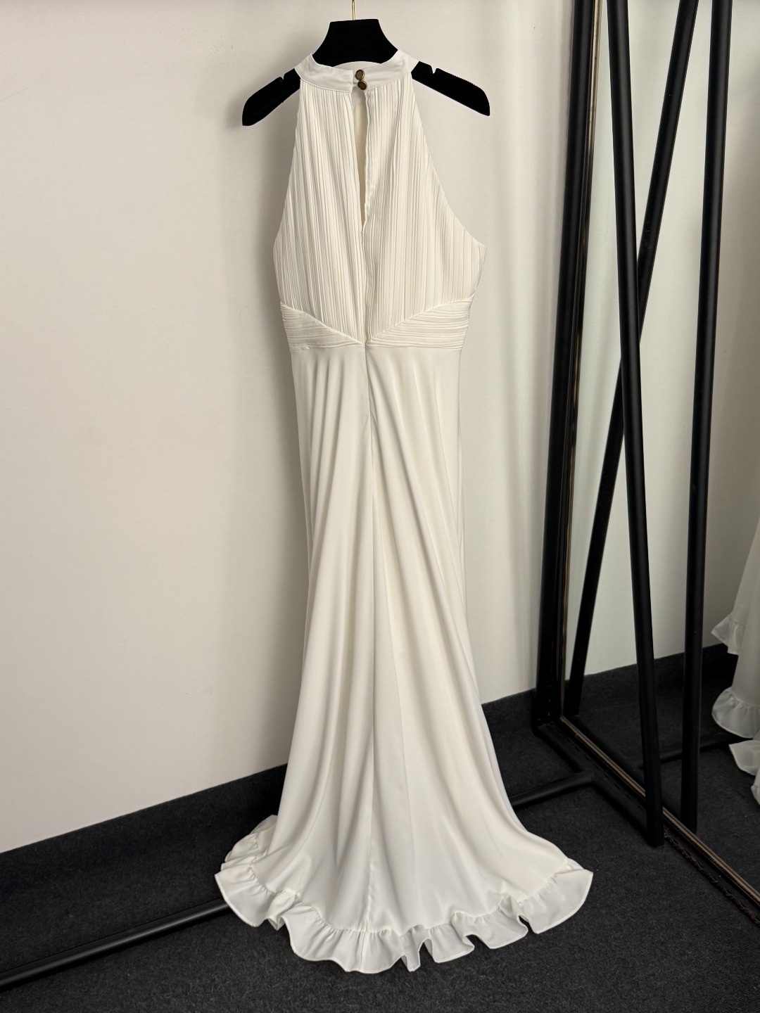 Details: New French-style ruffled halter backless dress in white, red and black, available in sizes S, M, XL.