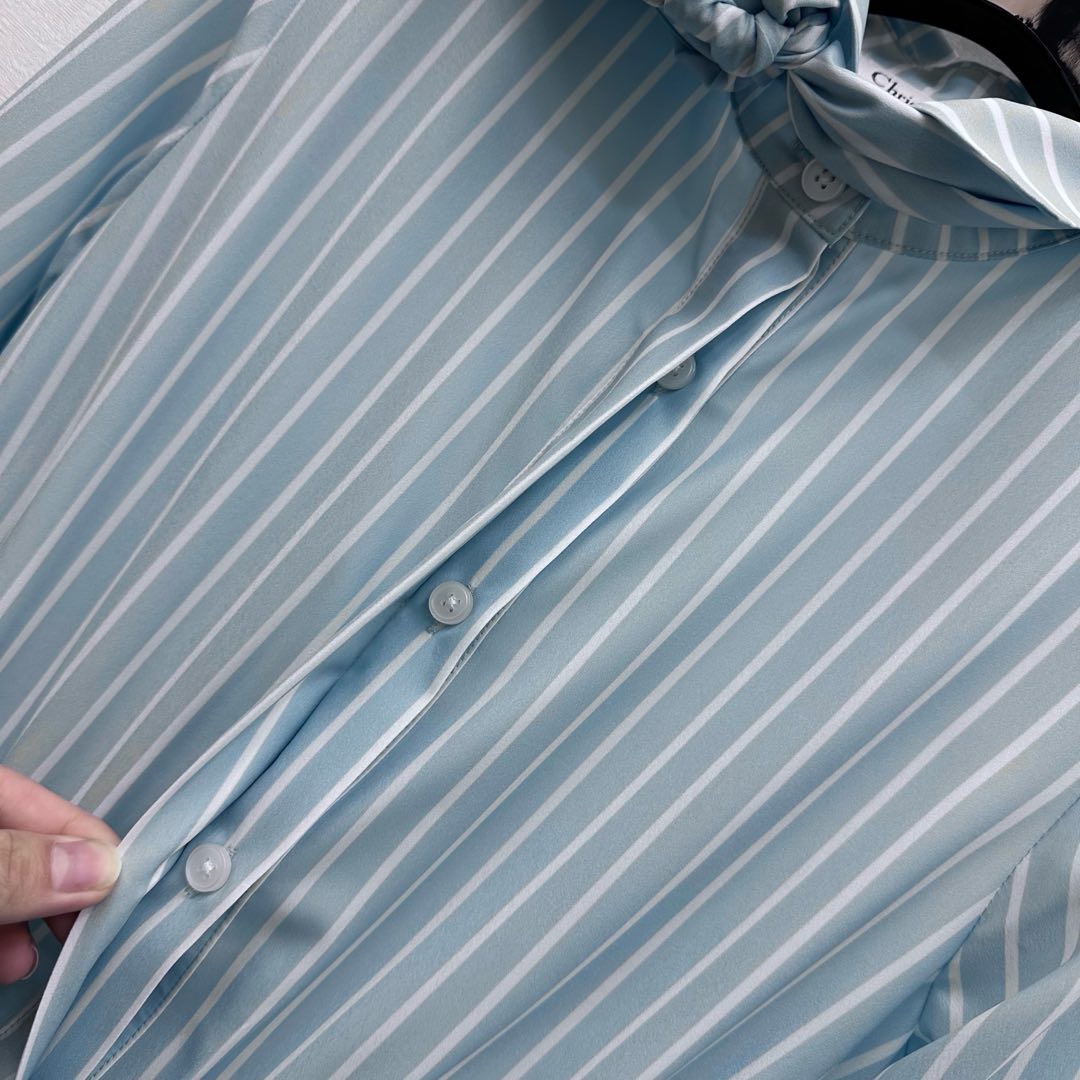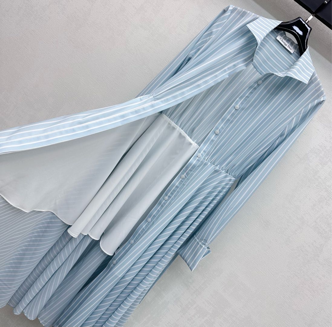 Details: Striped dress with adjustable elements, creating an elegant and relaxed atmosphere. High - end customization, fine workmanship