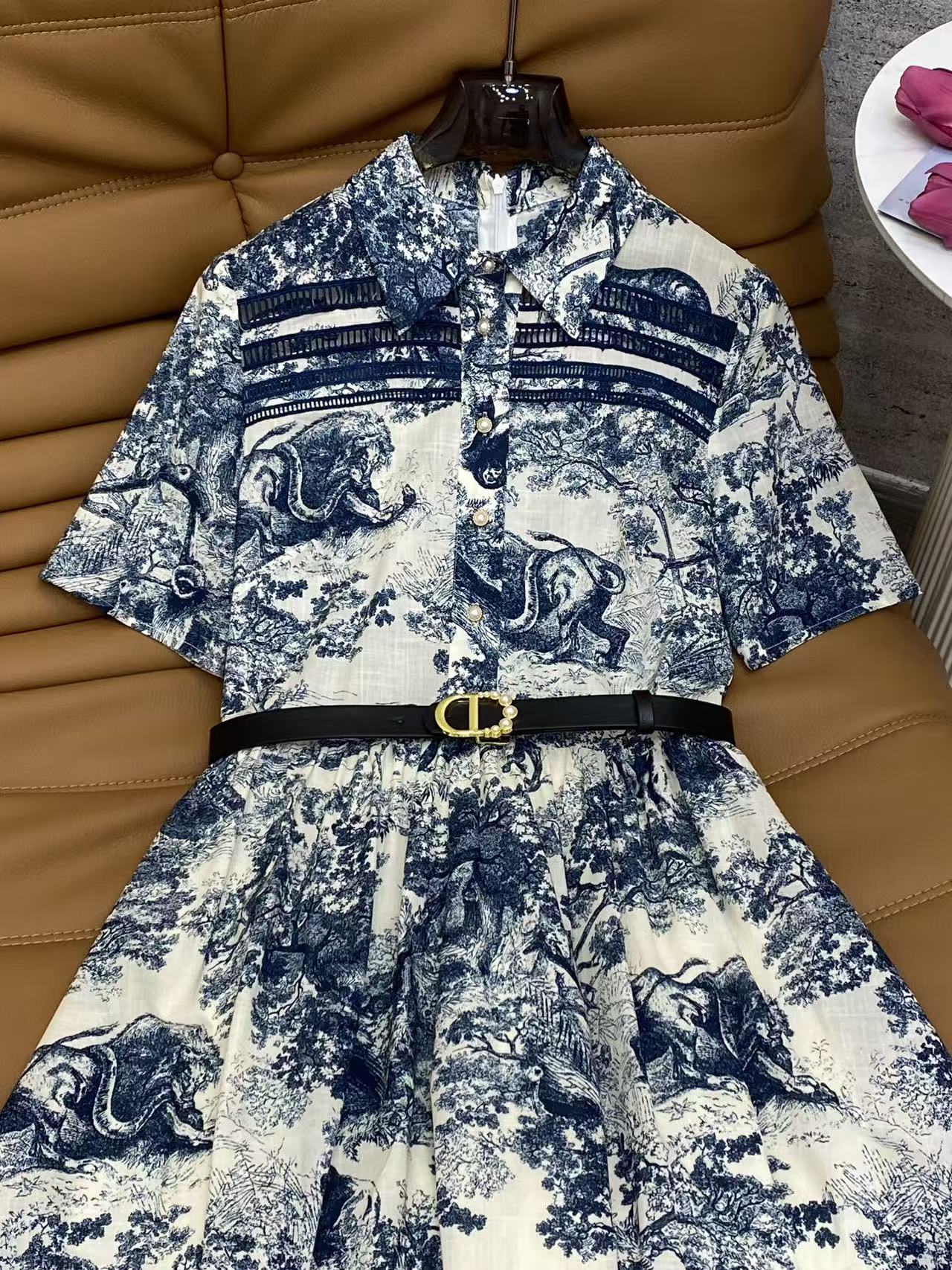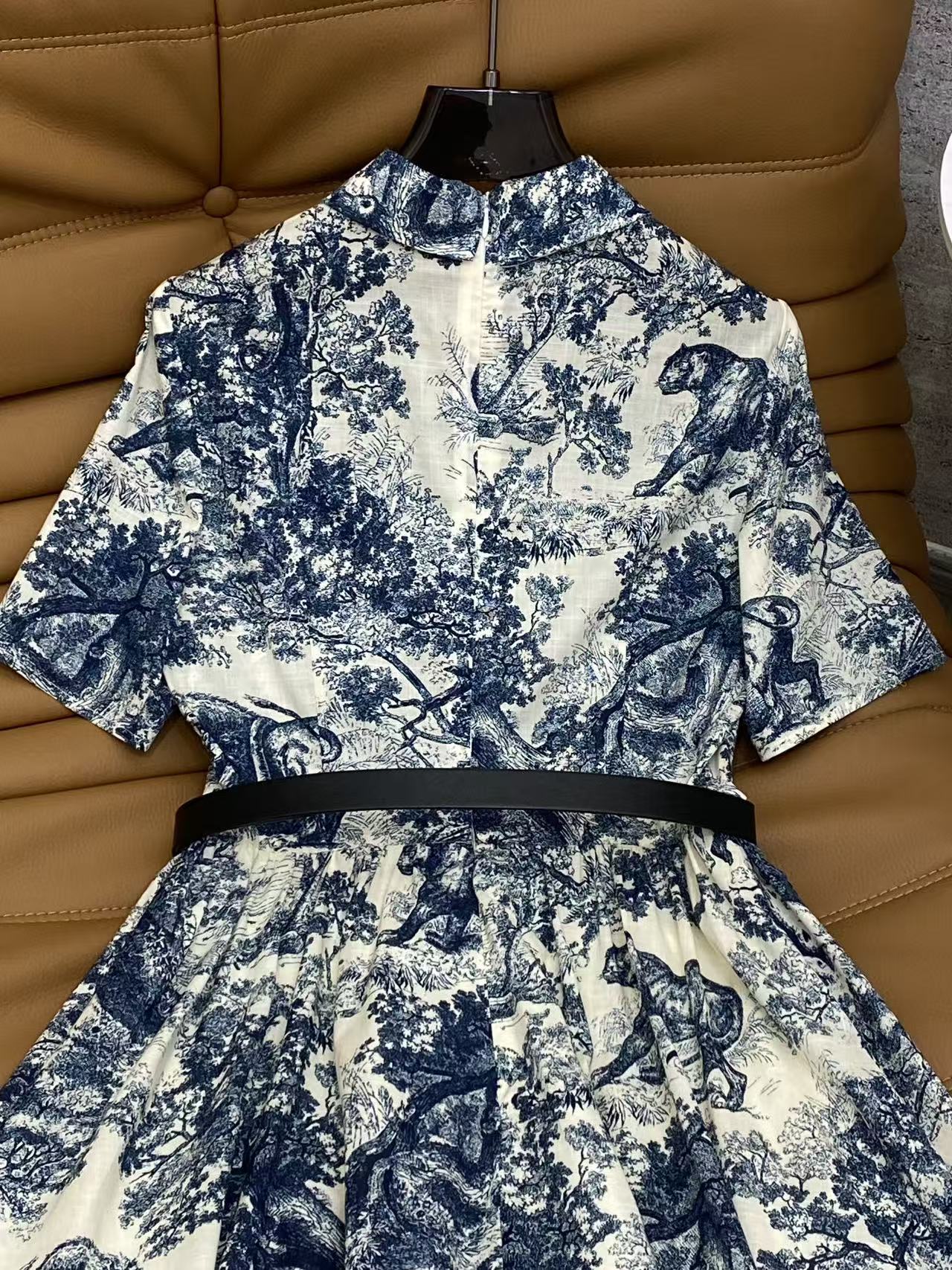 Details: Printed cotton dress with collars and belt, suitable for dates and light commuting. High - end customization, fine workmanship