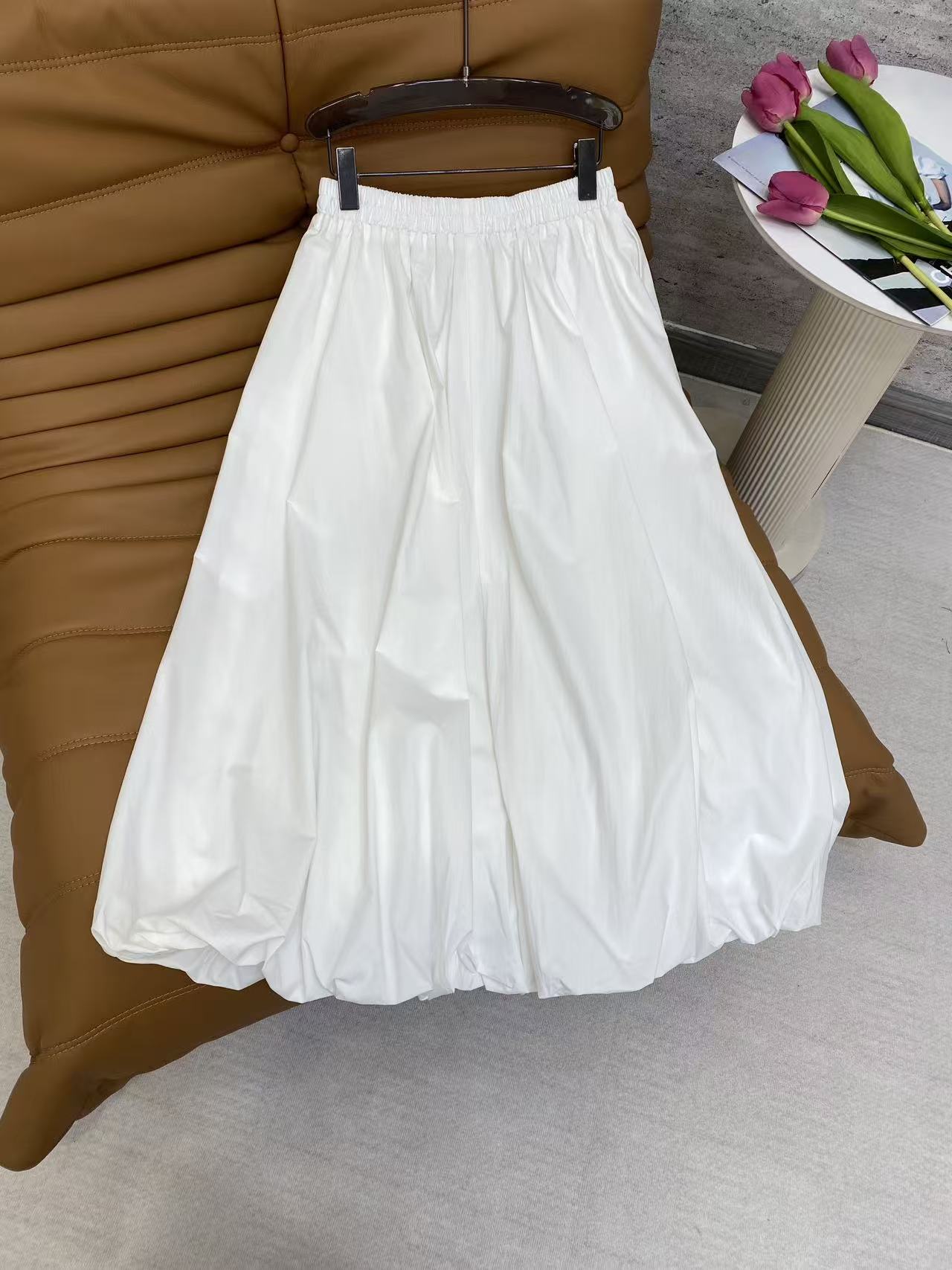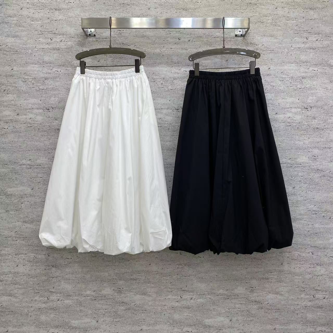 Details: High-quality cotton skirt with elastic waist, metal button accents, A-line silhouette, classic black and white colors, suitable for daily wear or dating