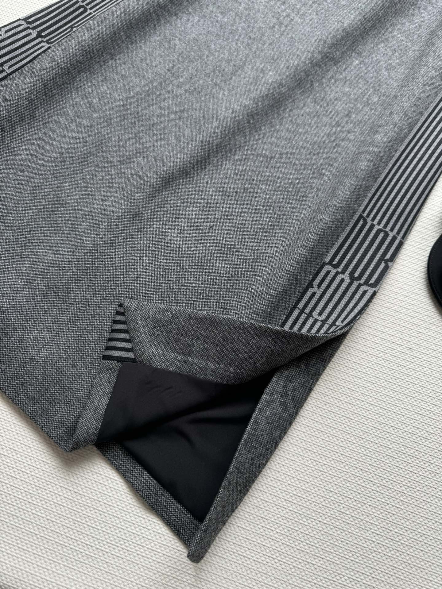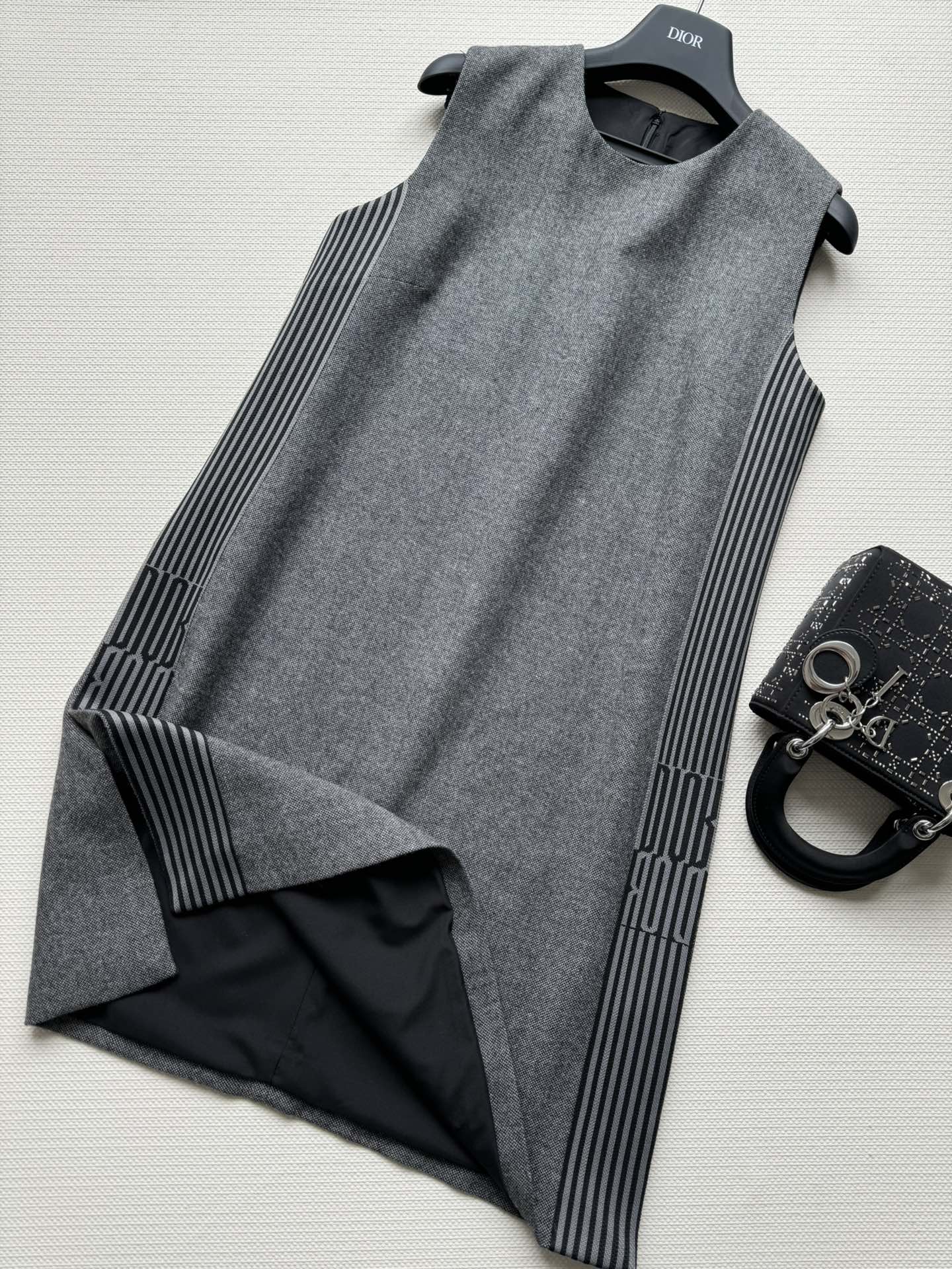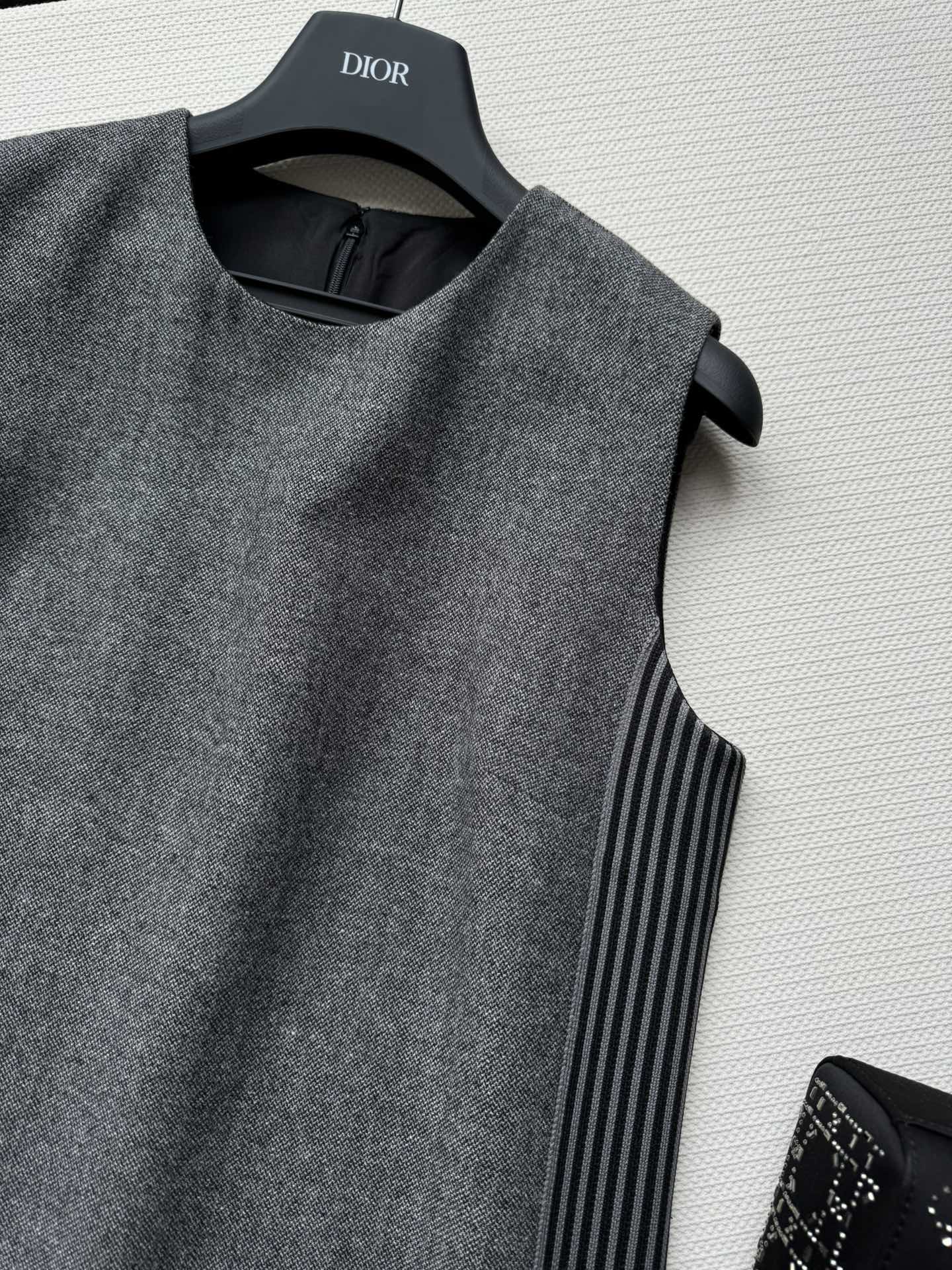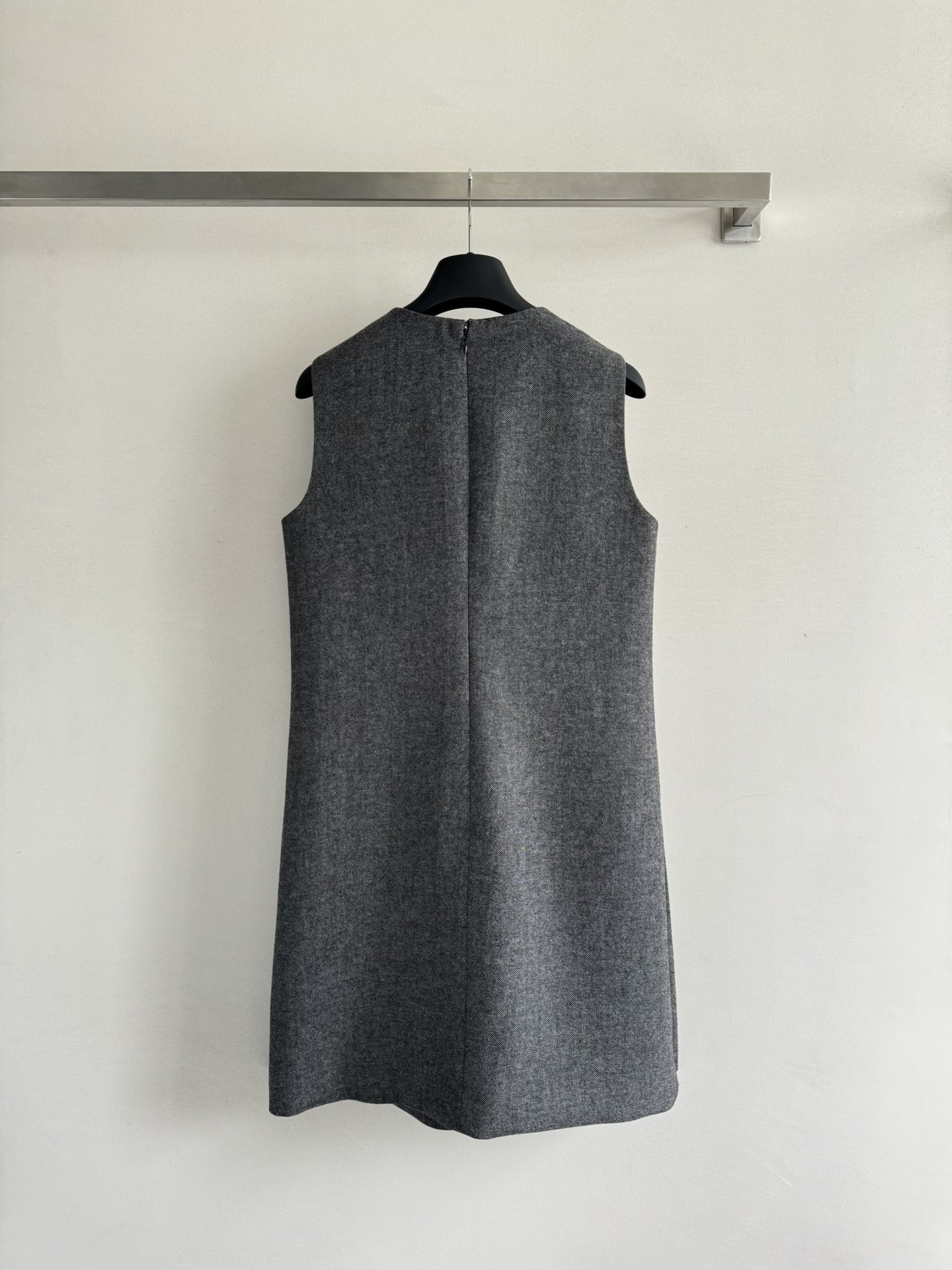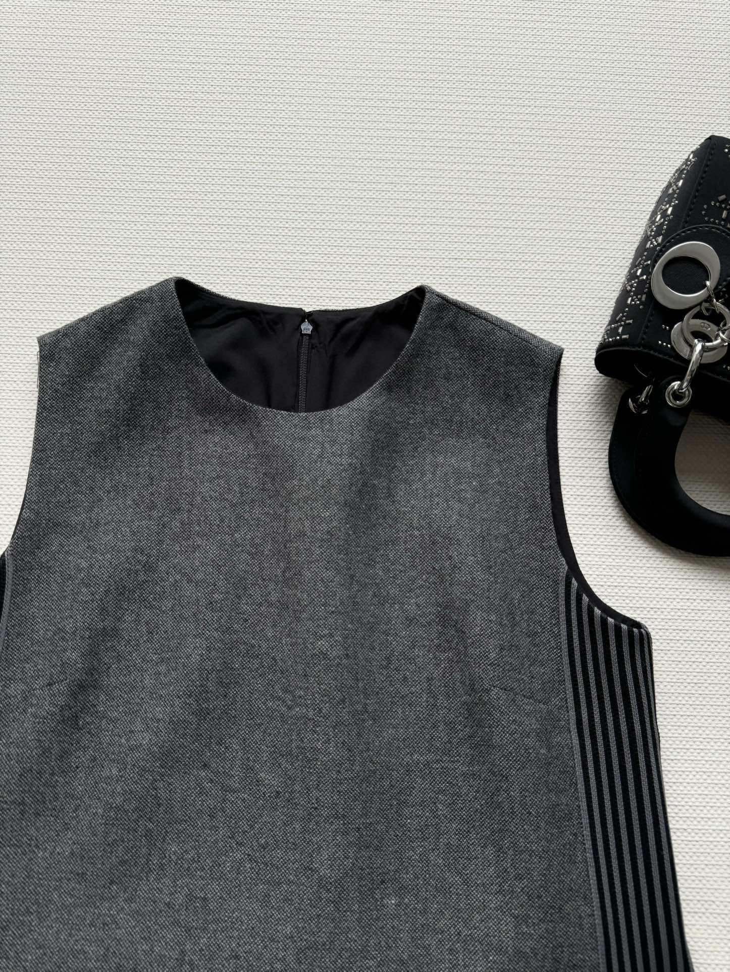 Details: New gray sleeveless dress made of wool blend, in a classic style with high-end quality. It features high-end customization, fine workmanship,