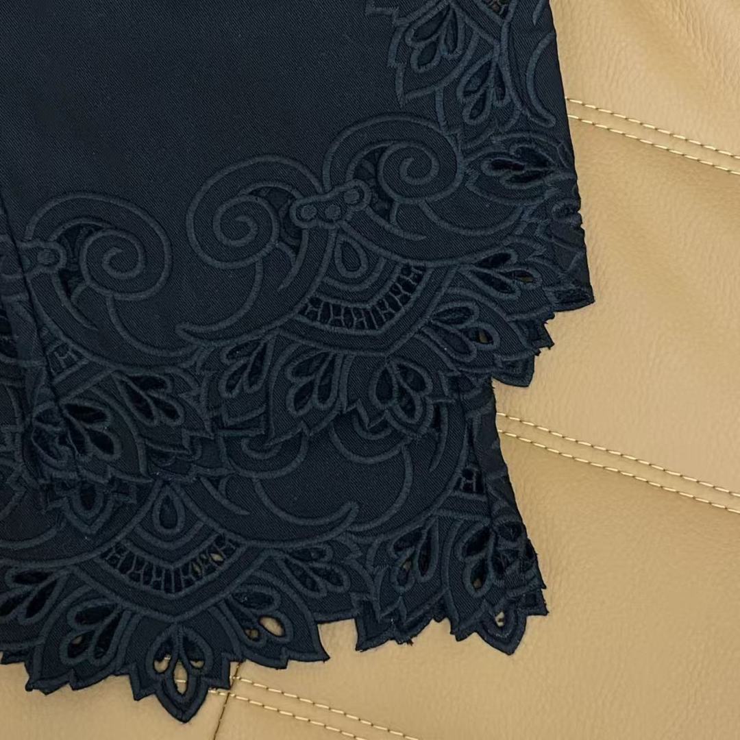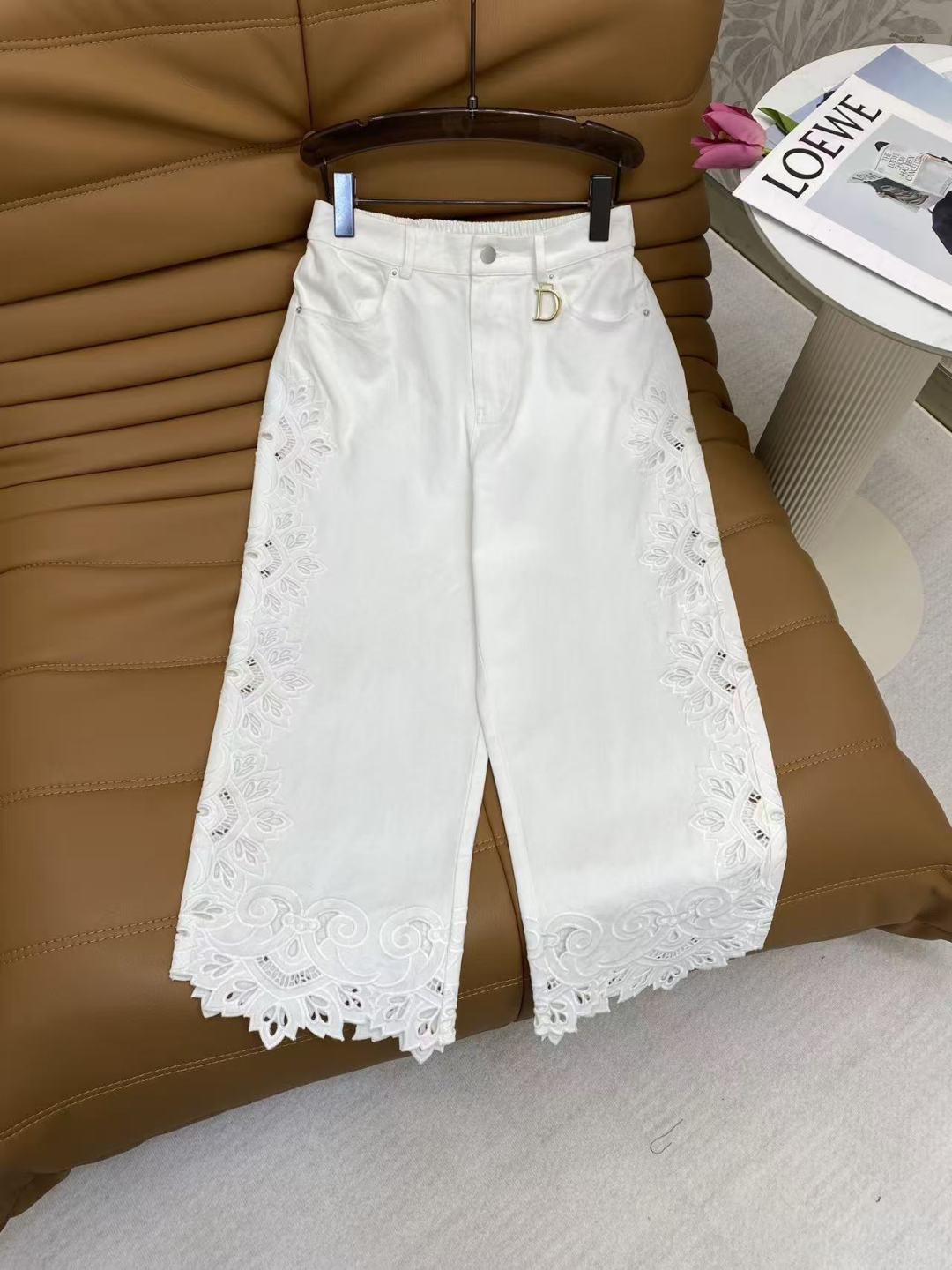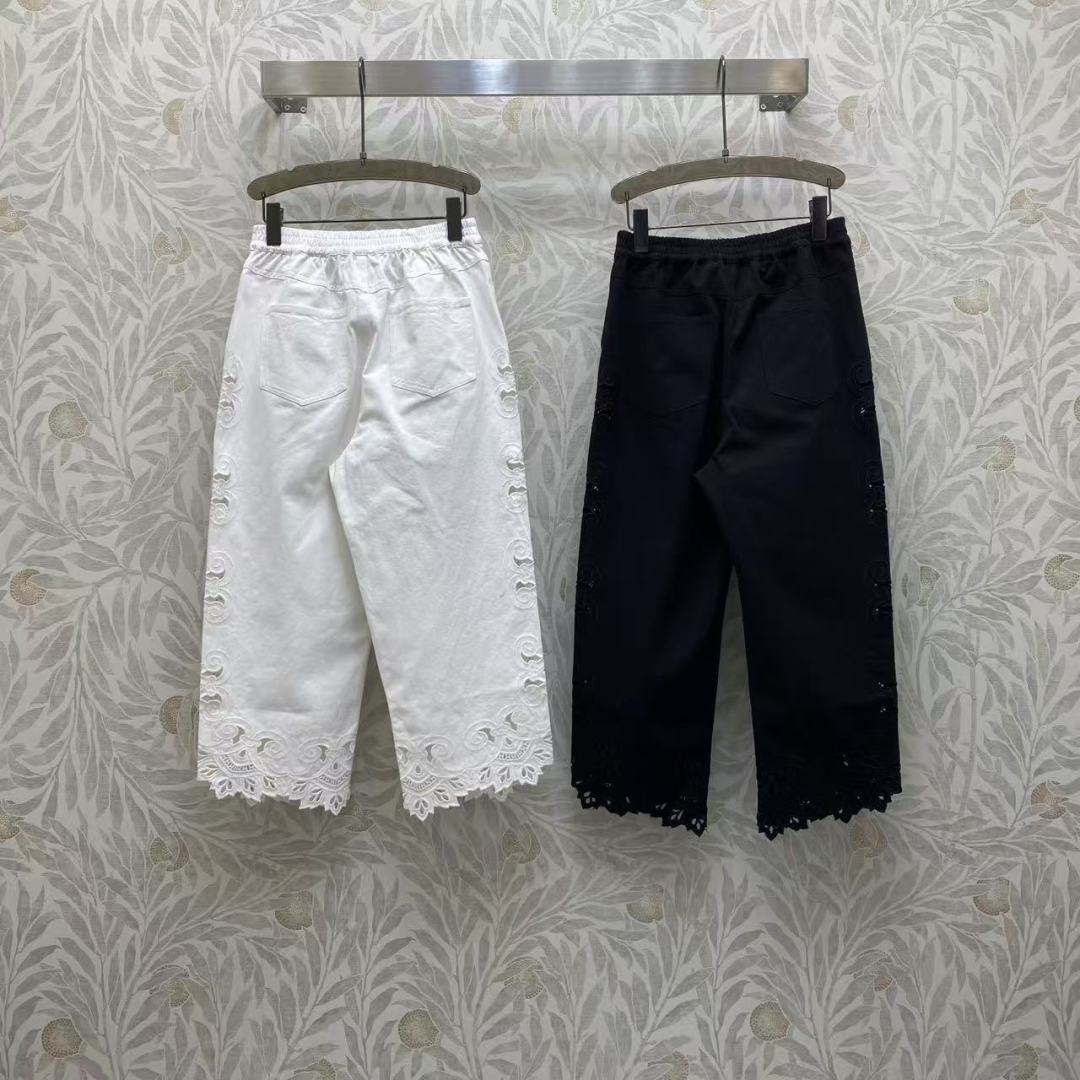 Details: Spring Denim Wide-leg Pants, Cowboy Cotton, Lace Hollow, Metal D Buckle, Black and White