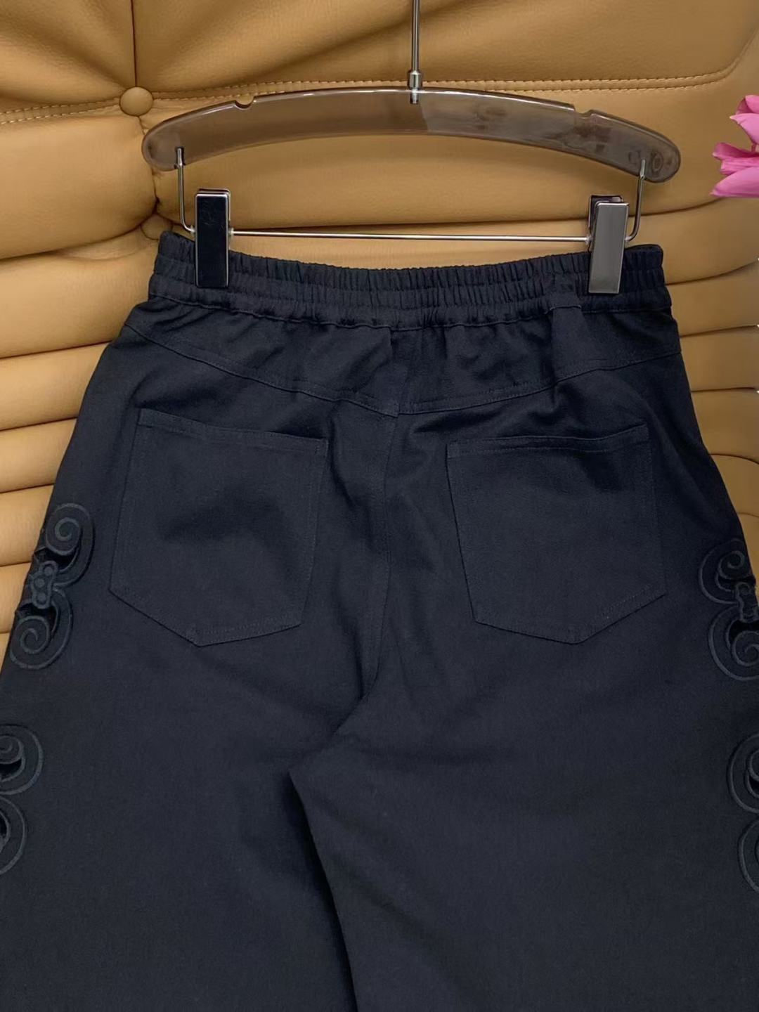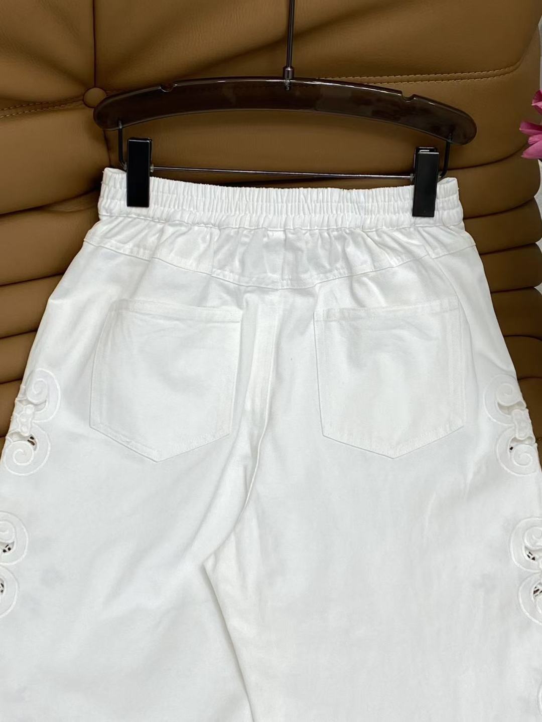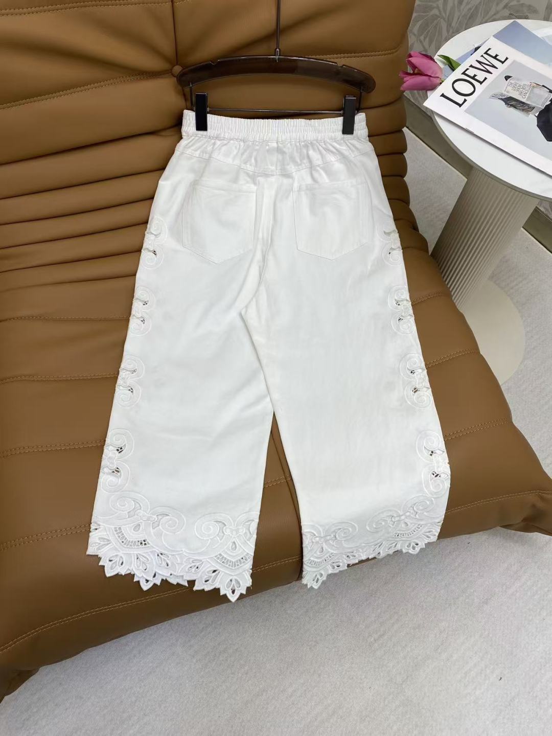 Details: Spring Denim Wide-leg Pants, Cowboy Cotton, Lace Hollow, Metal D Buckle, Black and White