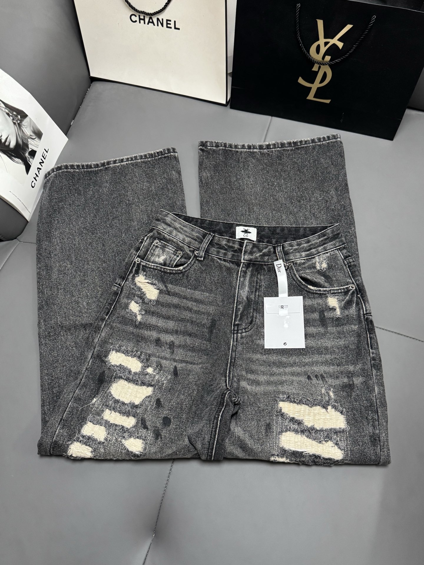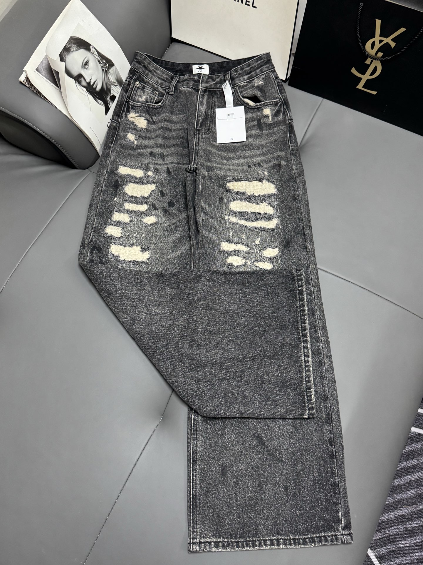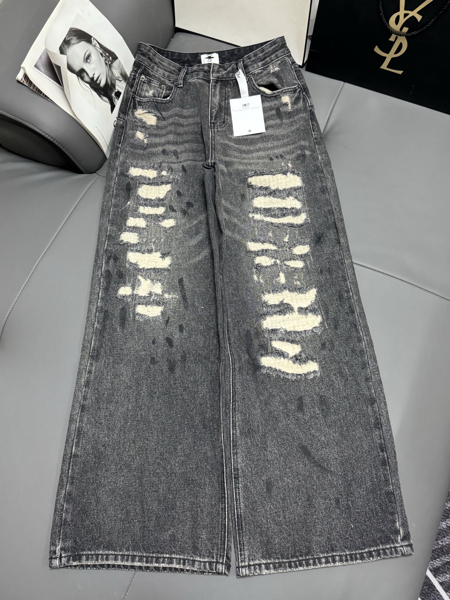 Details: New black - gray distressed jeans, hidden - fat, trendy, suitable for all leg types, high - end customization