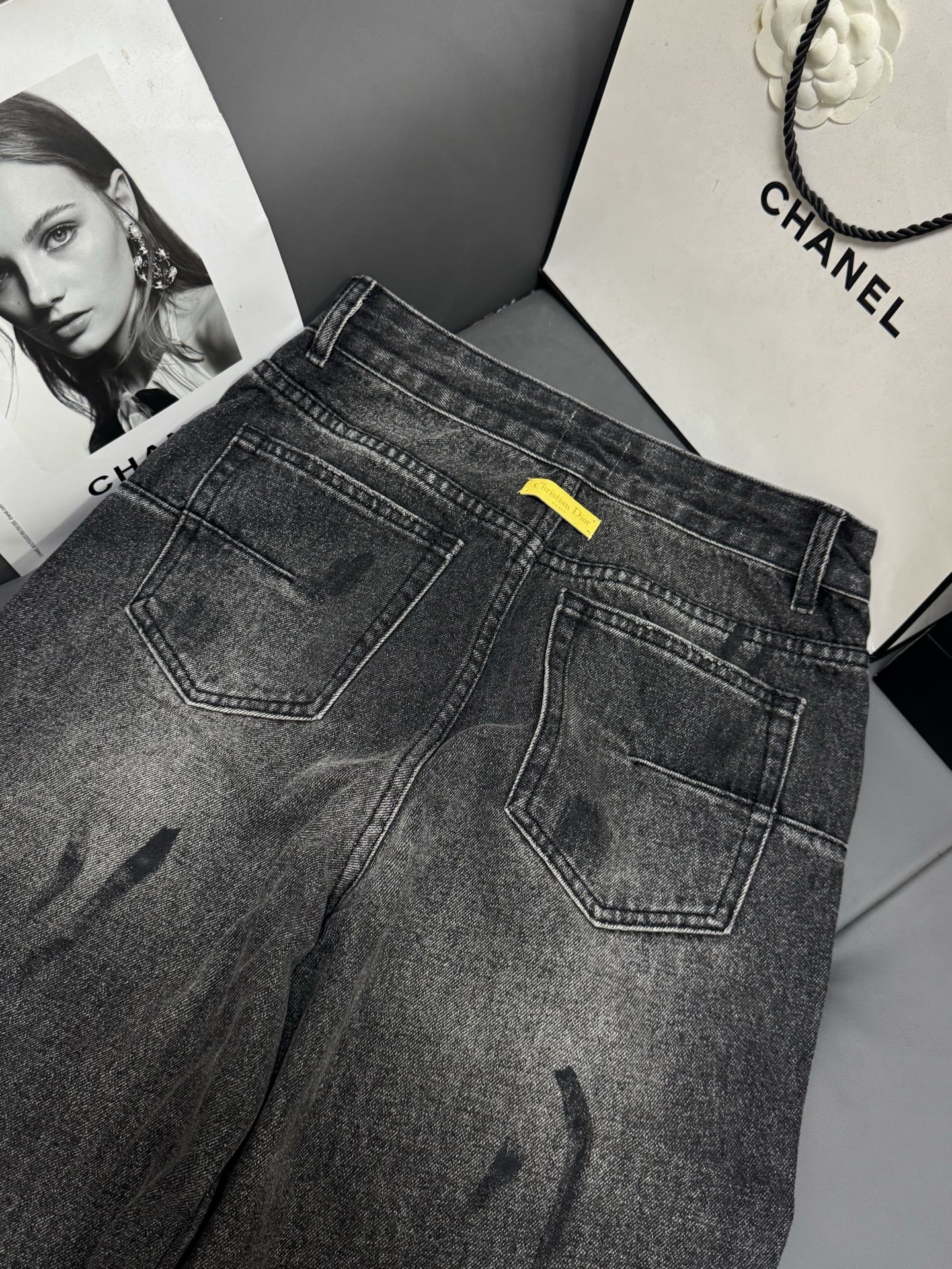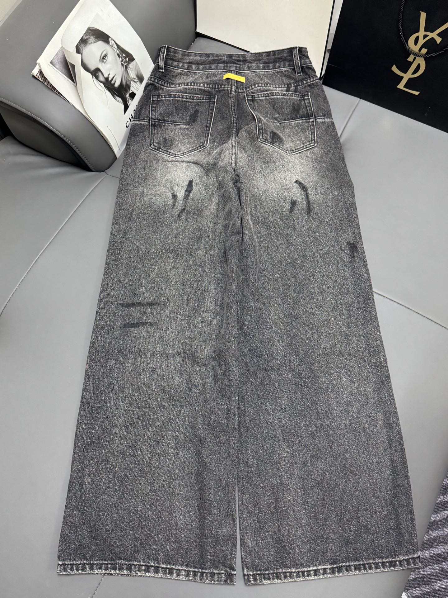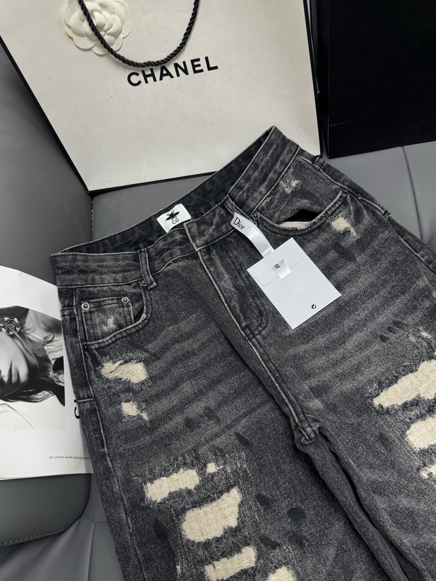 Details: New black - gray distressed jeans, hidden - fat, trendy, suitable for all leg types, high - end customization